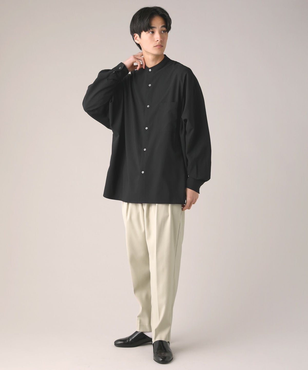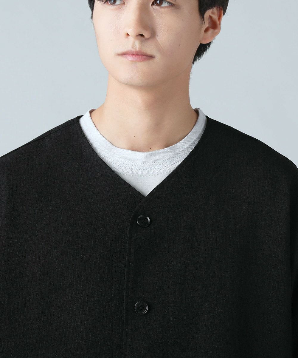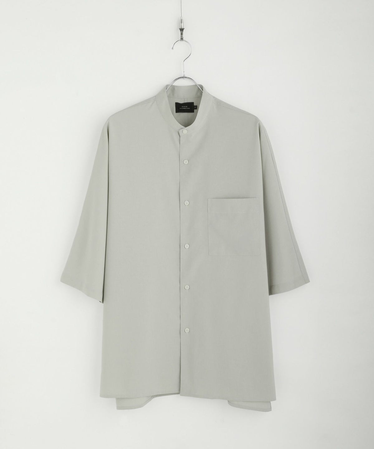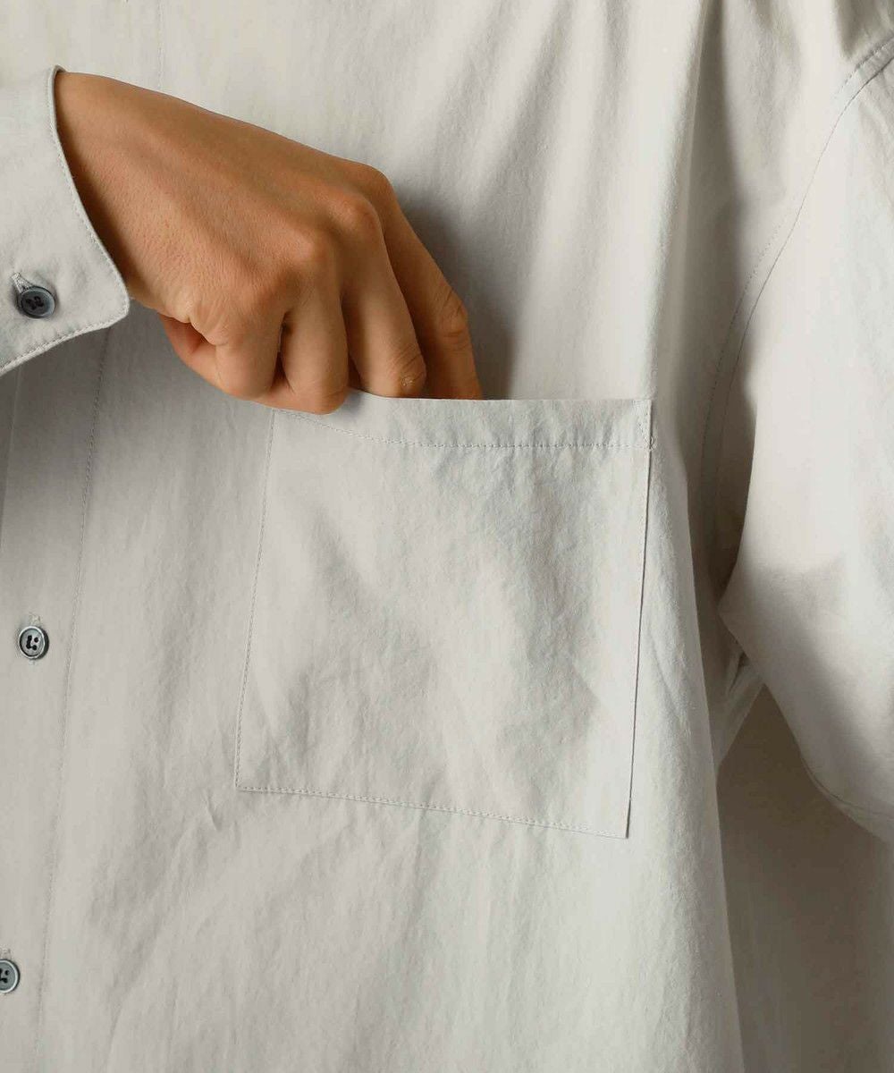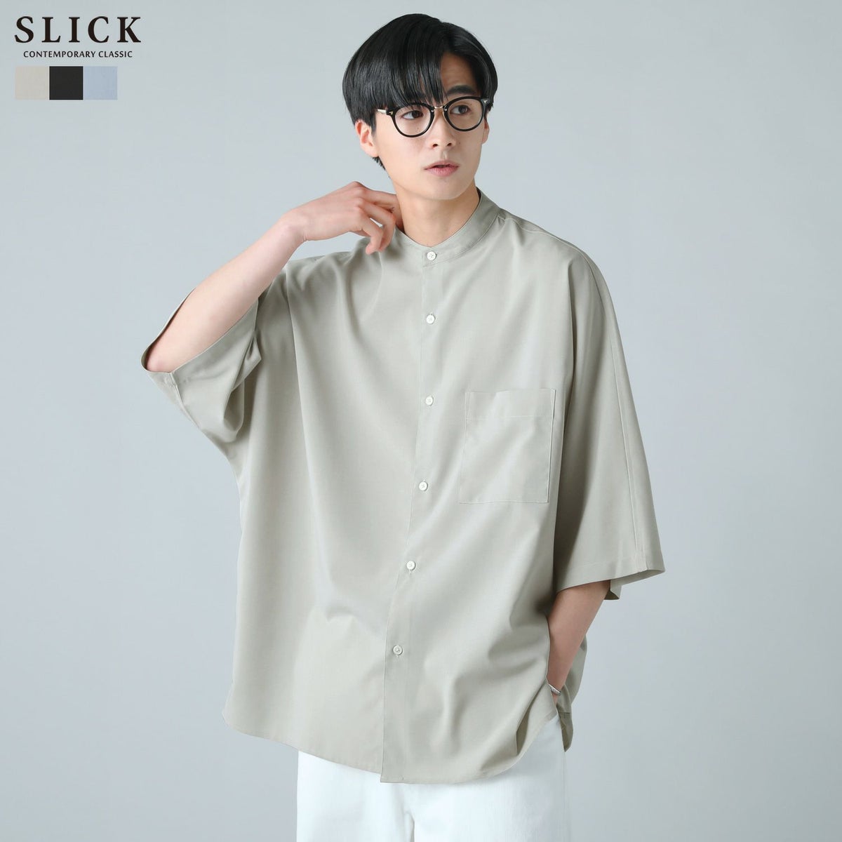 ドロップショルダー半袖バンドカラークレリックシャツ