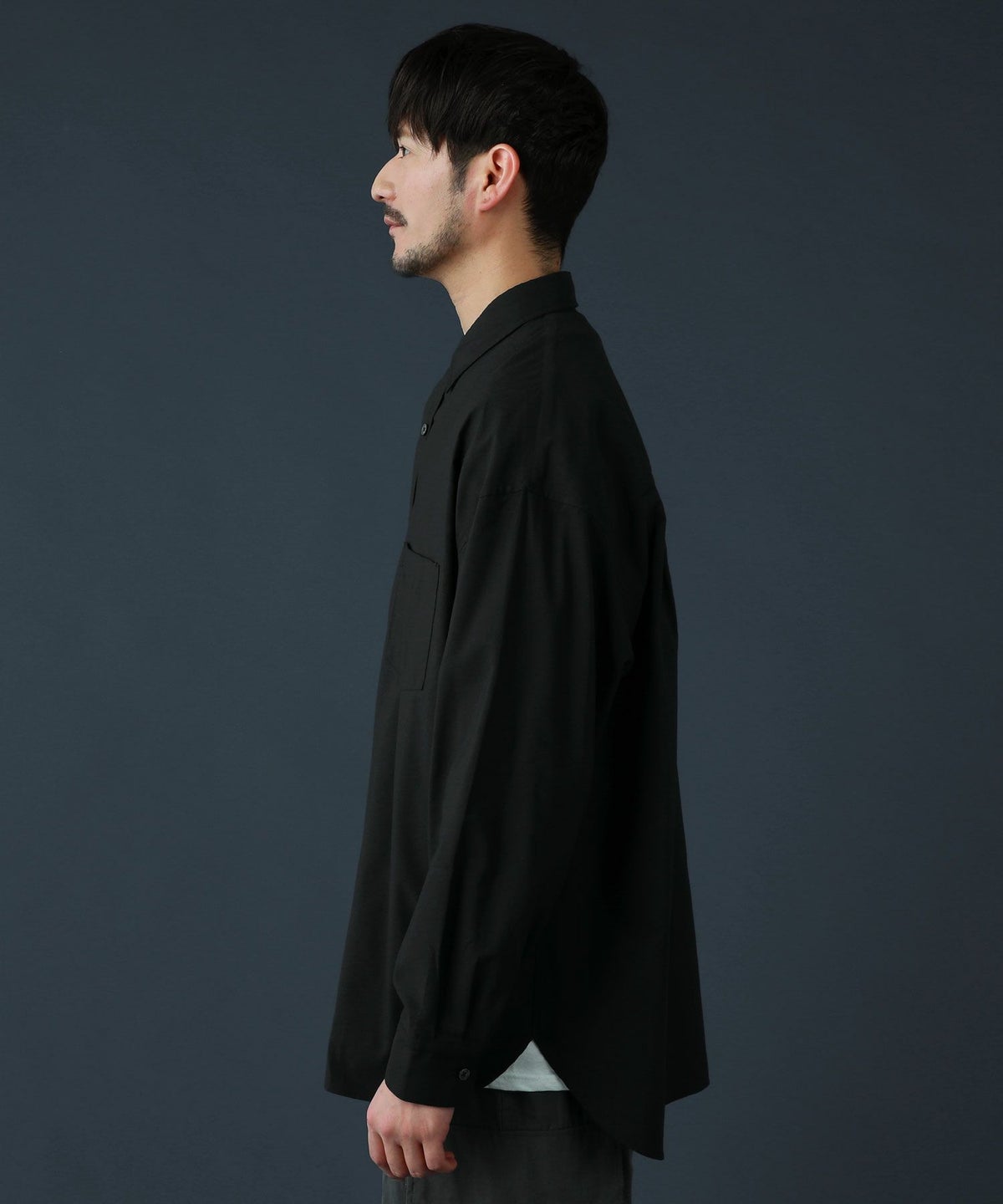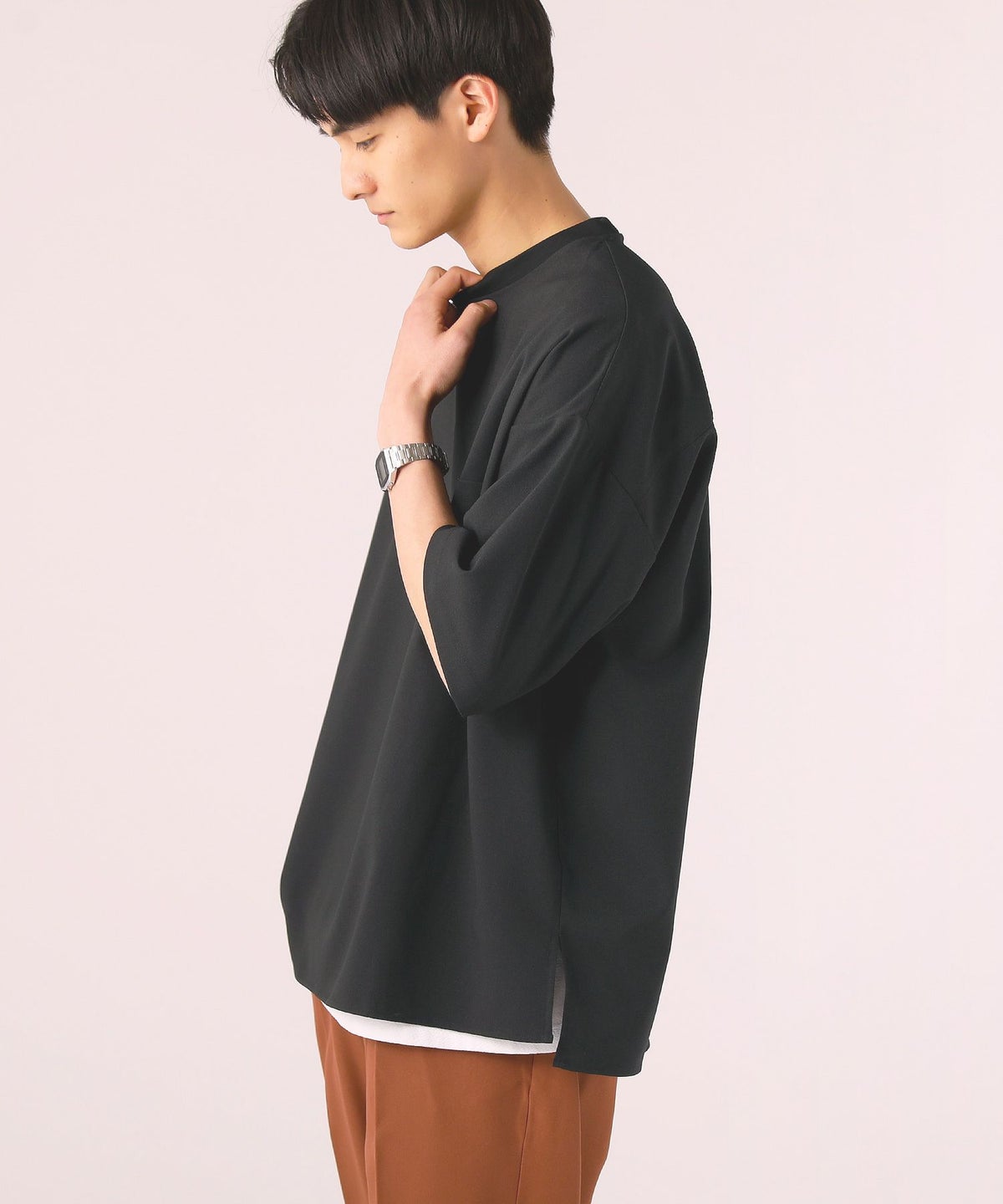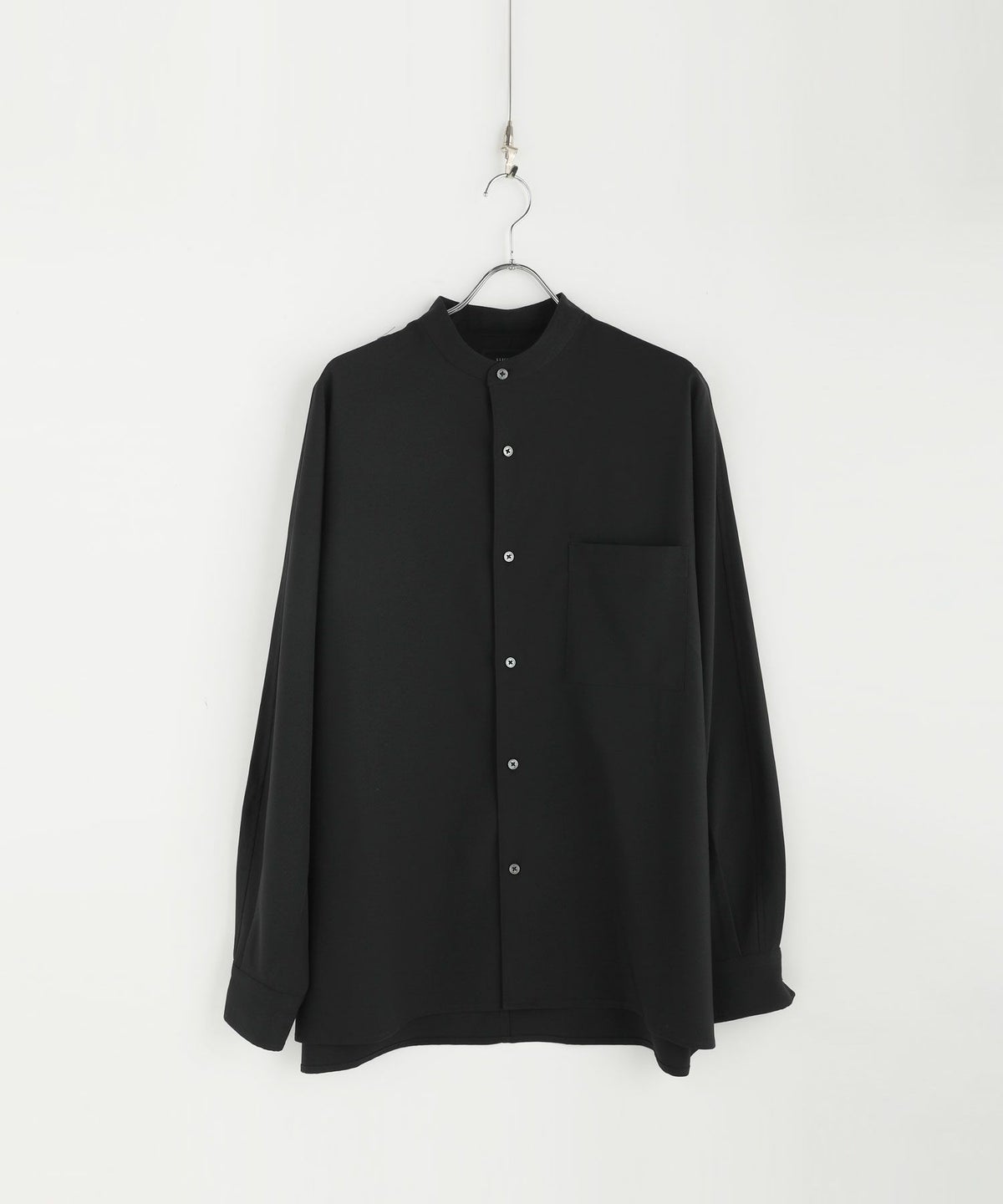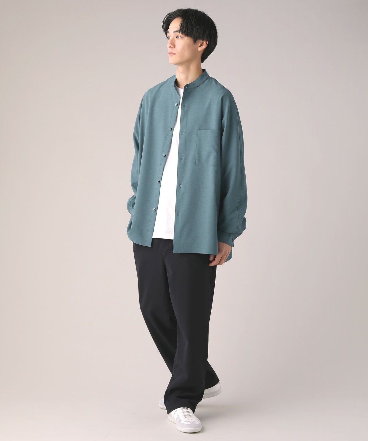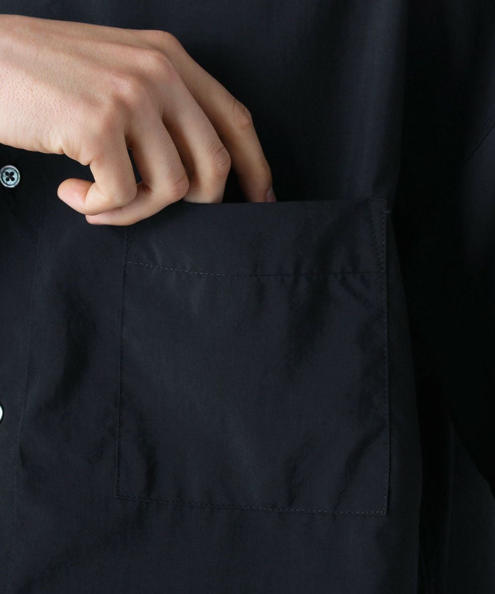 ドロップショルダー半袖バンドカラークレリックシャツ