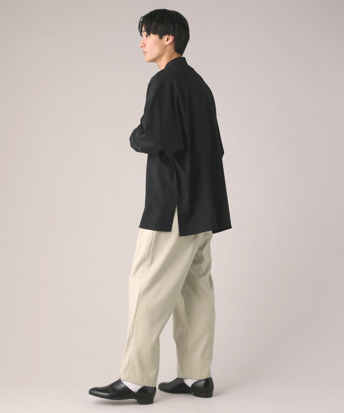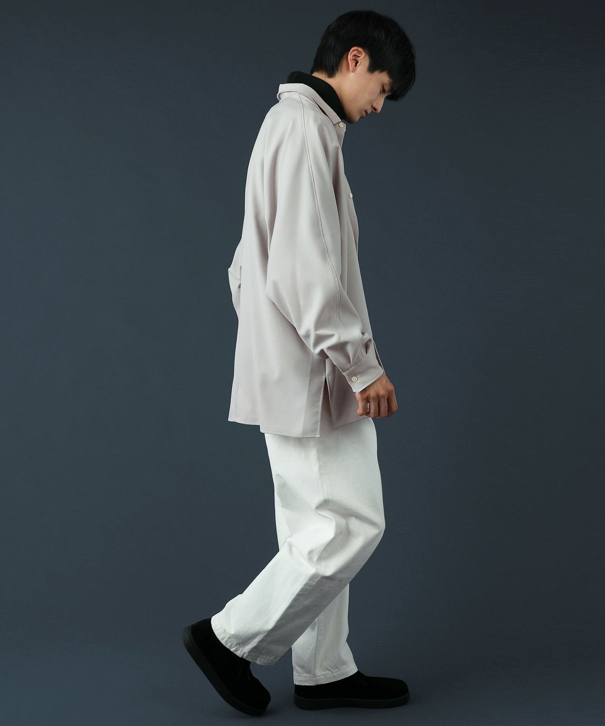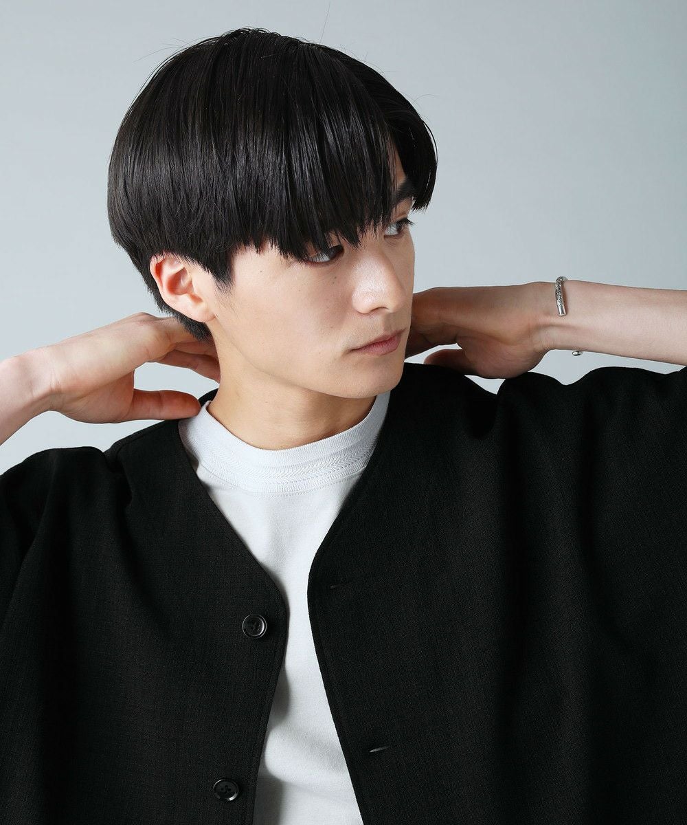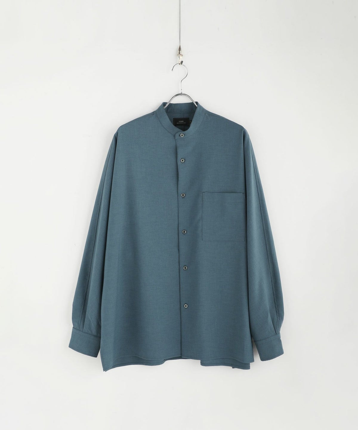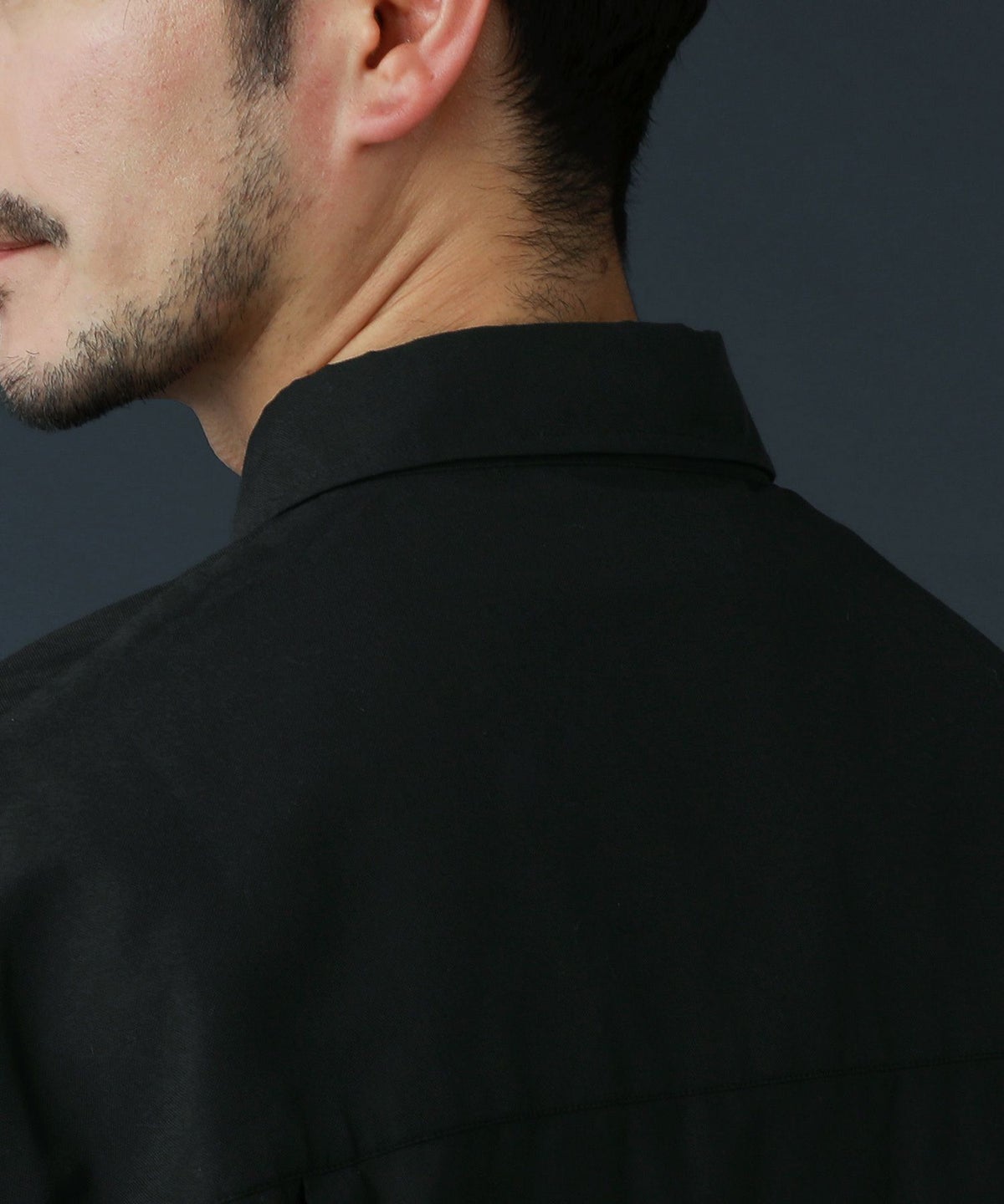 ドロップショルダー半袖バンドカラークレリックシャツ