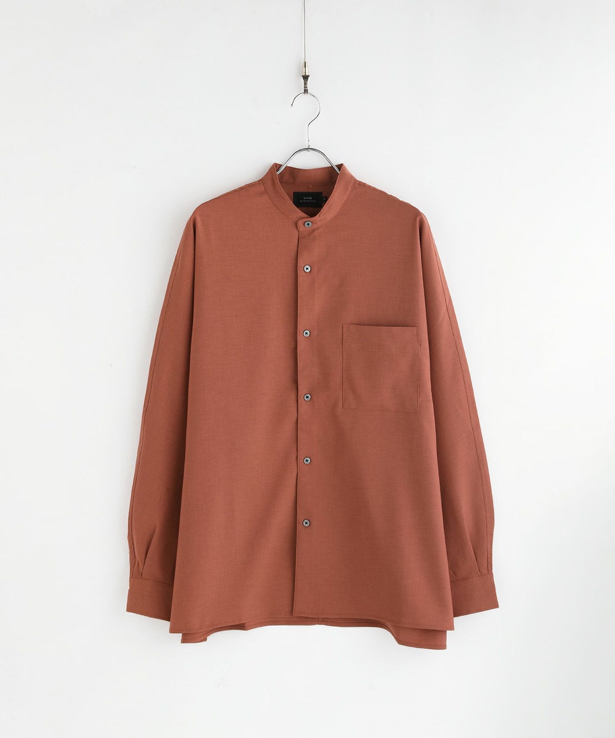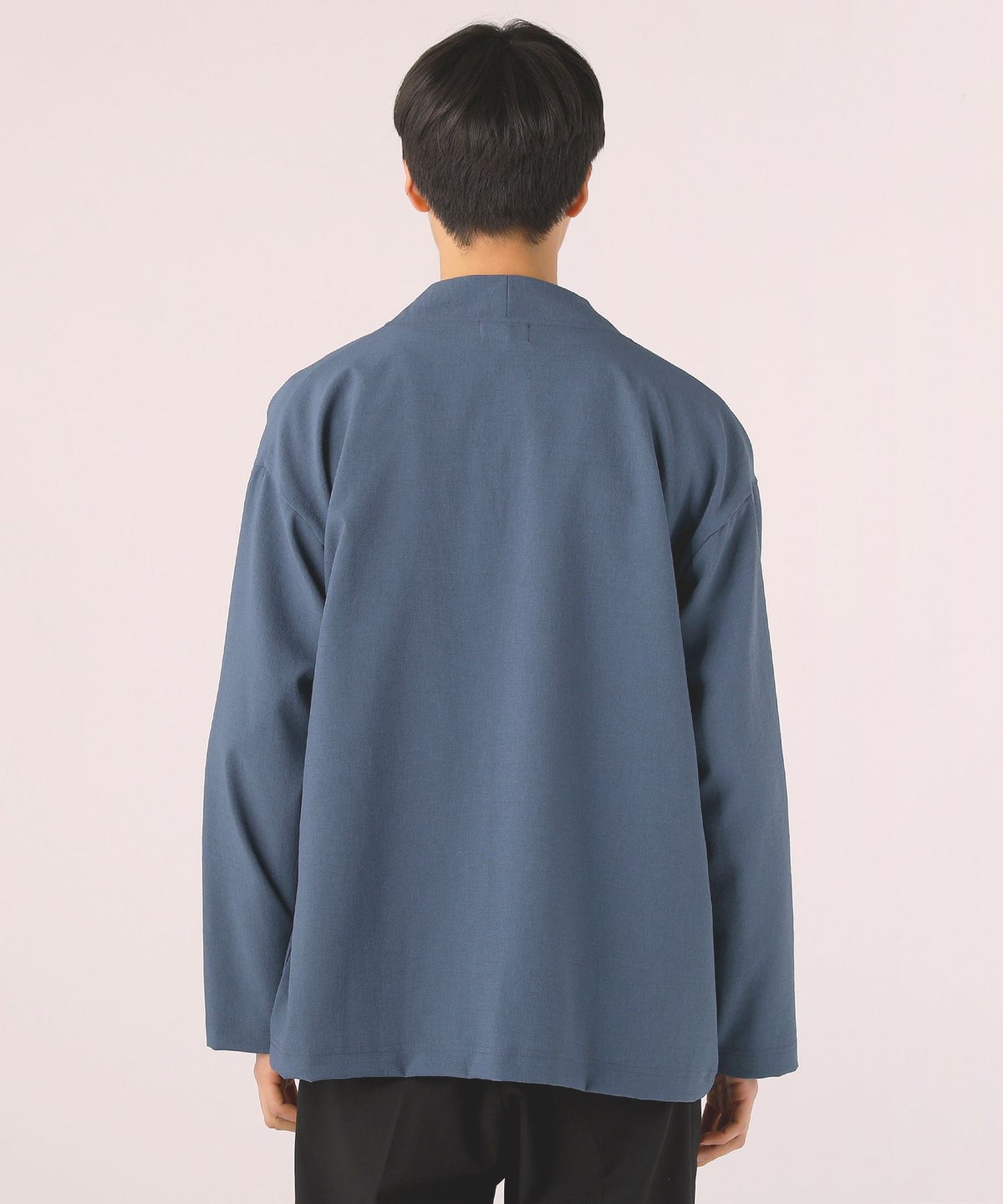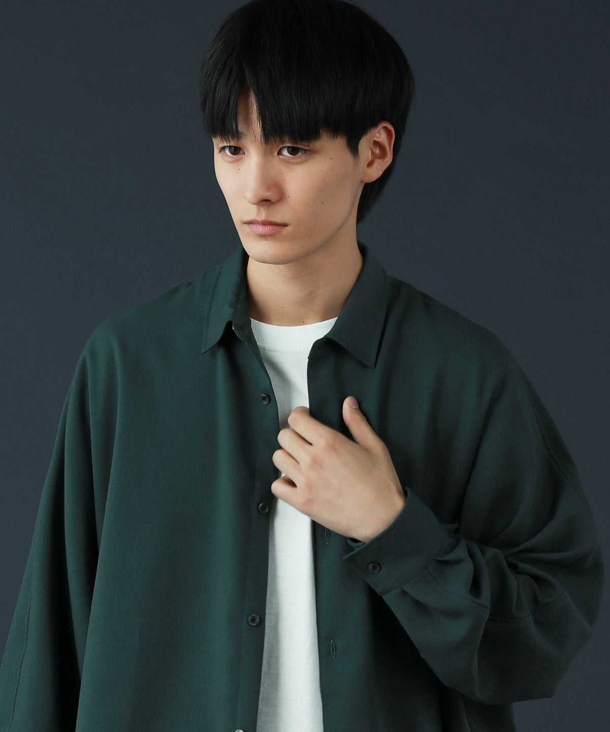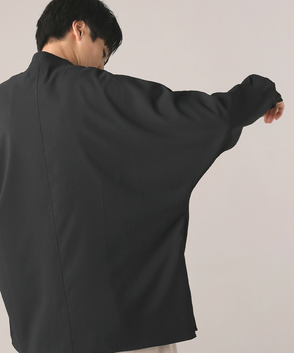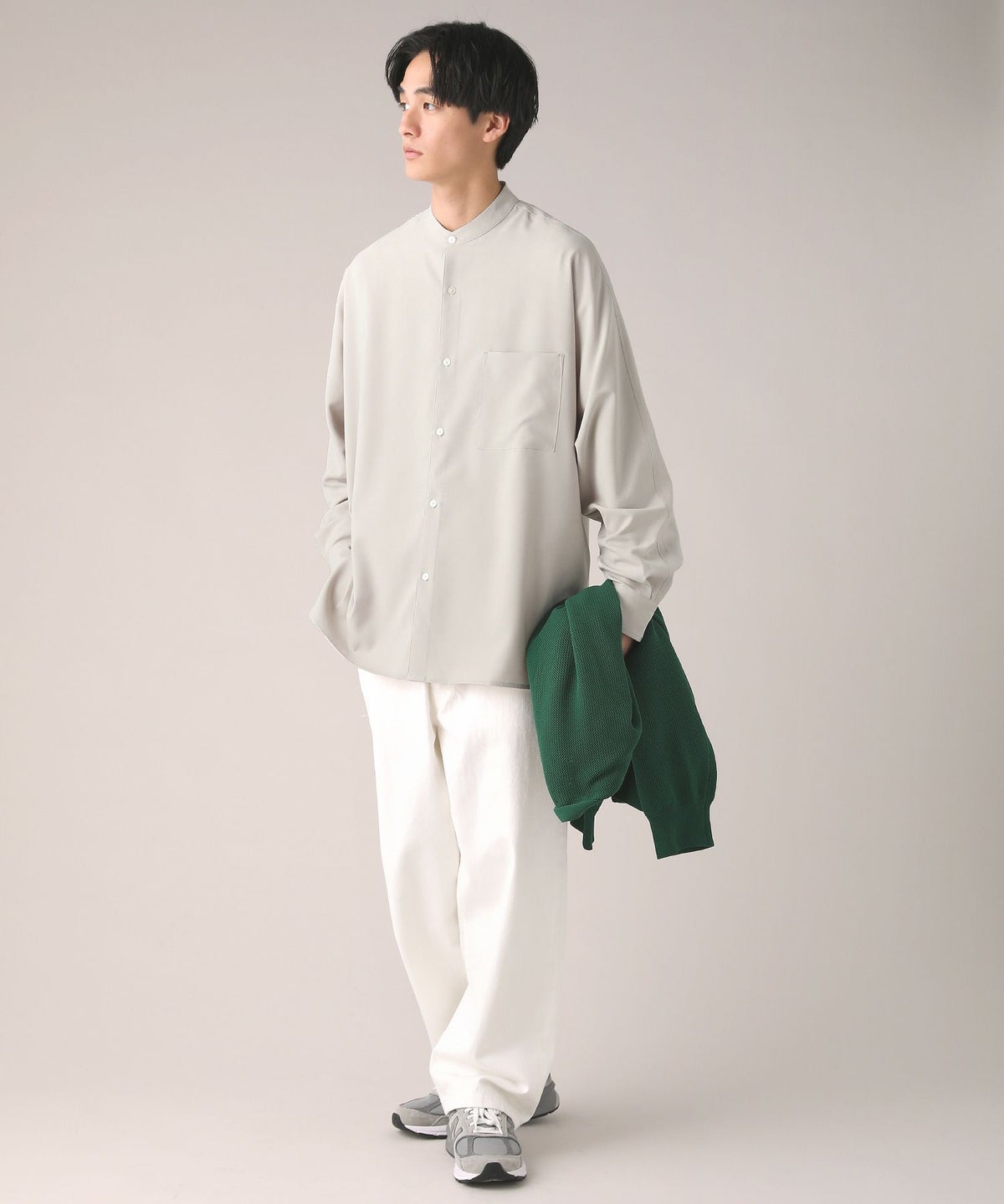 ドロップショルダー半袖バンドカラークレリックシャツ