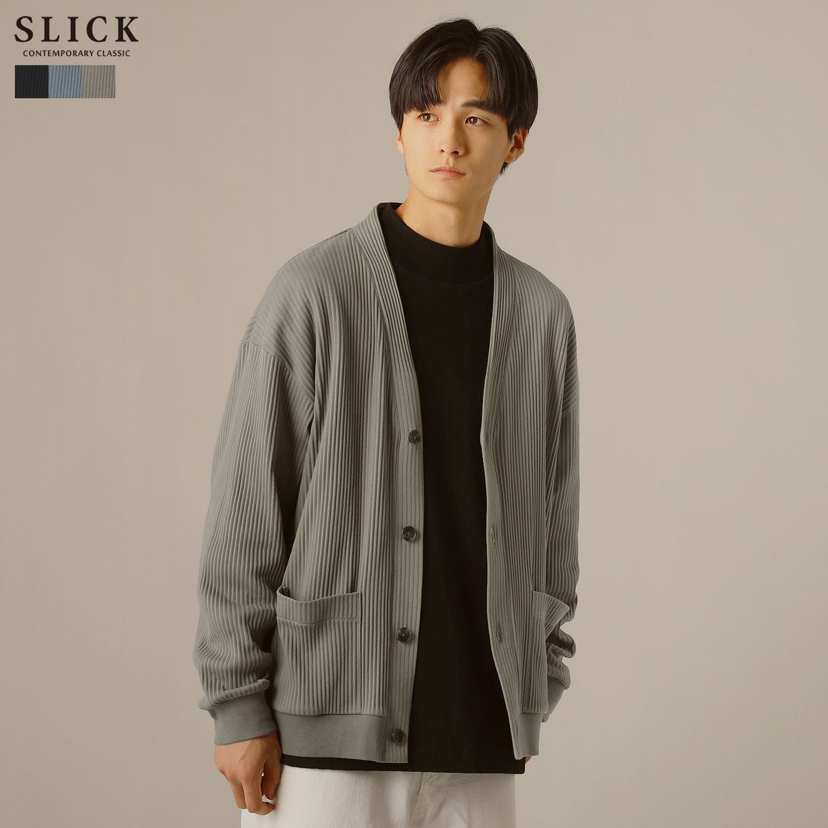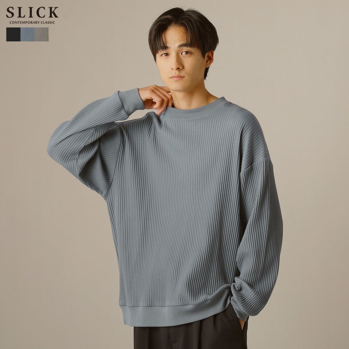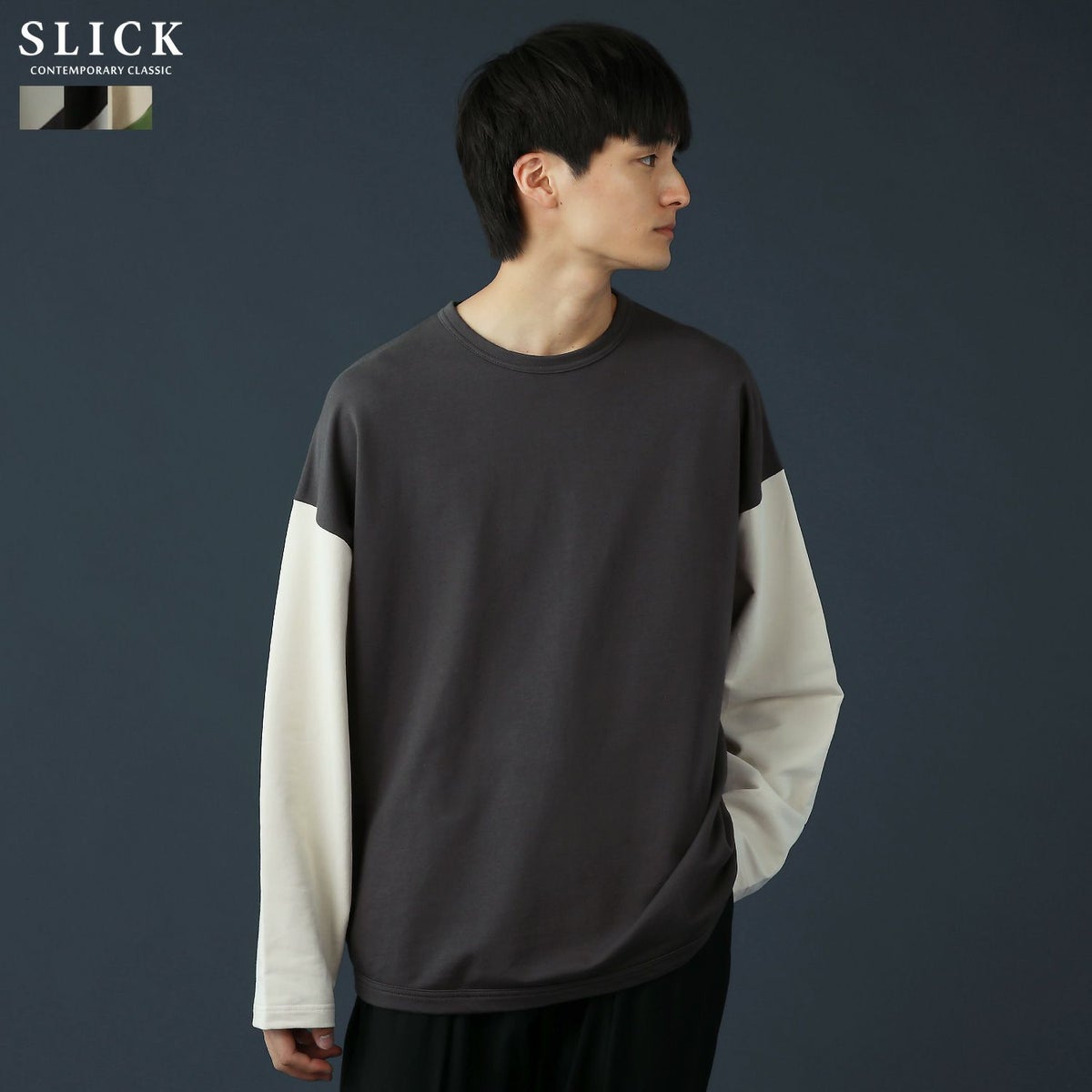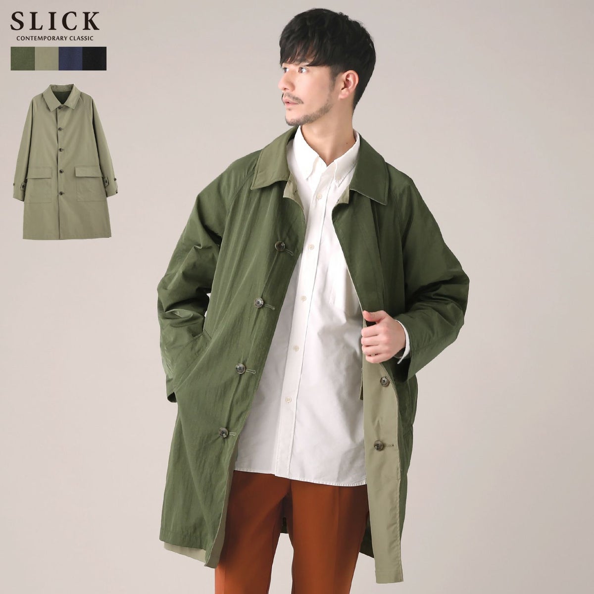 シンプルで洗練された中に確かなセンスを感じさせる高いデザイン性で、雰囲気のある大人の着こなしを作る「SLICK(スリック)」。テイストやスタイルに縛られることなく、ライフスタイルの中から出てくる発想と技術をバランス良く組み合わせることで新しい価値を生み出し、より洗練されたリアルクローズ「実質的な価値のある現実的な服」を提案します。