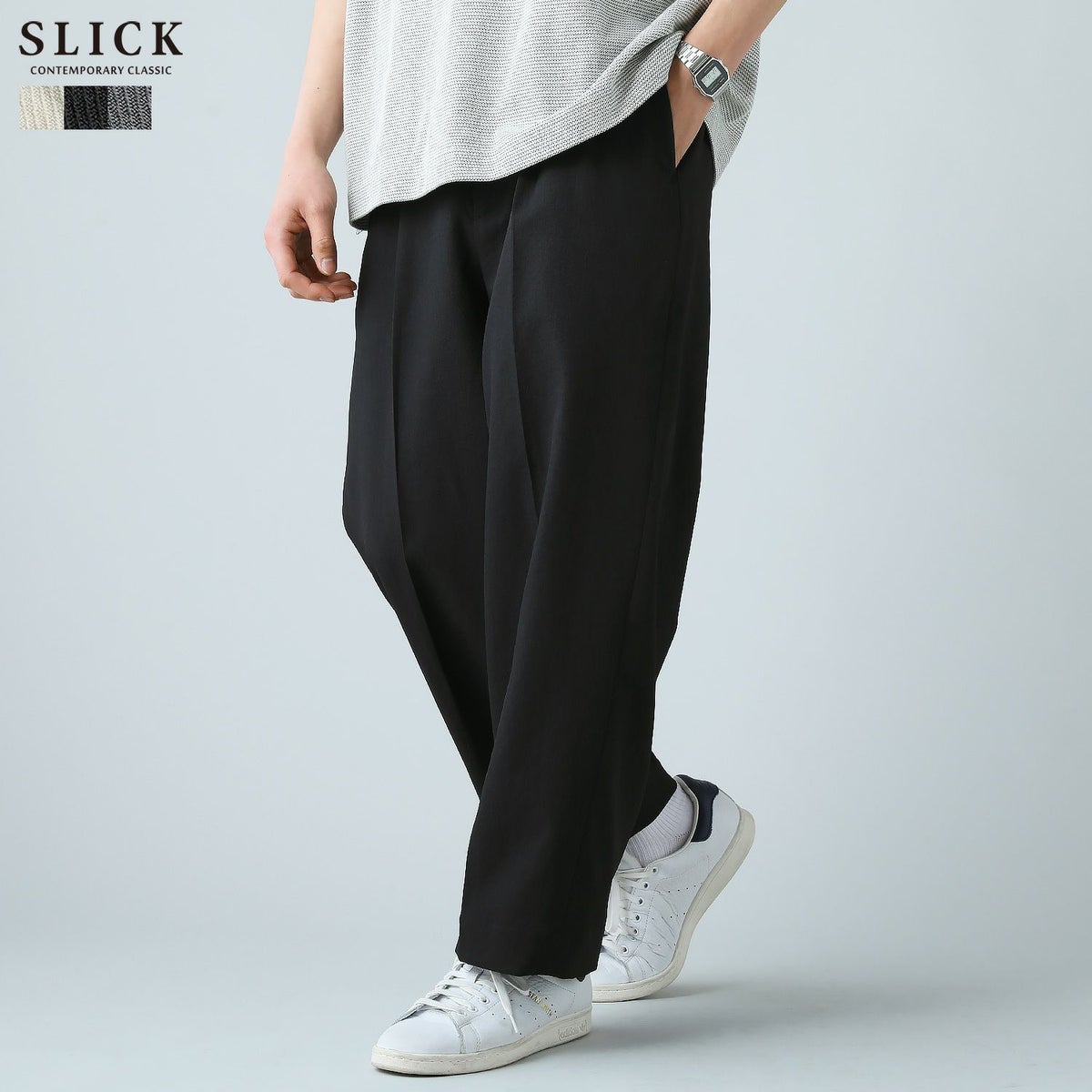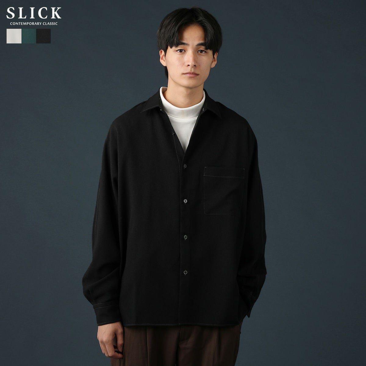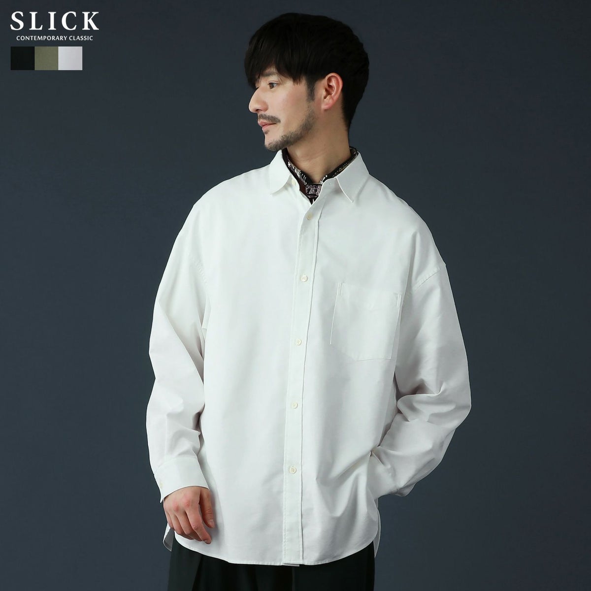 シンプルで洗練された中に確かなセンスを感じさせる高いデザイン性で、雰囲気のある大人の着こなしを作る「SLICK(スリック)」。テイストやスタイルに縛られることなく、ライフスタイルの中から出てくる発想と技術をバランス良く組み合わせることで新しい価値を生み出し、より洗練されたリアルクローズ「実質的な価値のある現実的な服」を提案します。