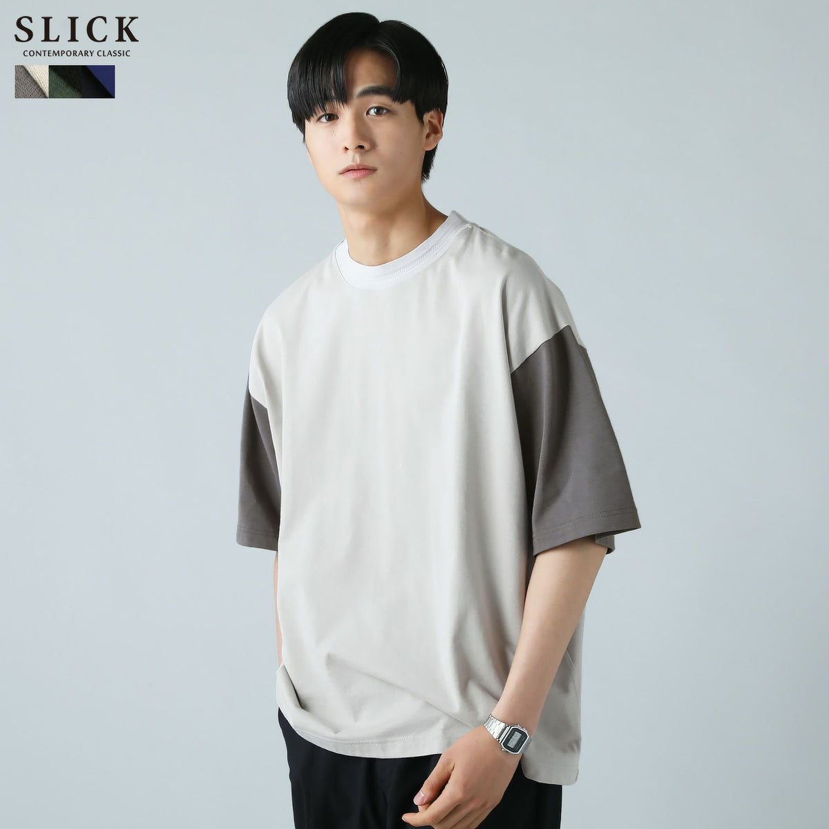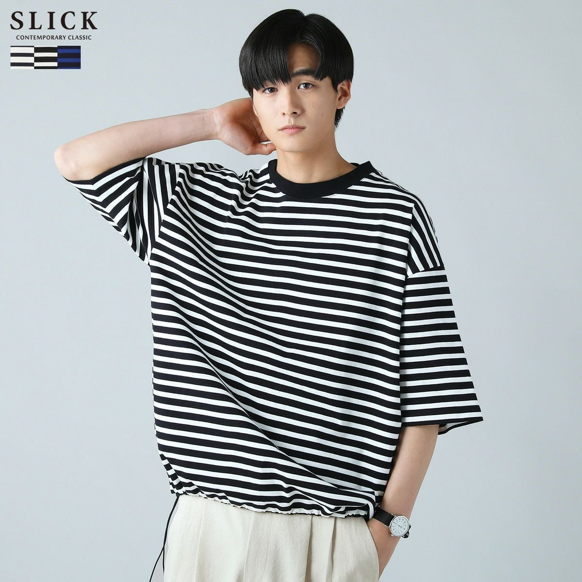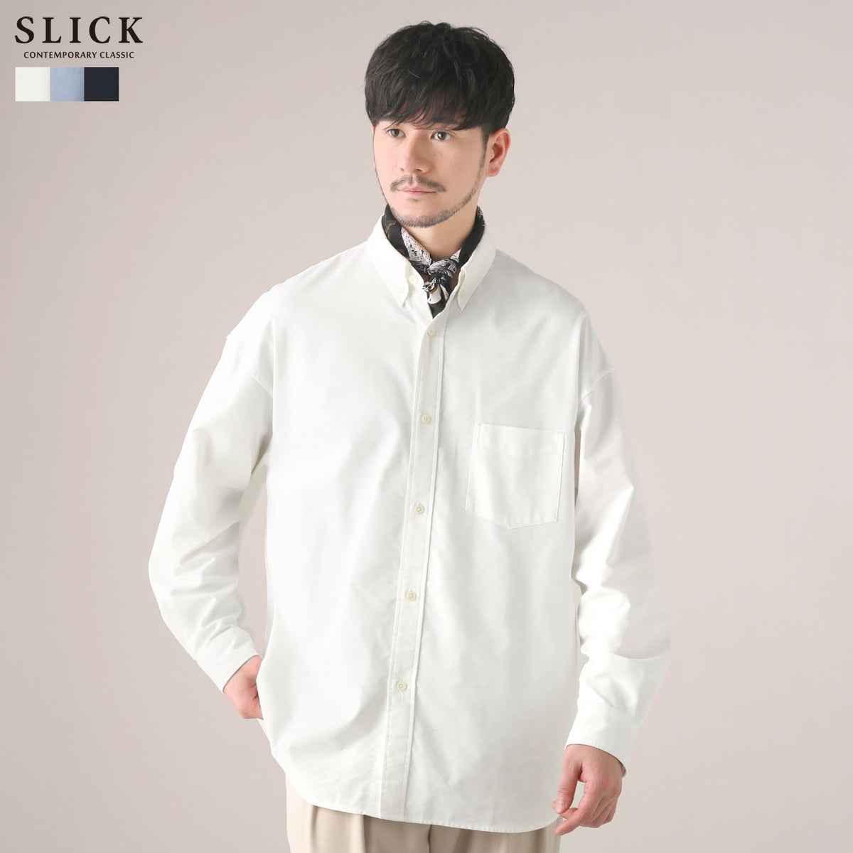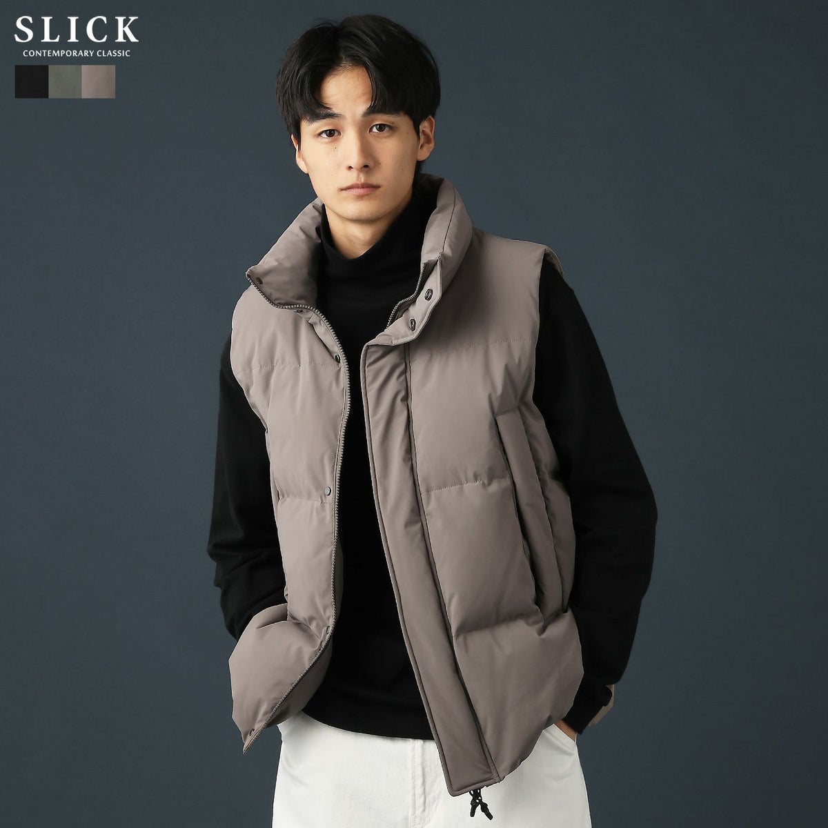 シンプルで洗練された中に確かなセンスを感じさせる高いデザイン性で、雰囲気のある大人の着こなしを作る「SLICK(スリック)」。テイストやスタイルに縛られることなく、ライフスタイルの中から出てくる発想と技術をバランス良く組み合わせることで新しい価値を生み出し、より洗練されたリアルクローズ「実質的な価値のある現実的な服」を提案します。