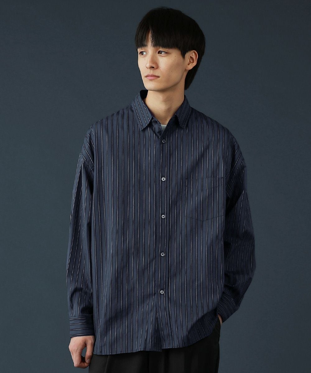 120/2ブロードストライプオーバーサイズ長袖シャツ
