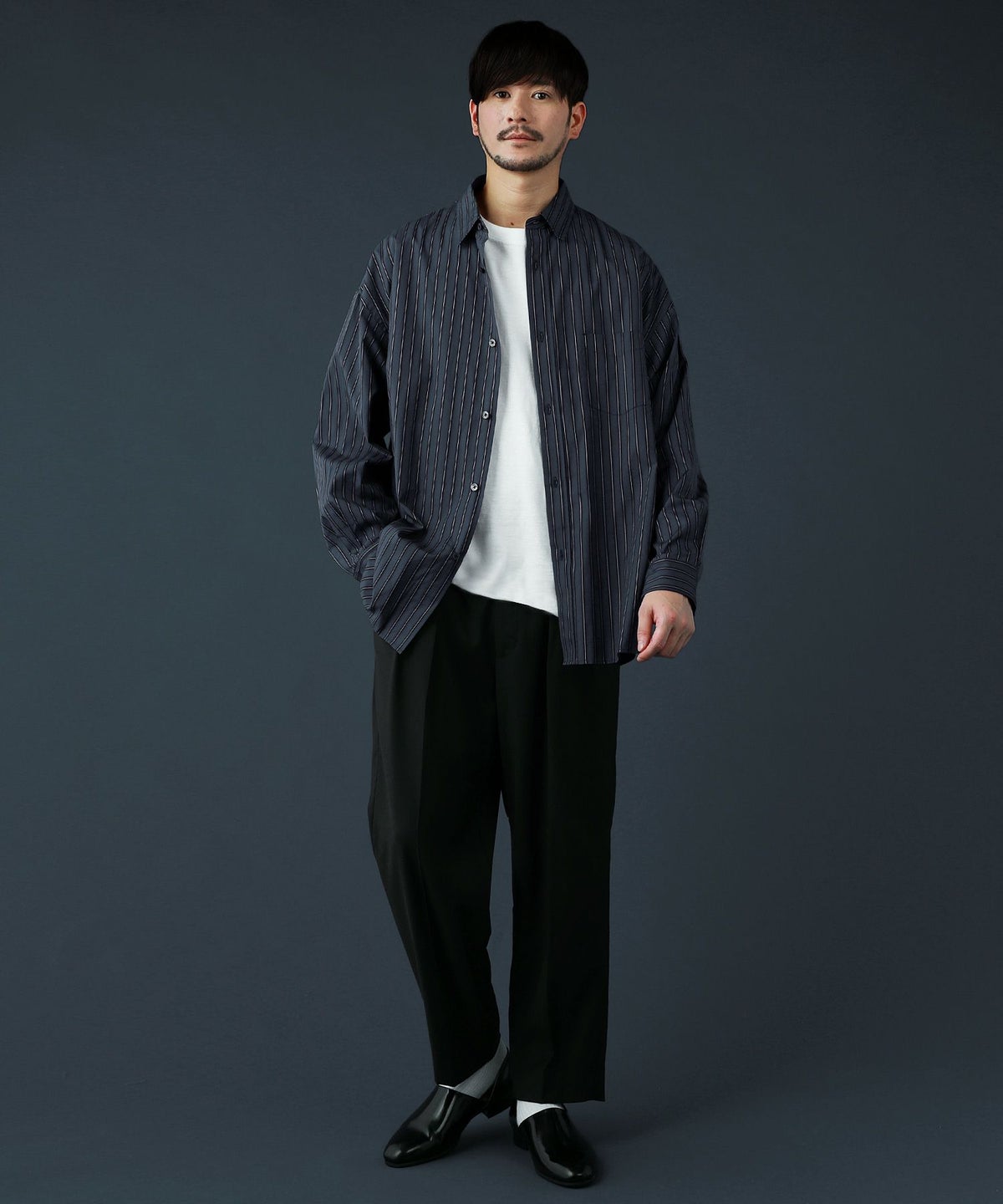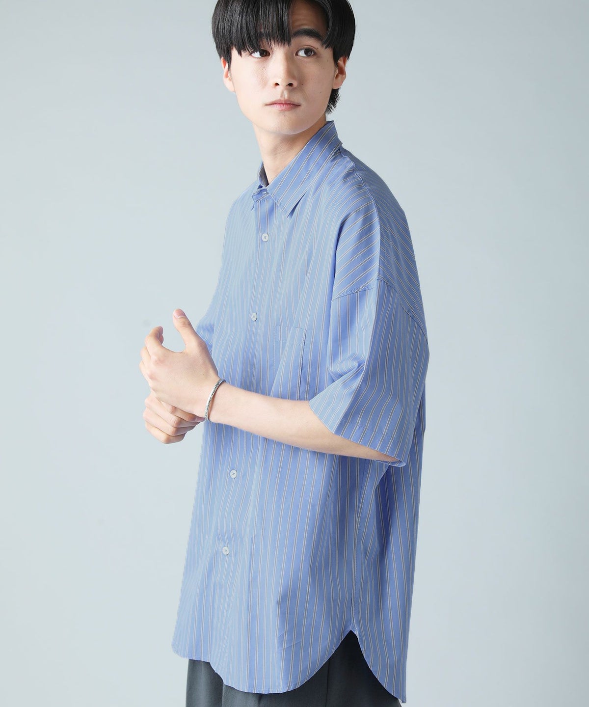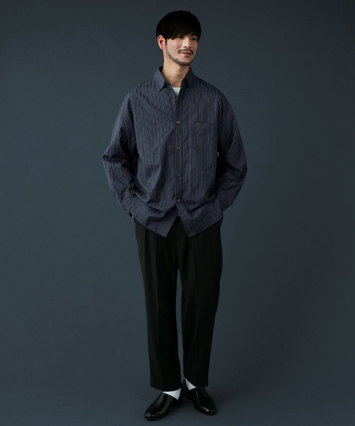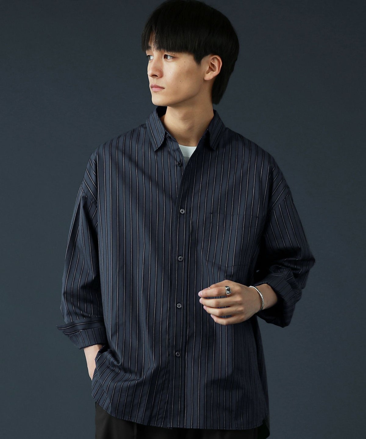 100番手双糸ドビーストライプオーバーサイズシャツ