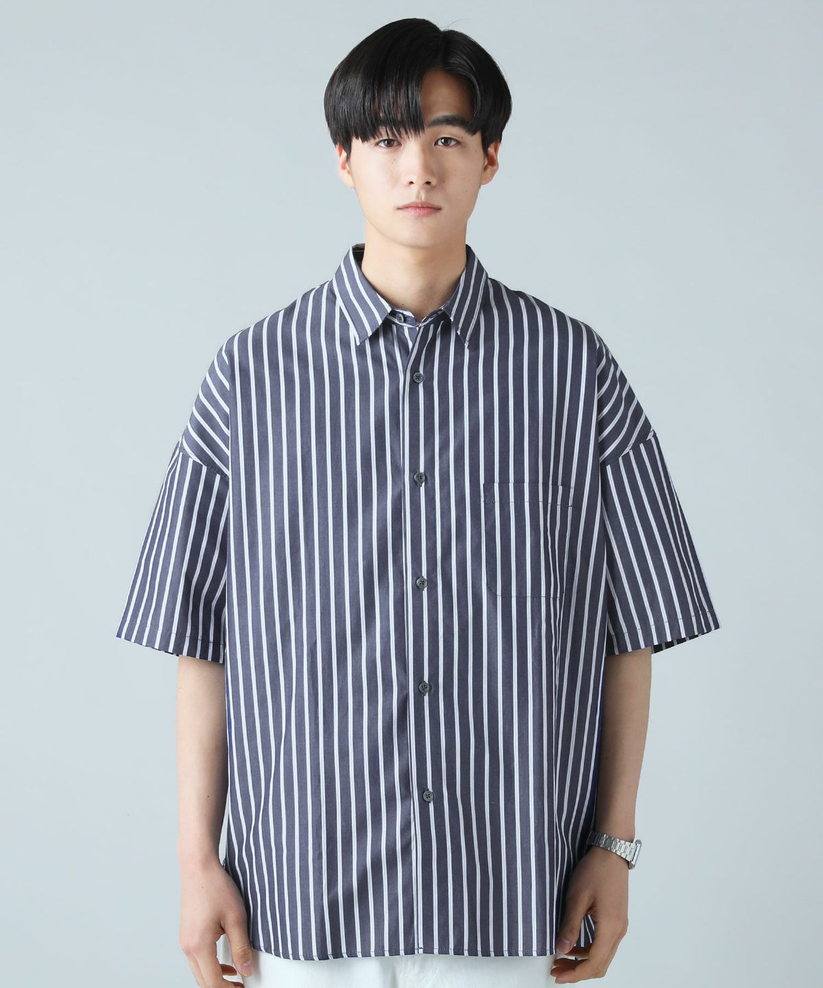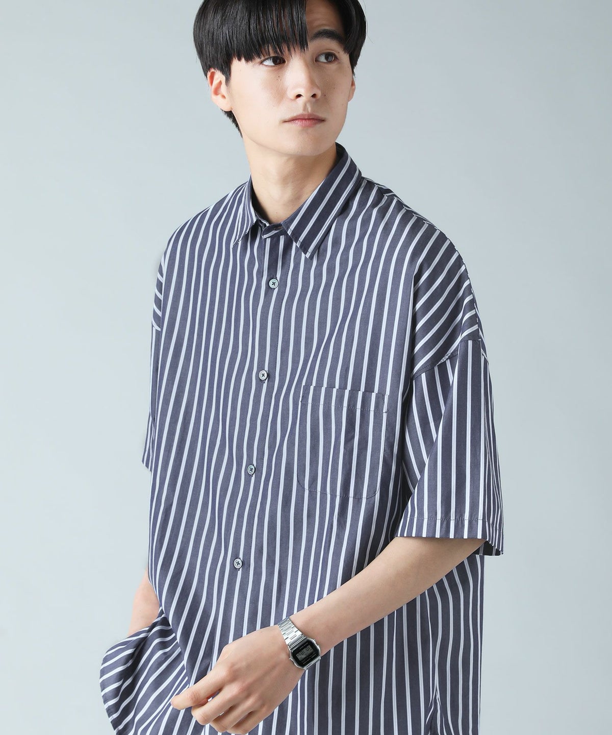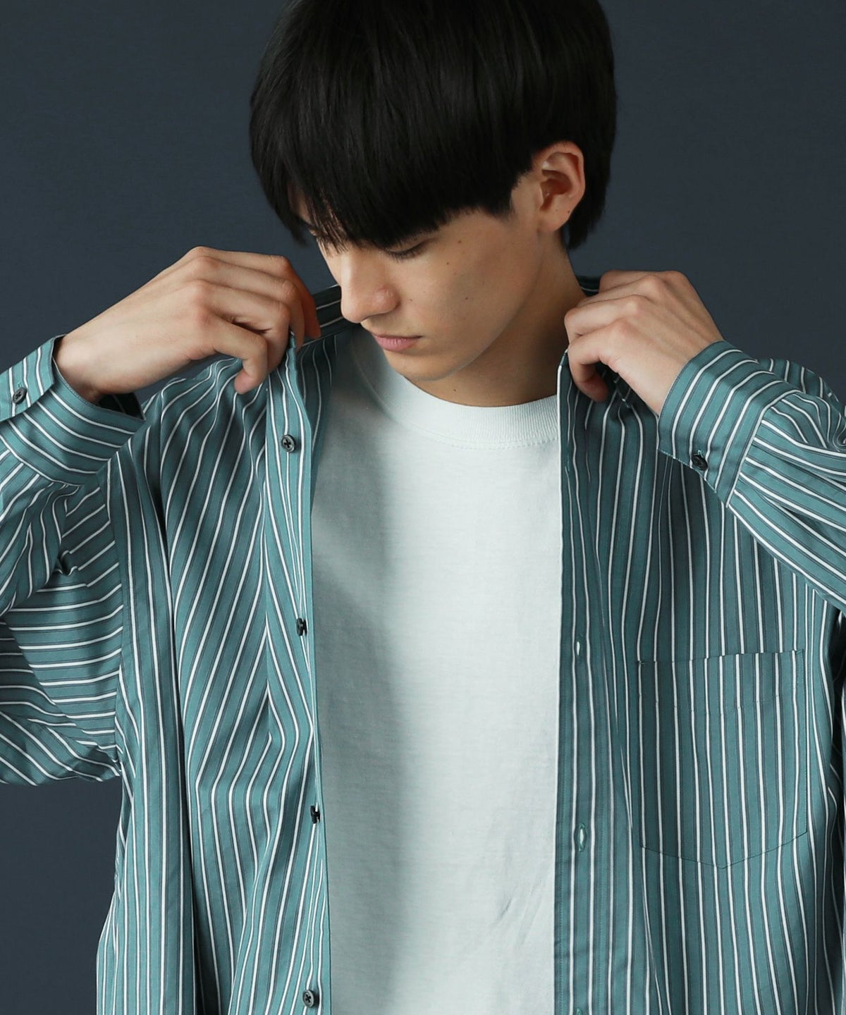 100番手双糸ドビーストライプオーバーサイズシャツ