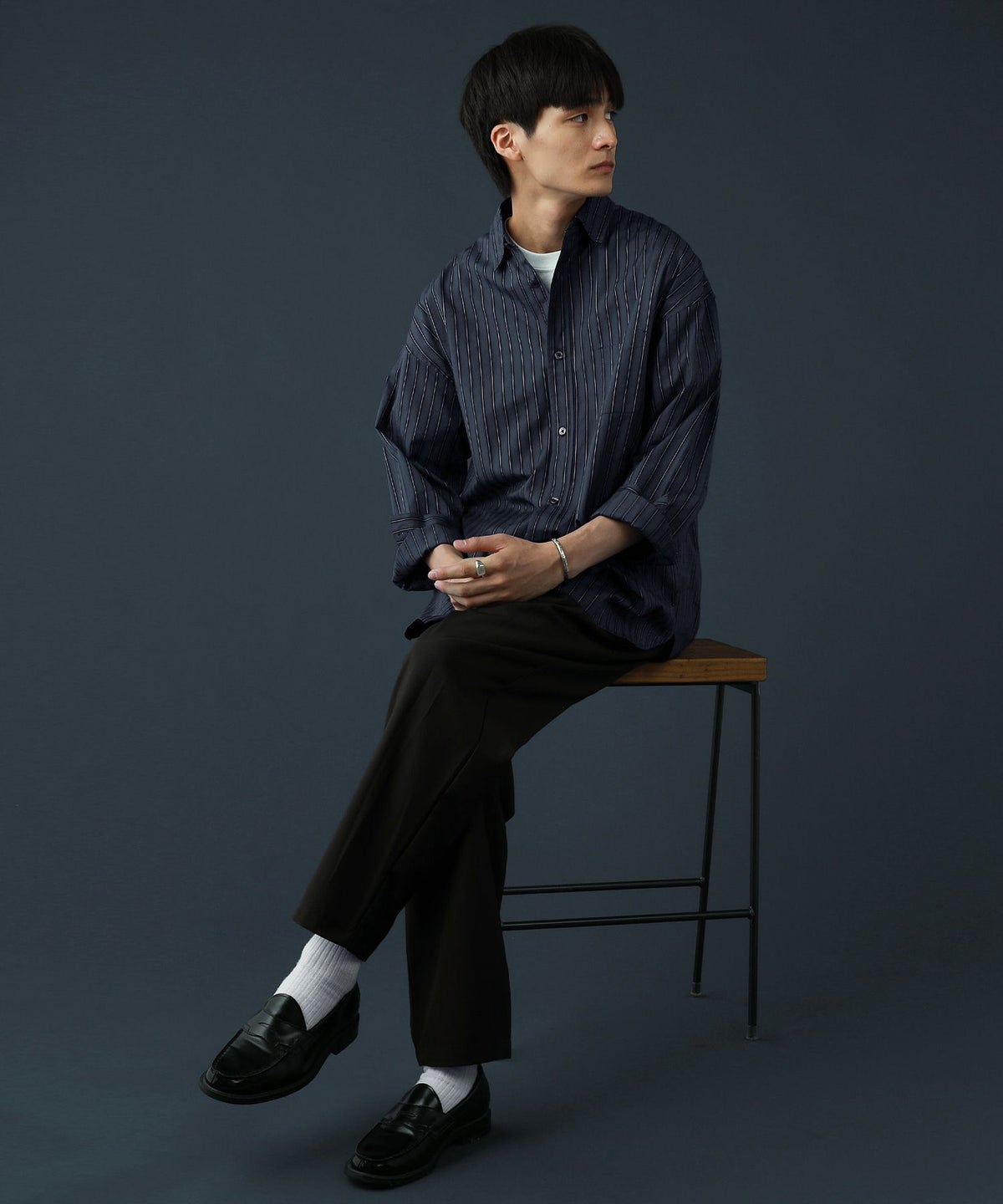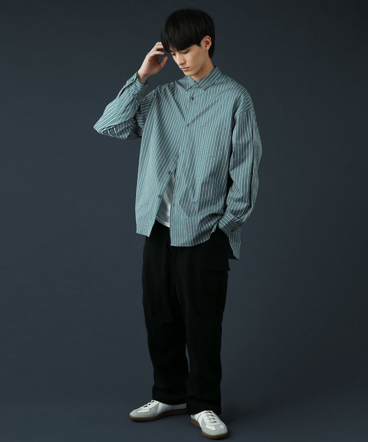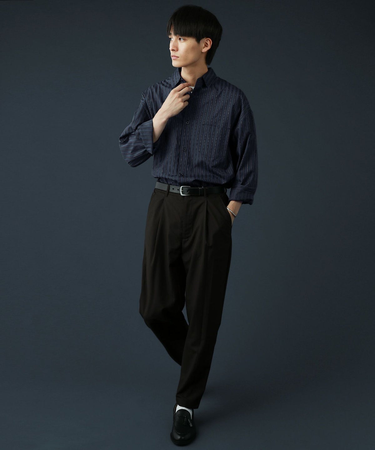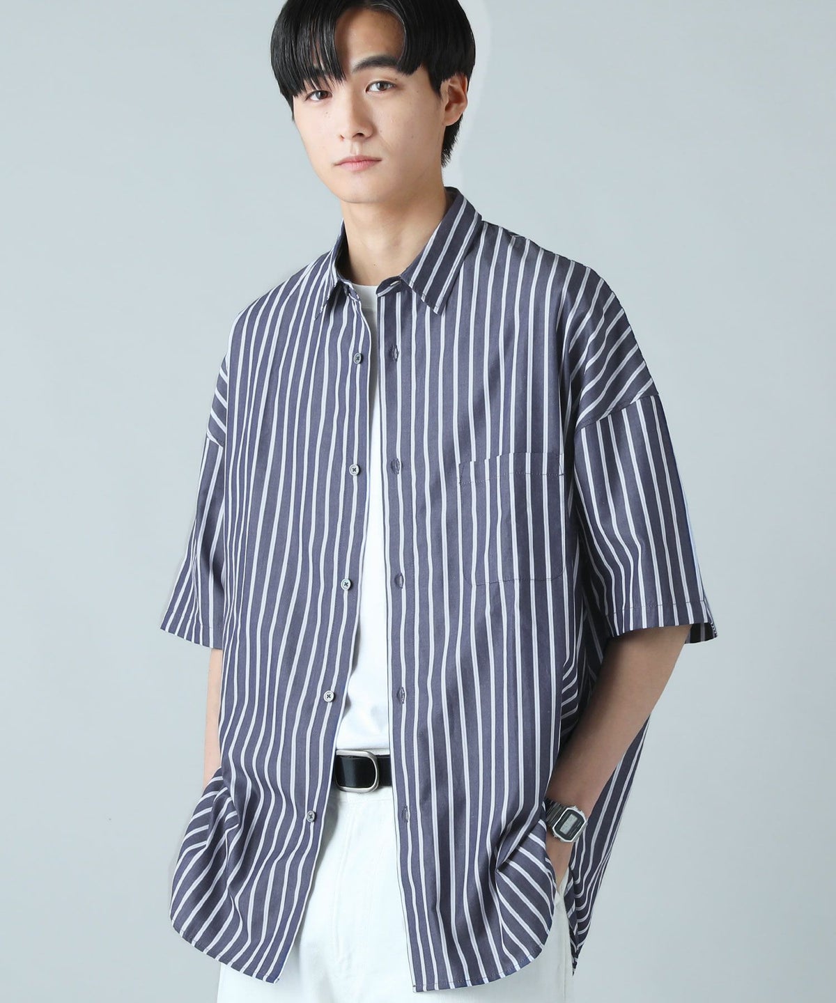 100番手双糸ドビーストライプオーバーサイズシャツ