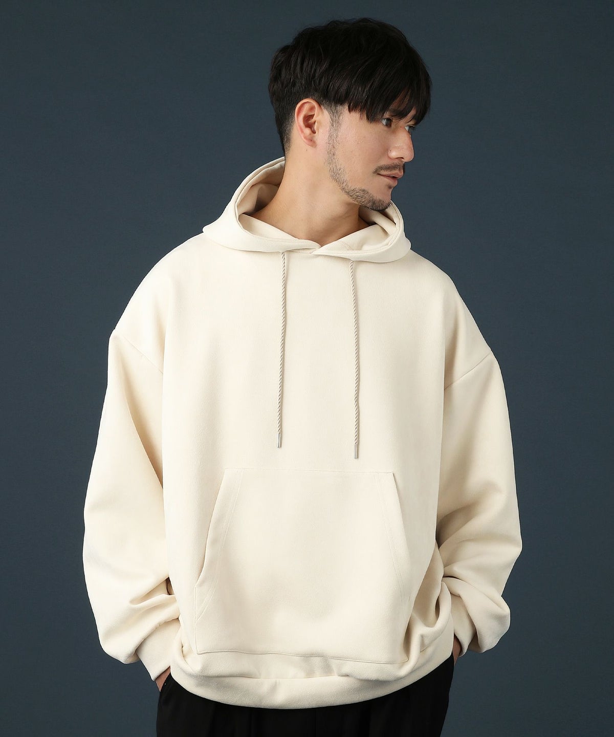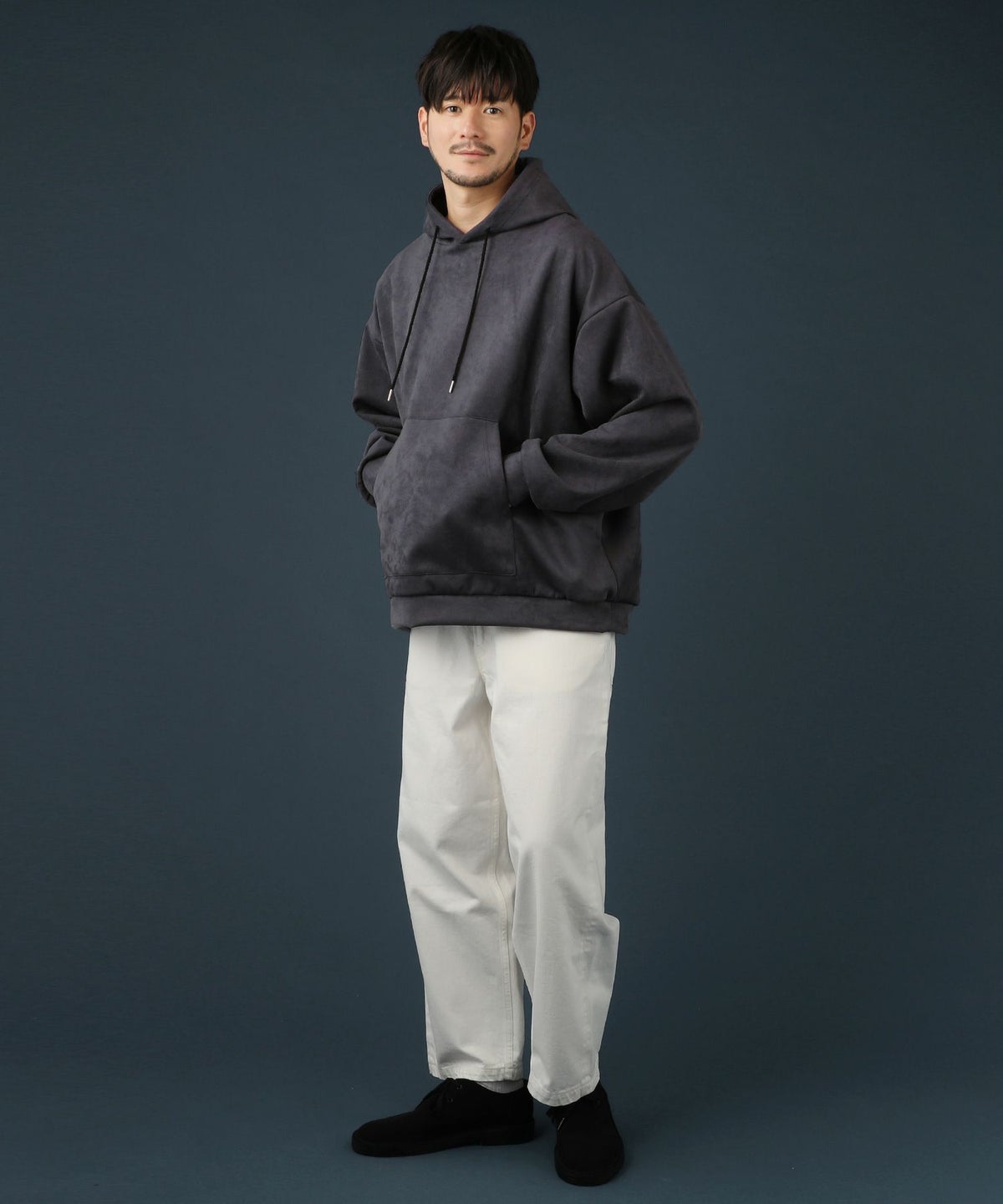 ストレッチフェイクスウェードプルパーカー