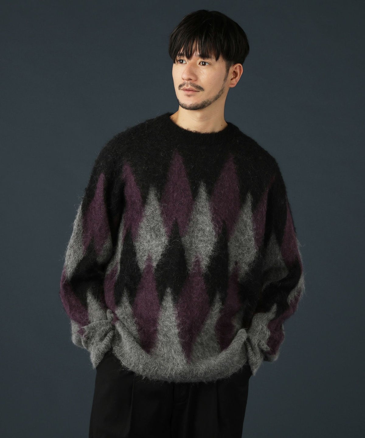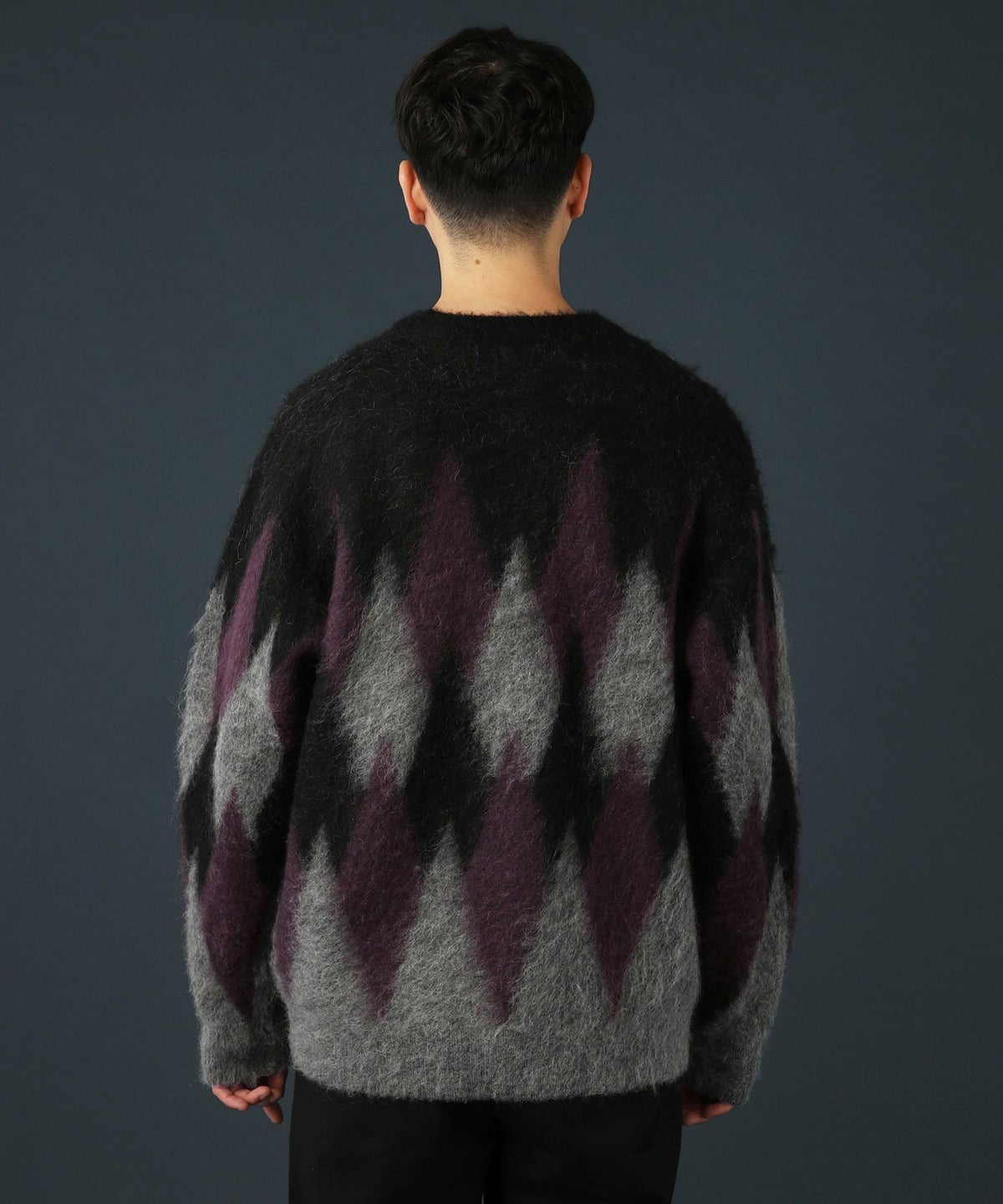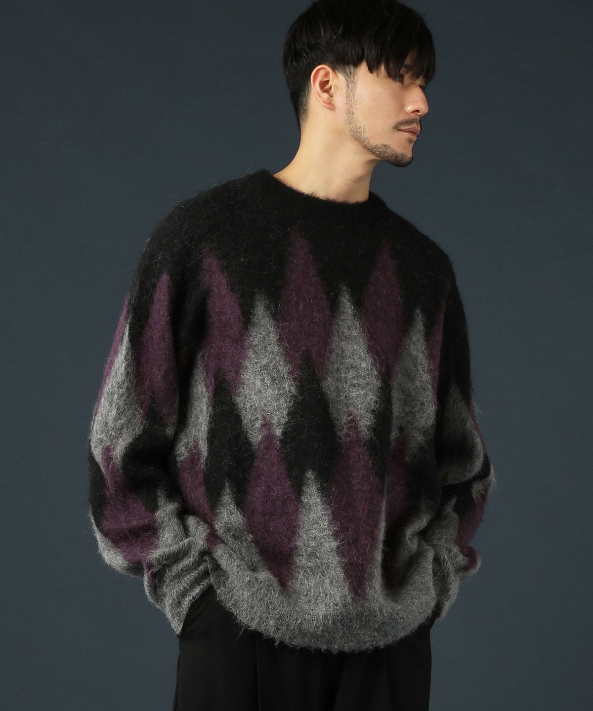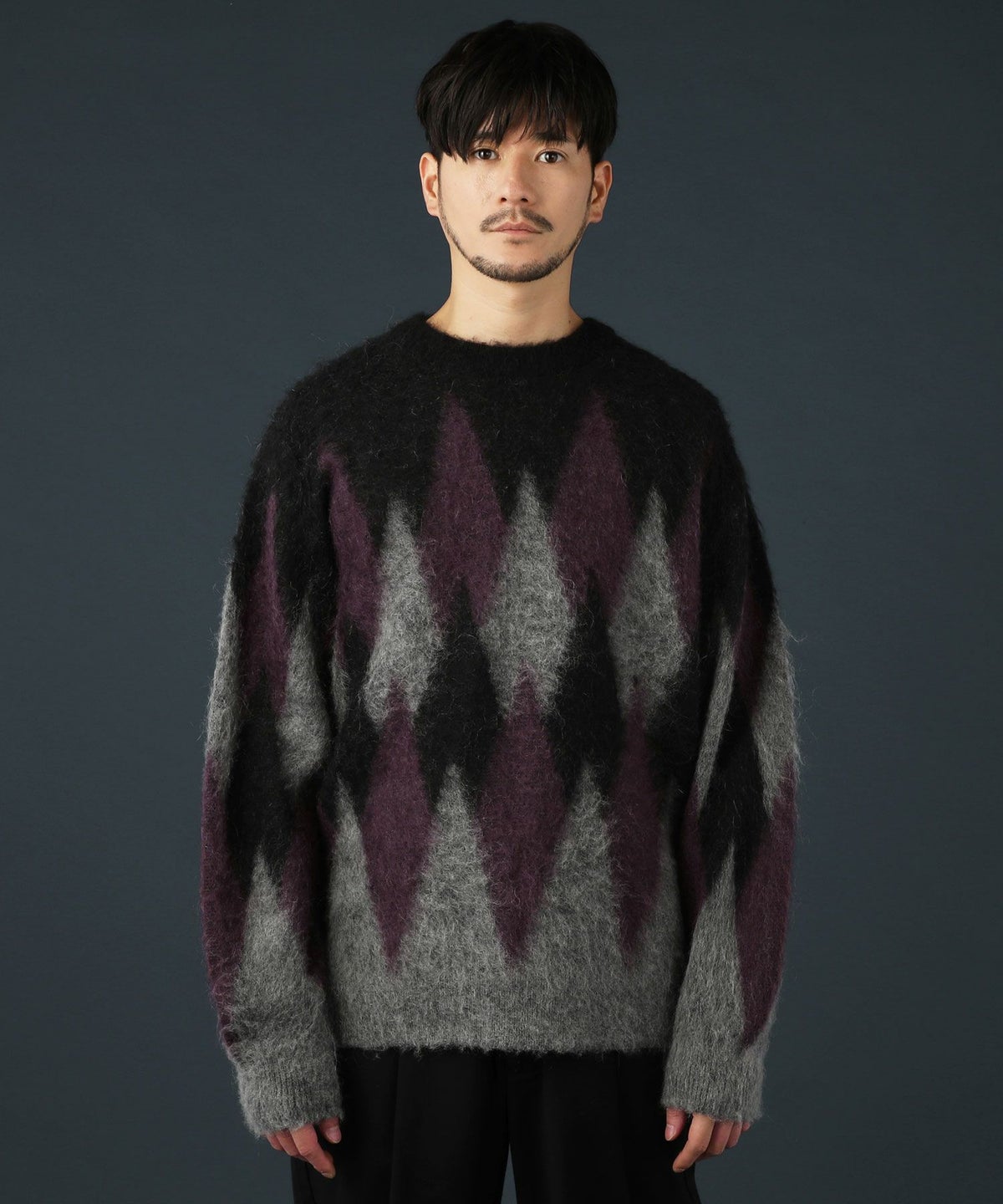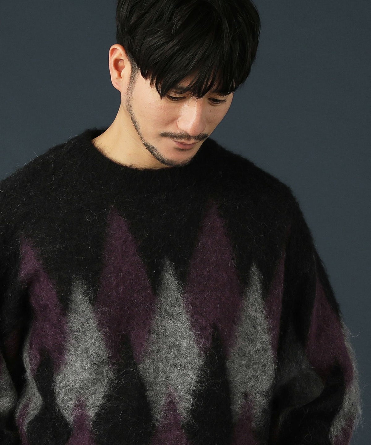 アーガイル柄シャギーモヘアニットー