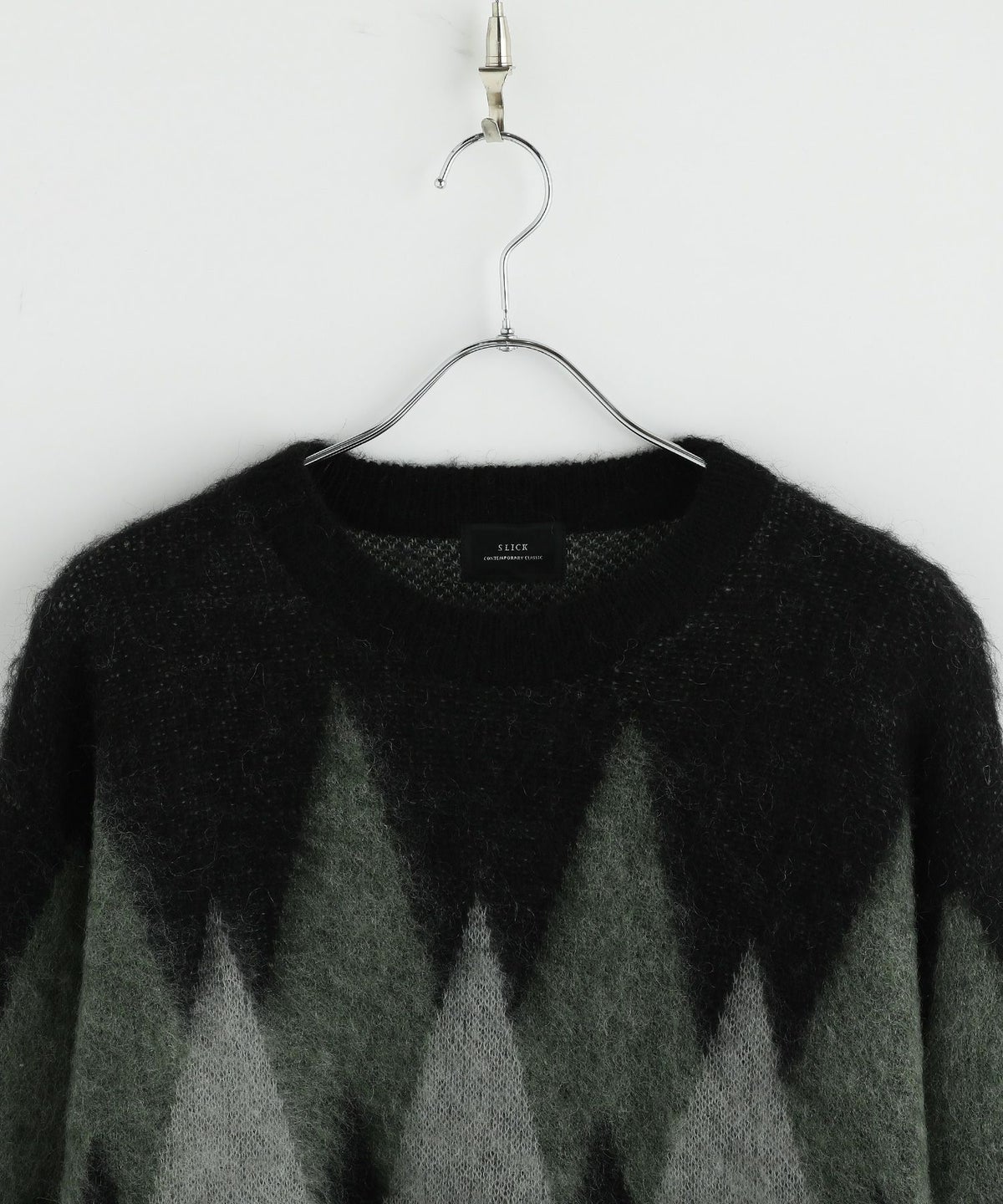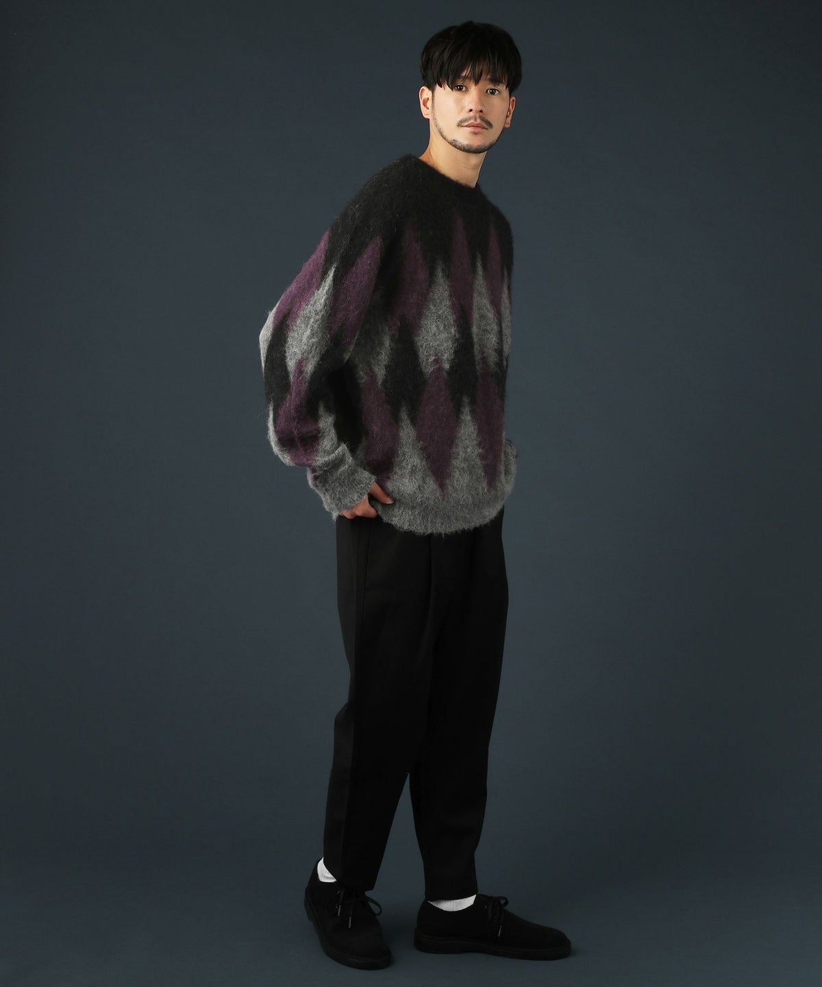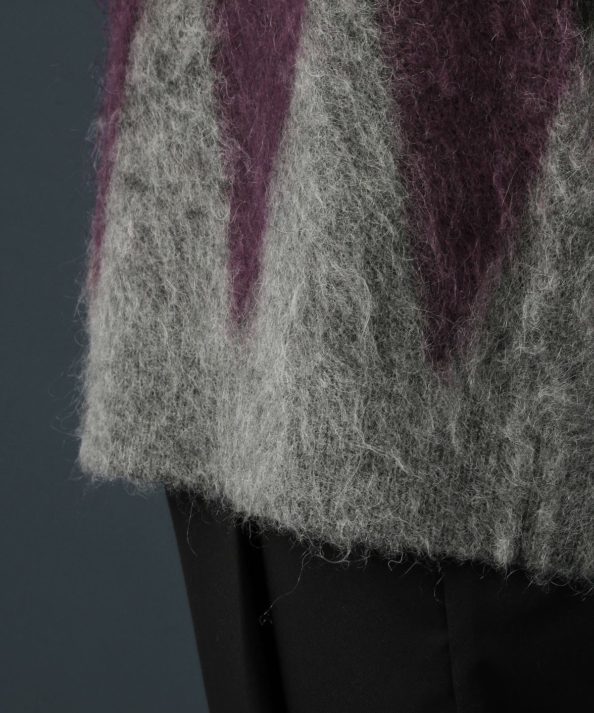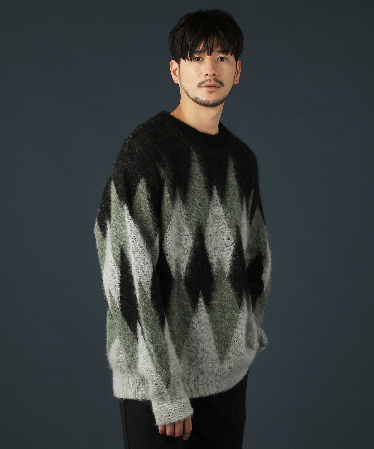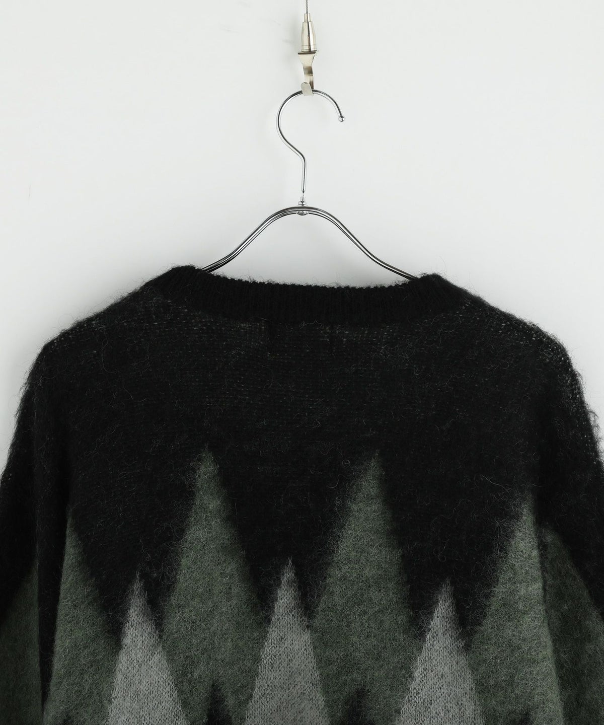 アーガイル柄シャギーモヘアニットー