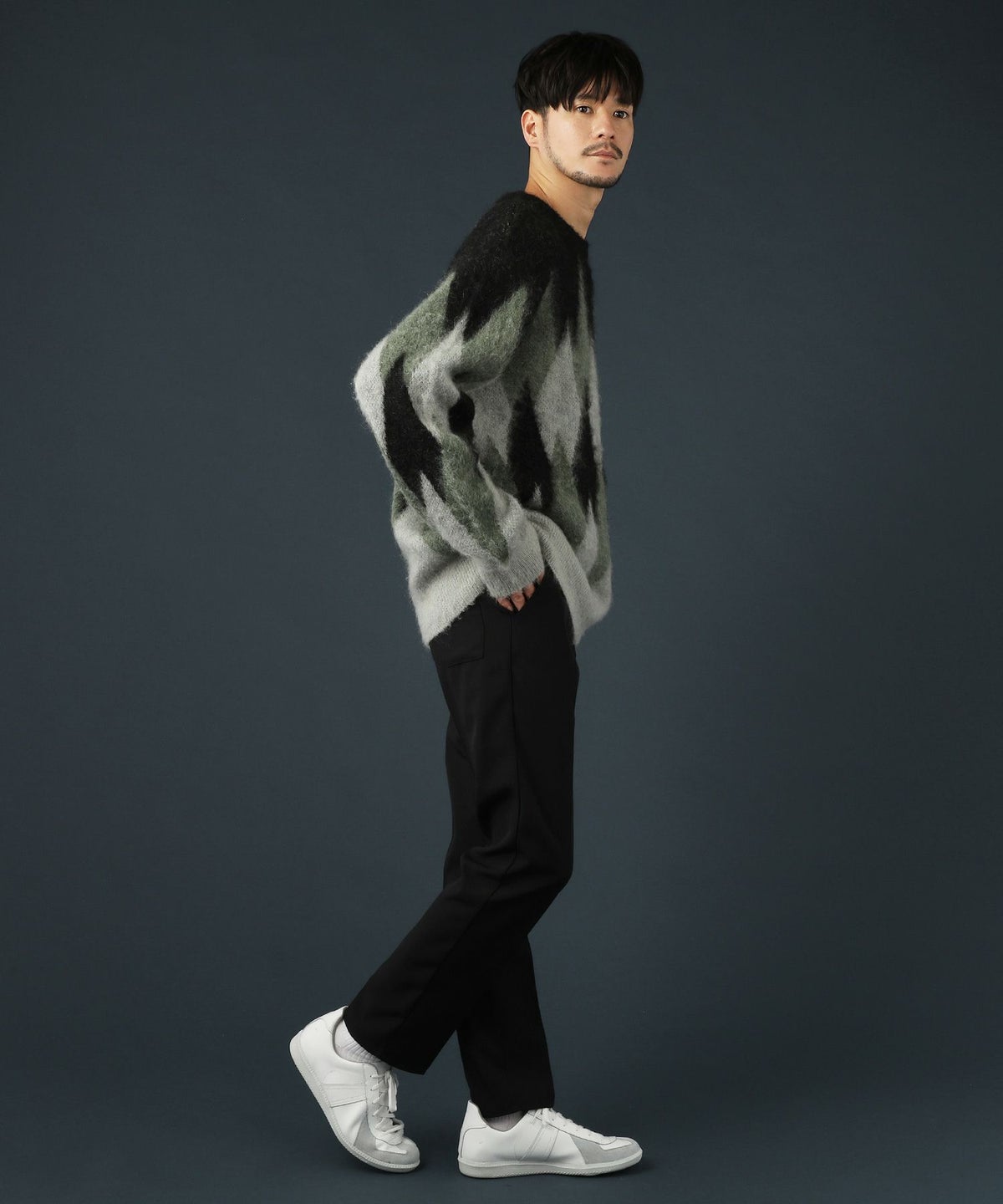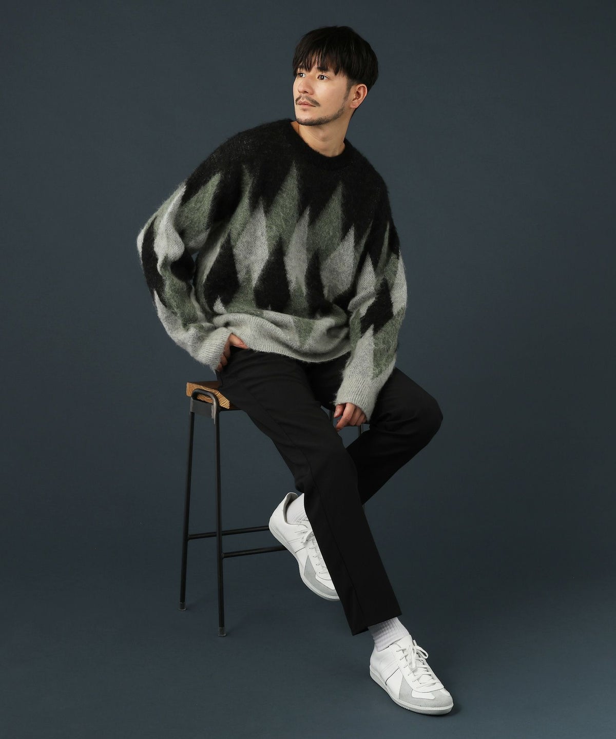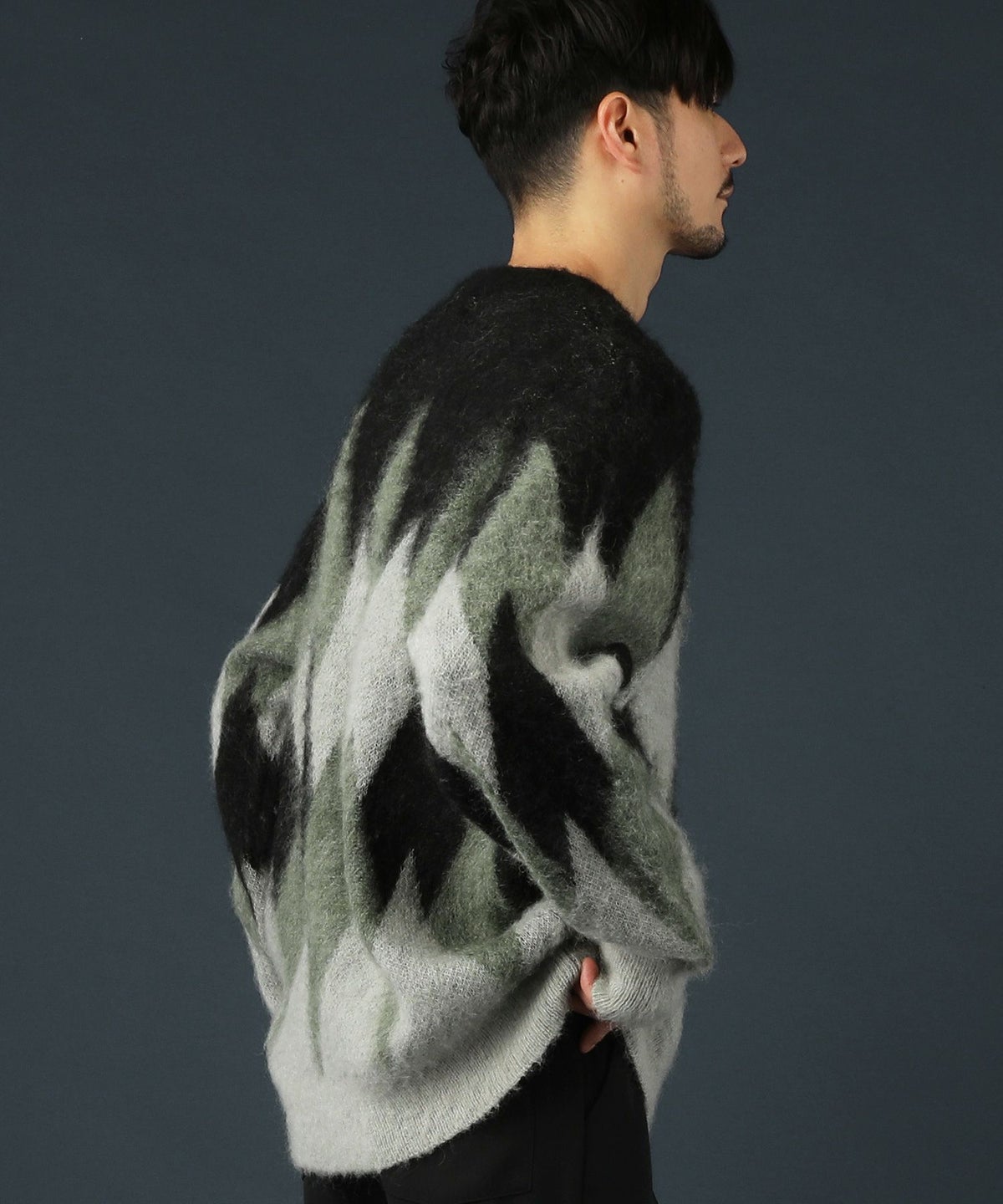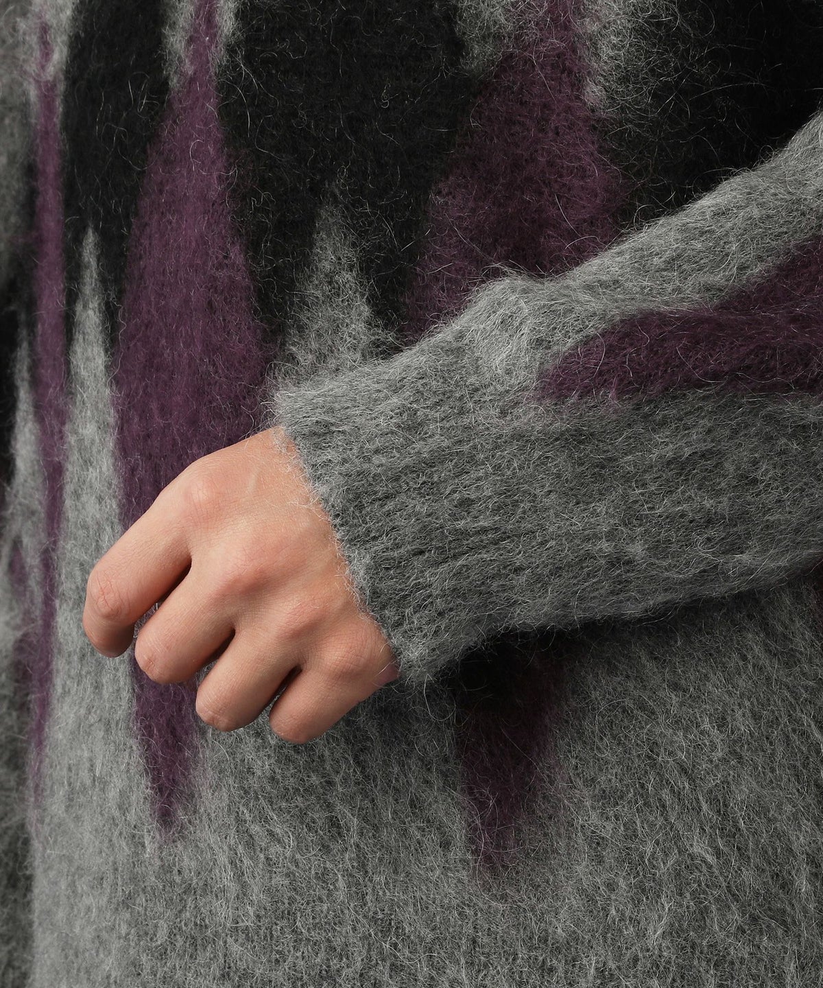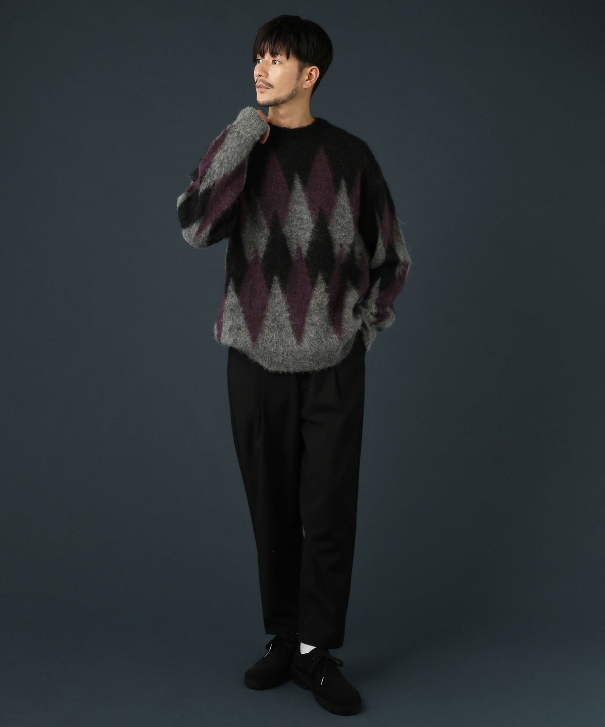 アーガイル柄シャギーモヘアニットー