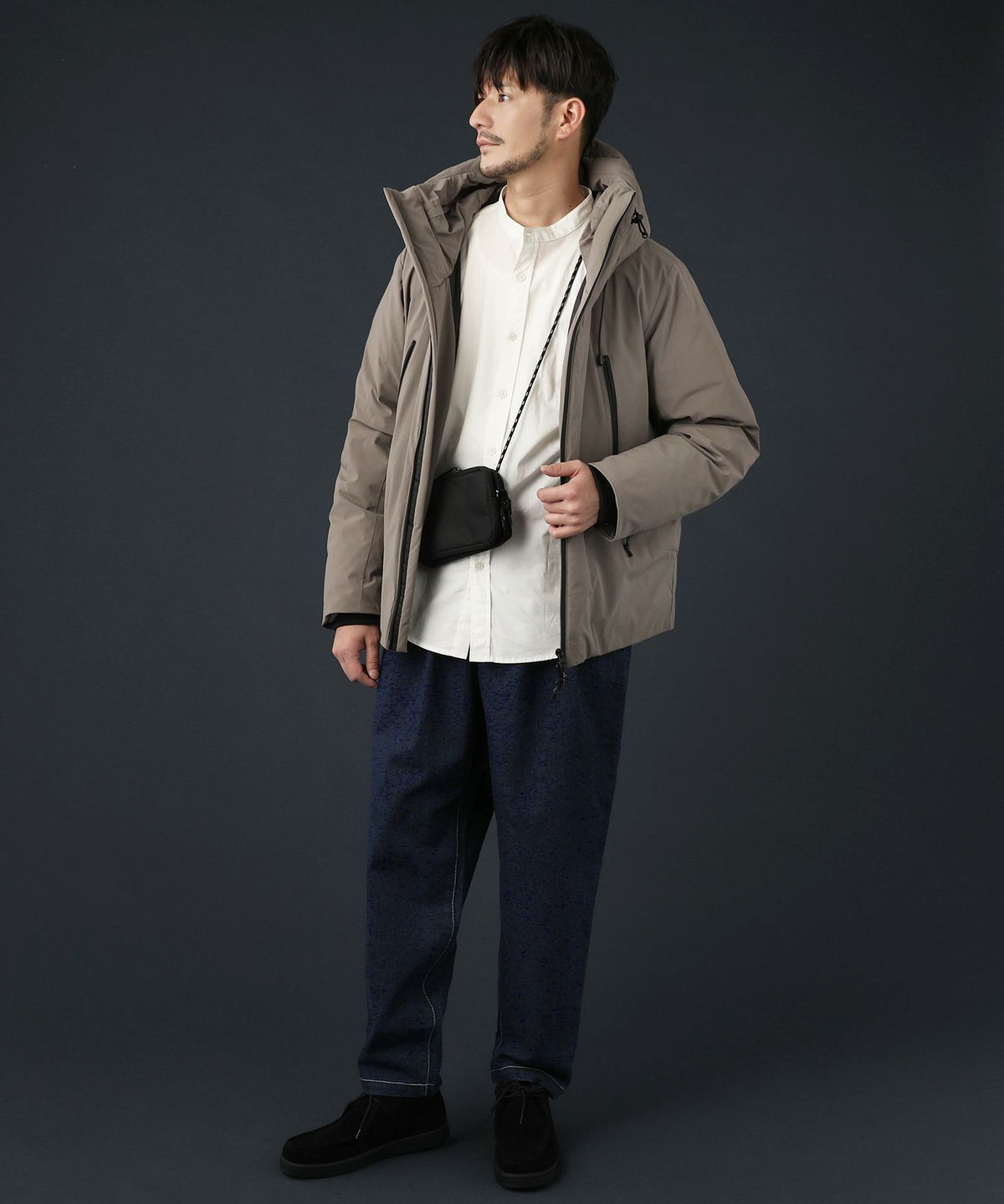 撥水ナイロンストレッチ2レイヤーシェルハイネックダウンジャケット