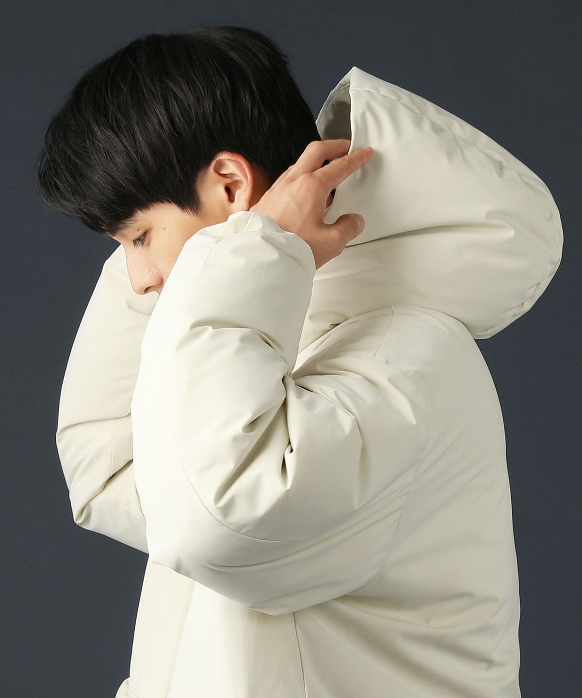 撥水ナイロンストレッチ2レイヤーシェルボリュームダウンジャケット