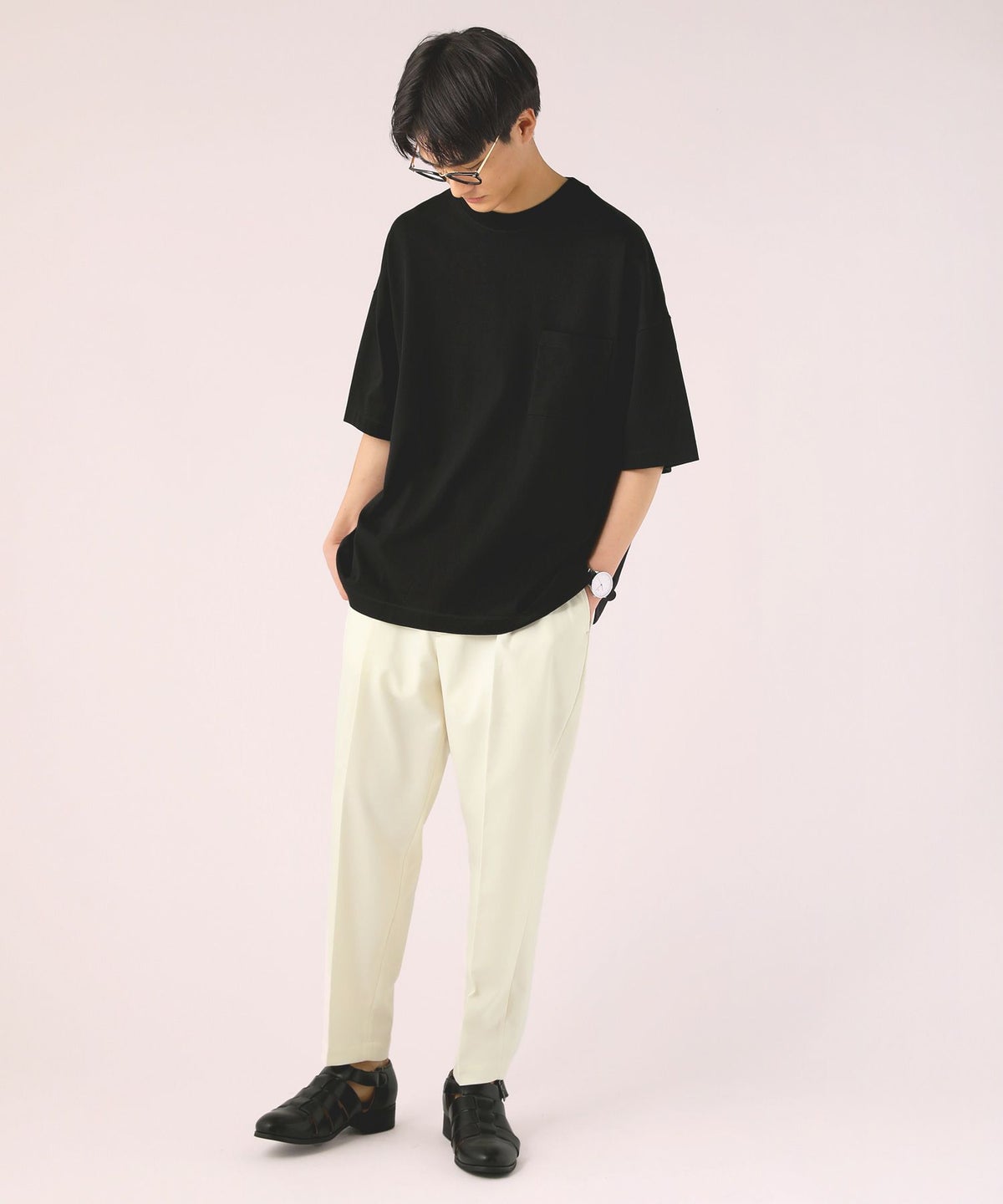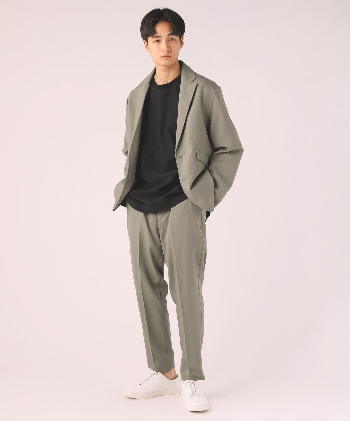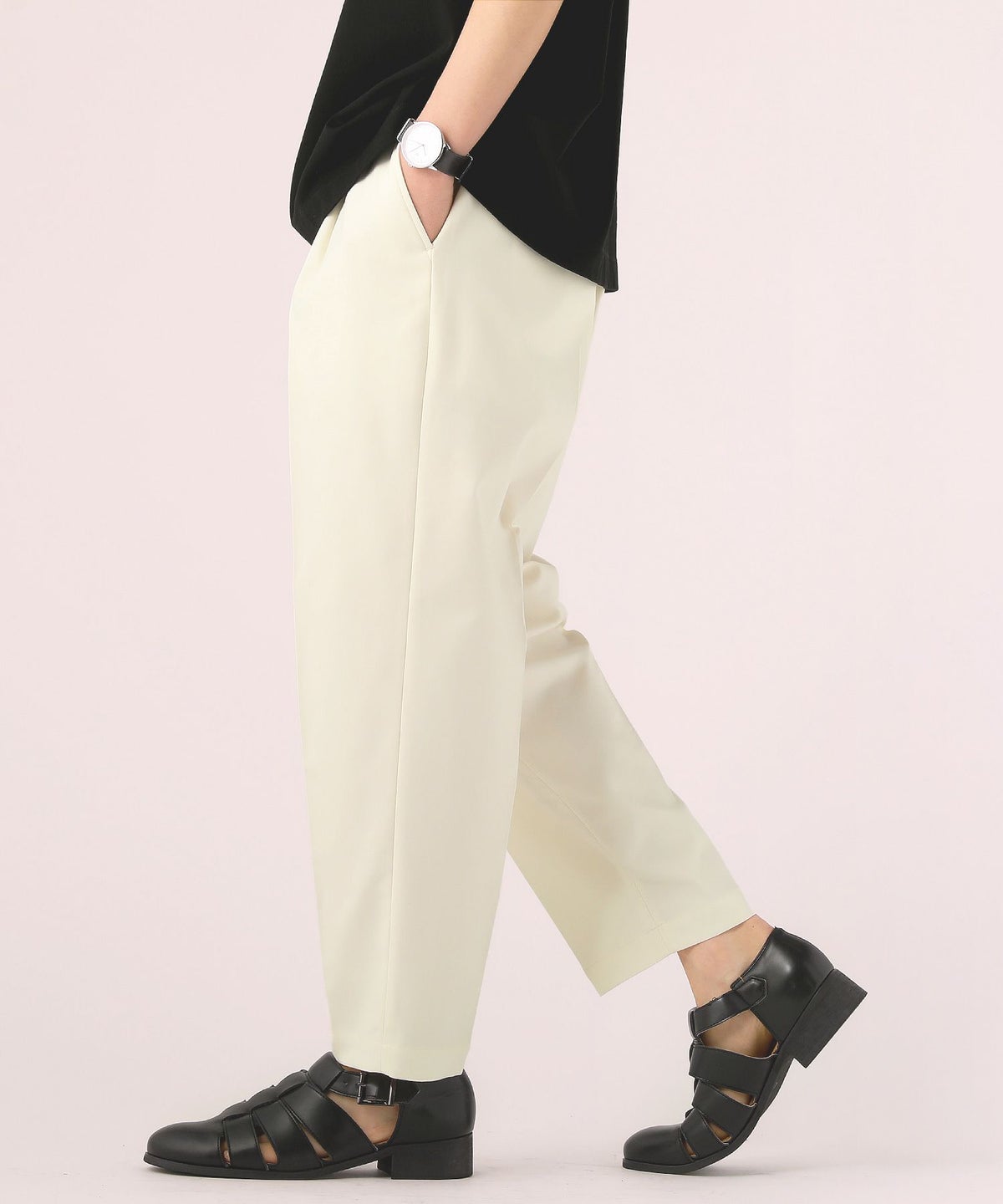 T/Rギャバジン2プリーツテーパードパンツ