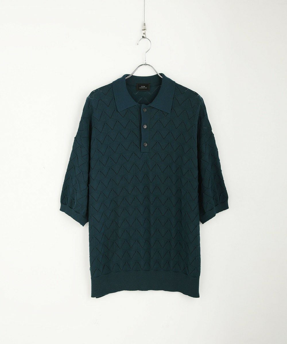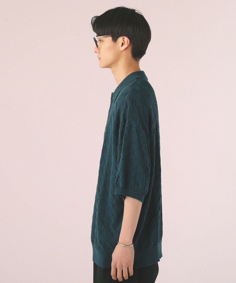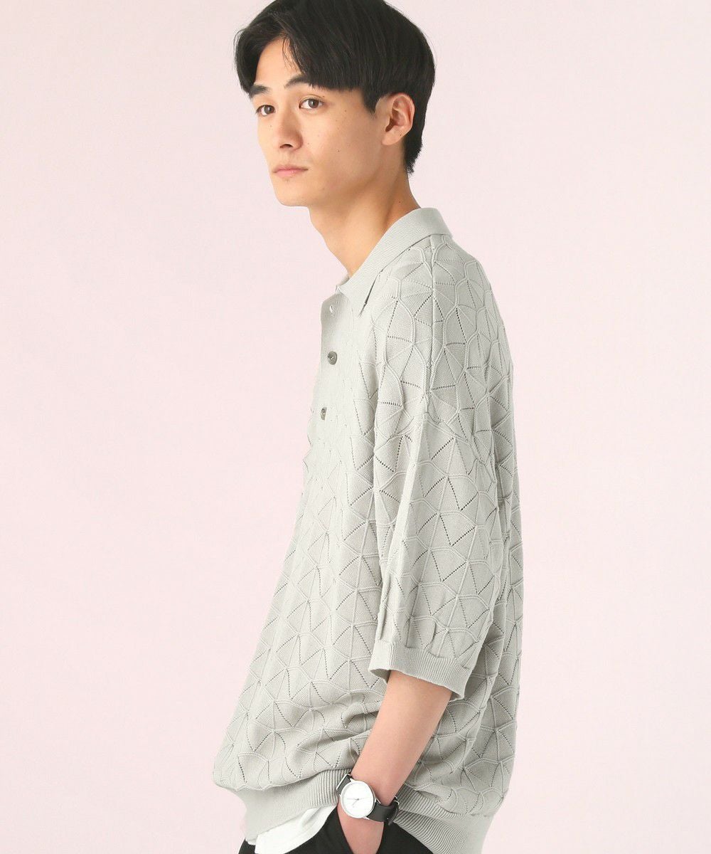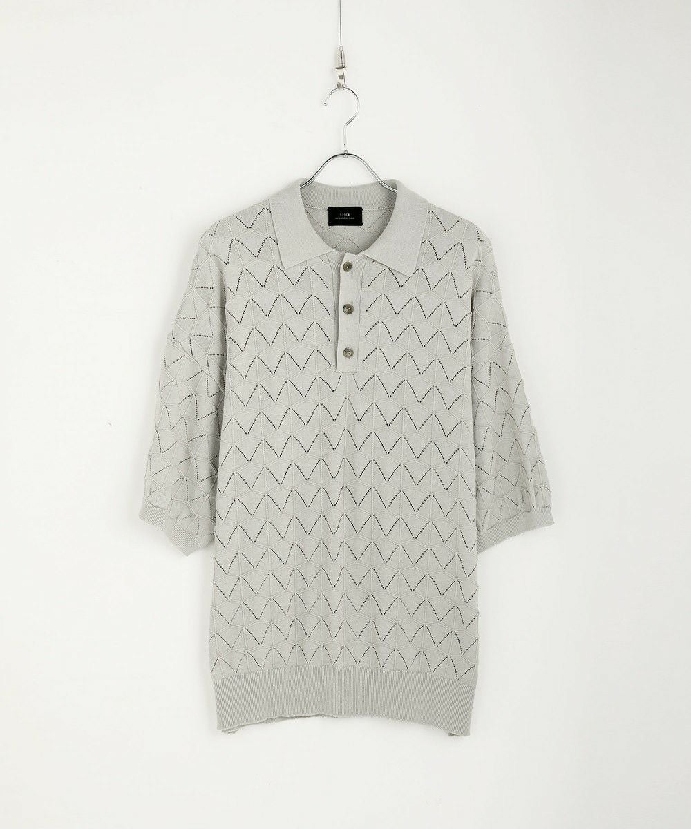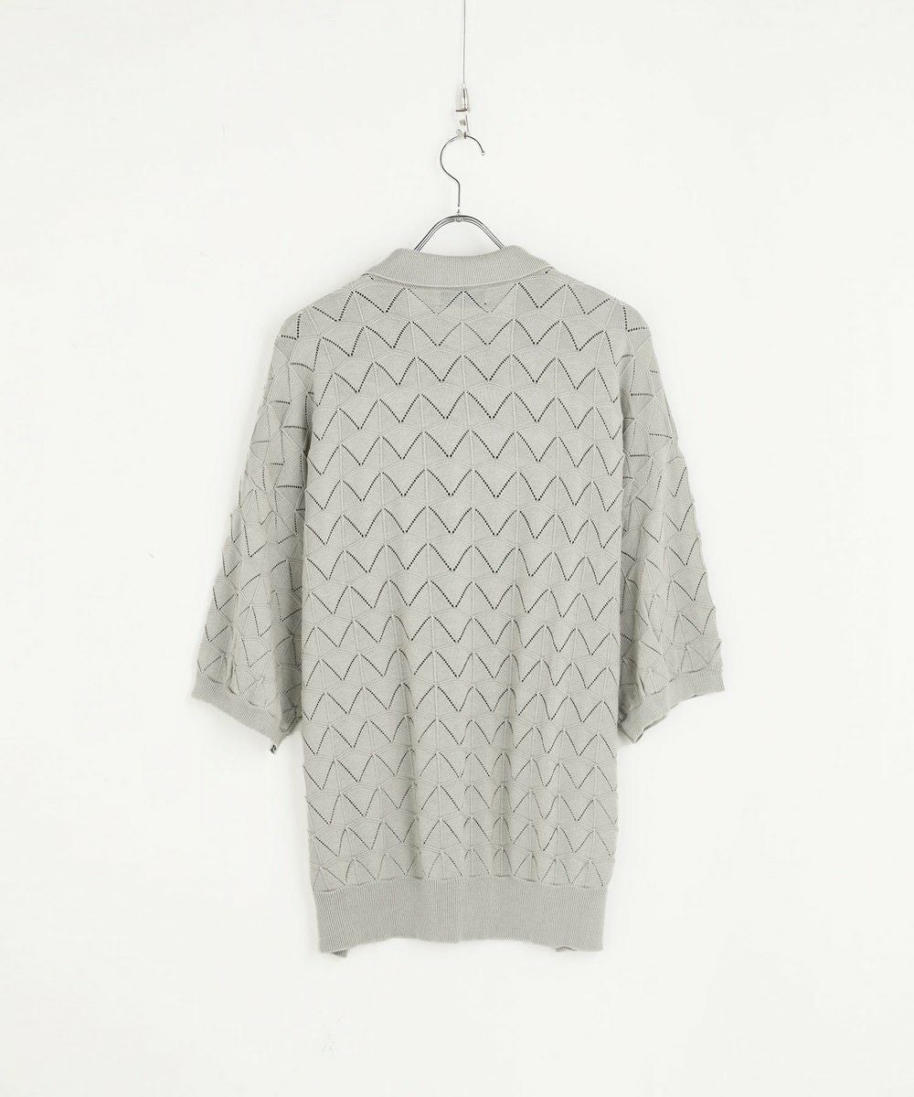 ハイツイスト ジオメトリックレースニットポロシャツ