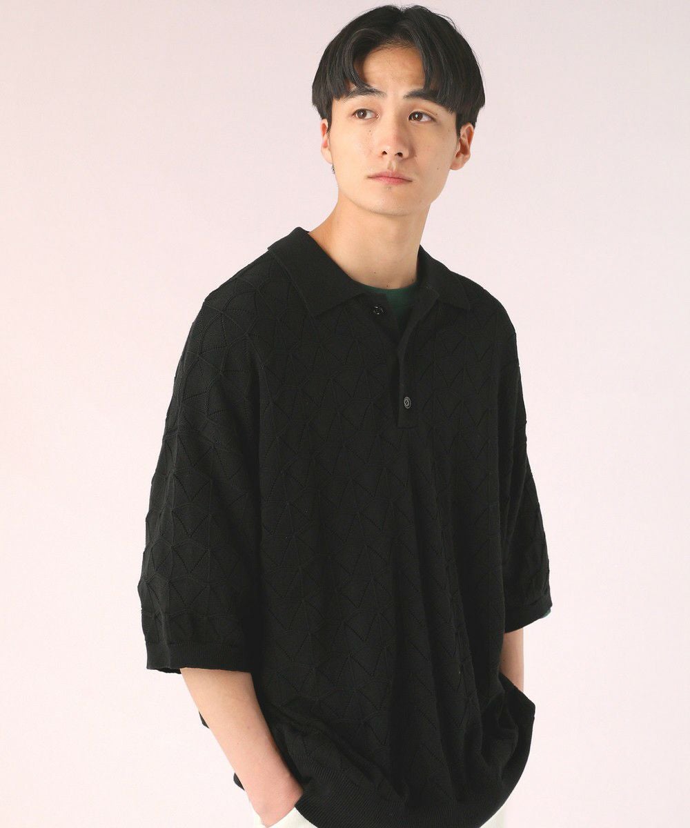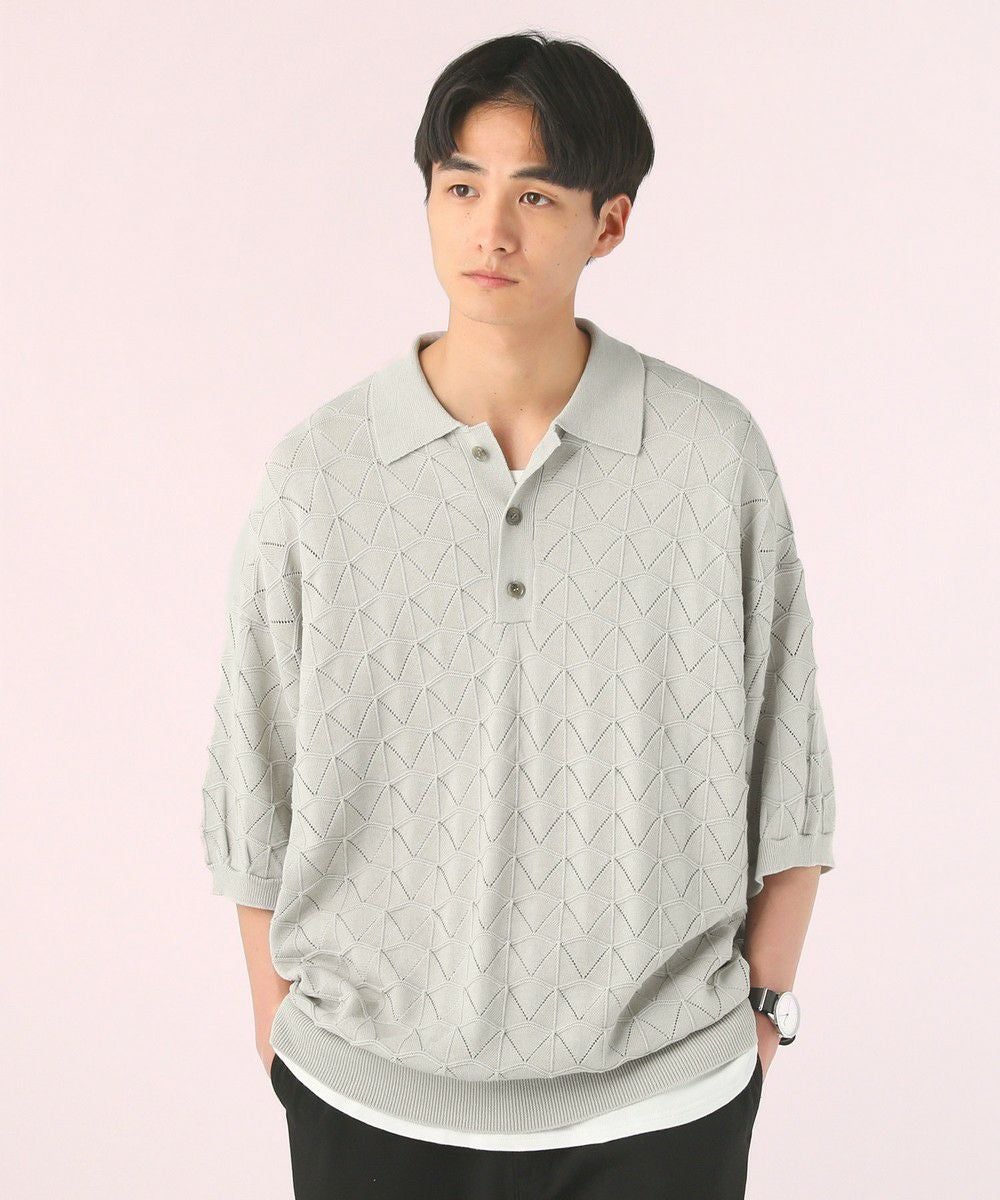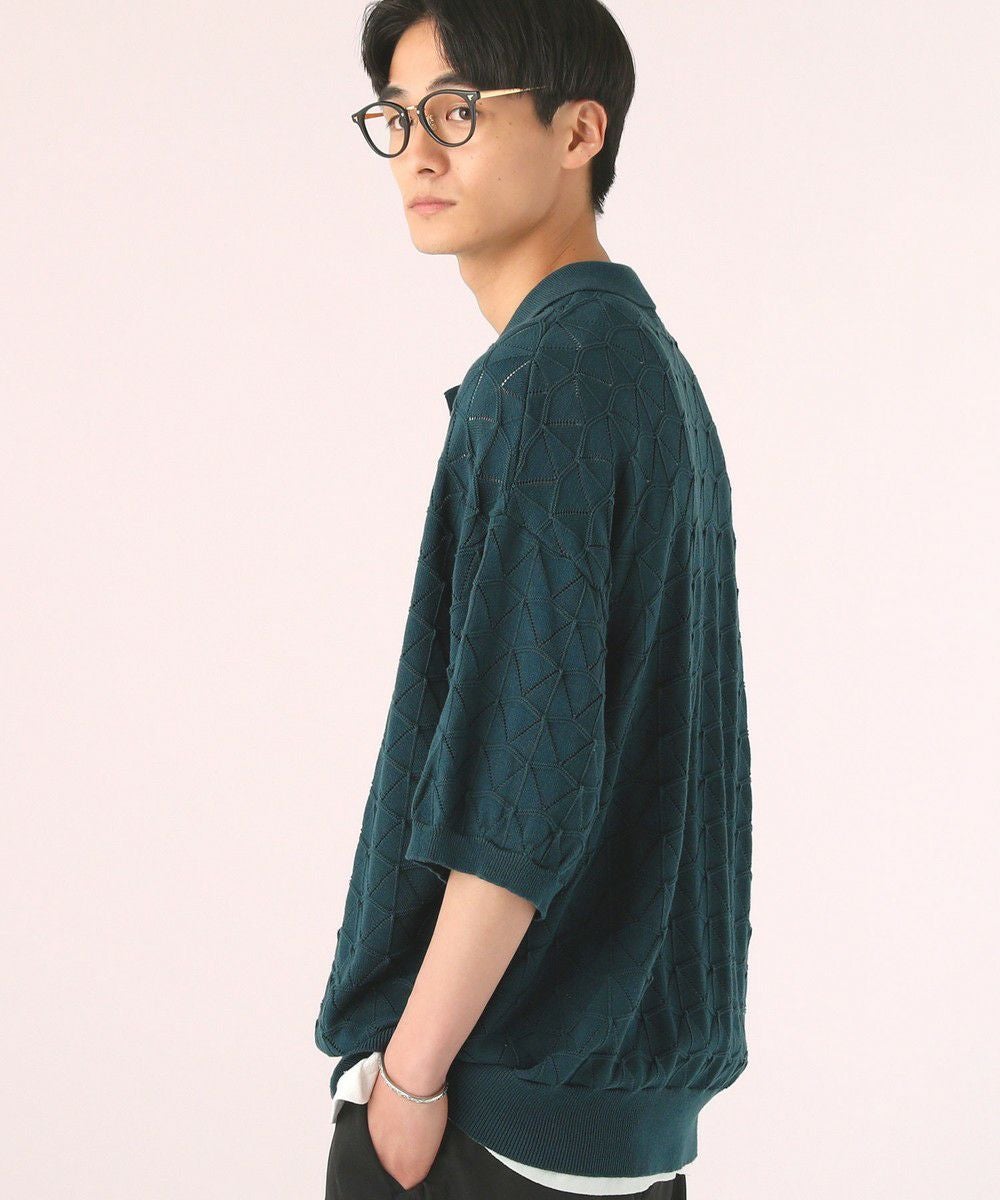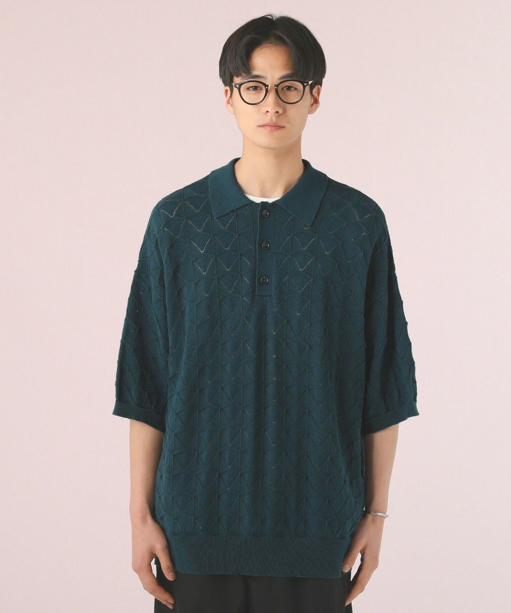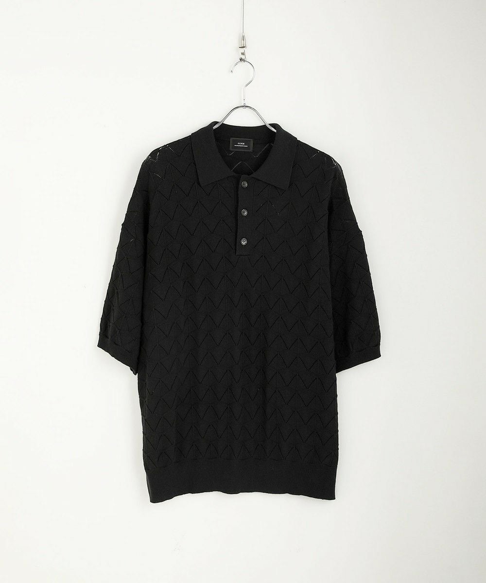 ハイツイスト ジオメトリックレースニットポロシャツ