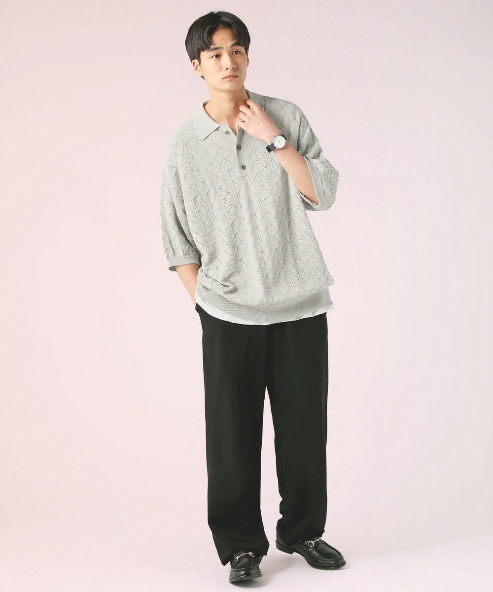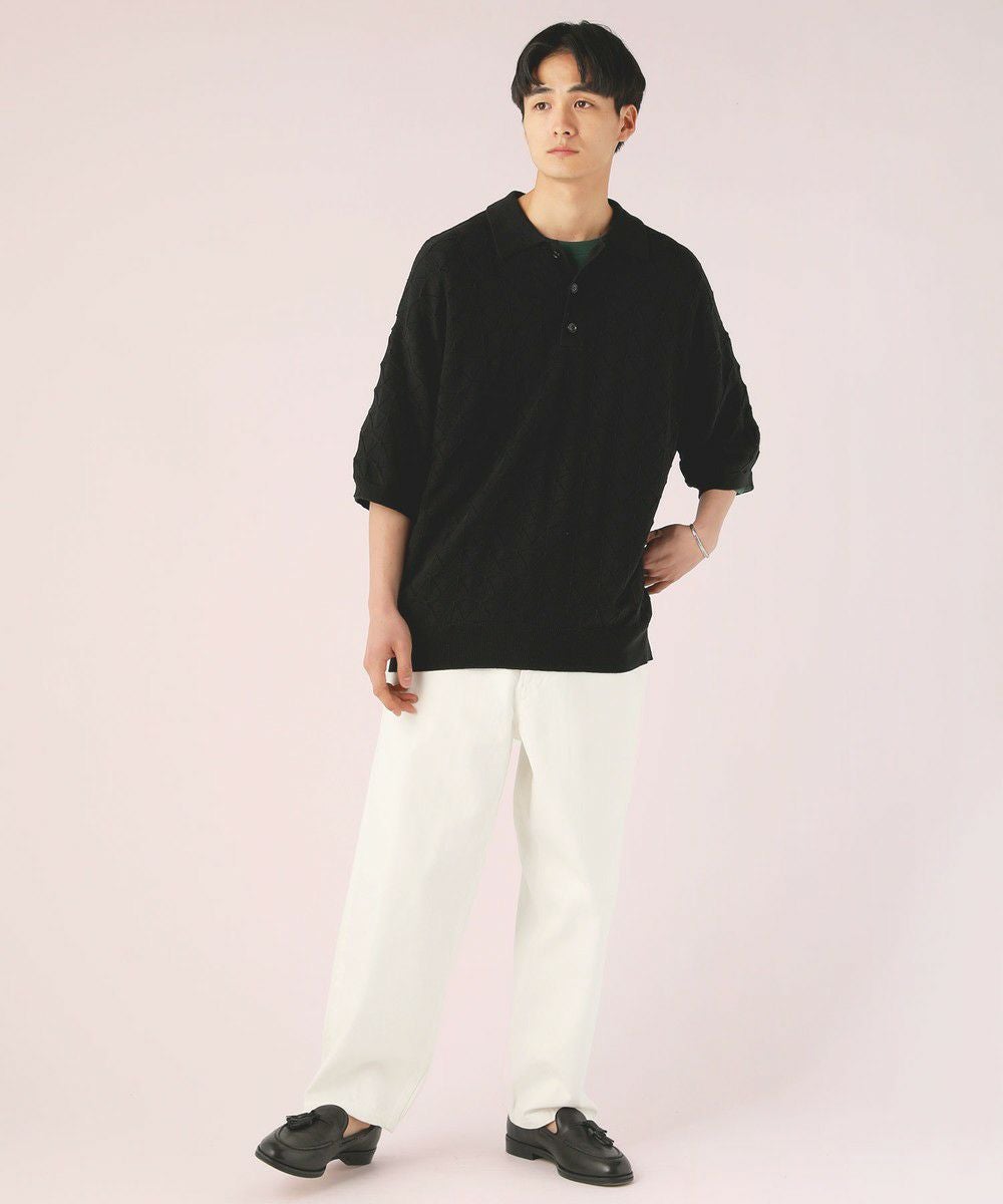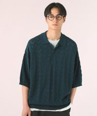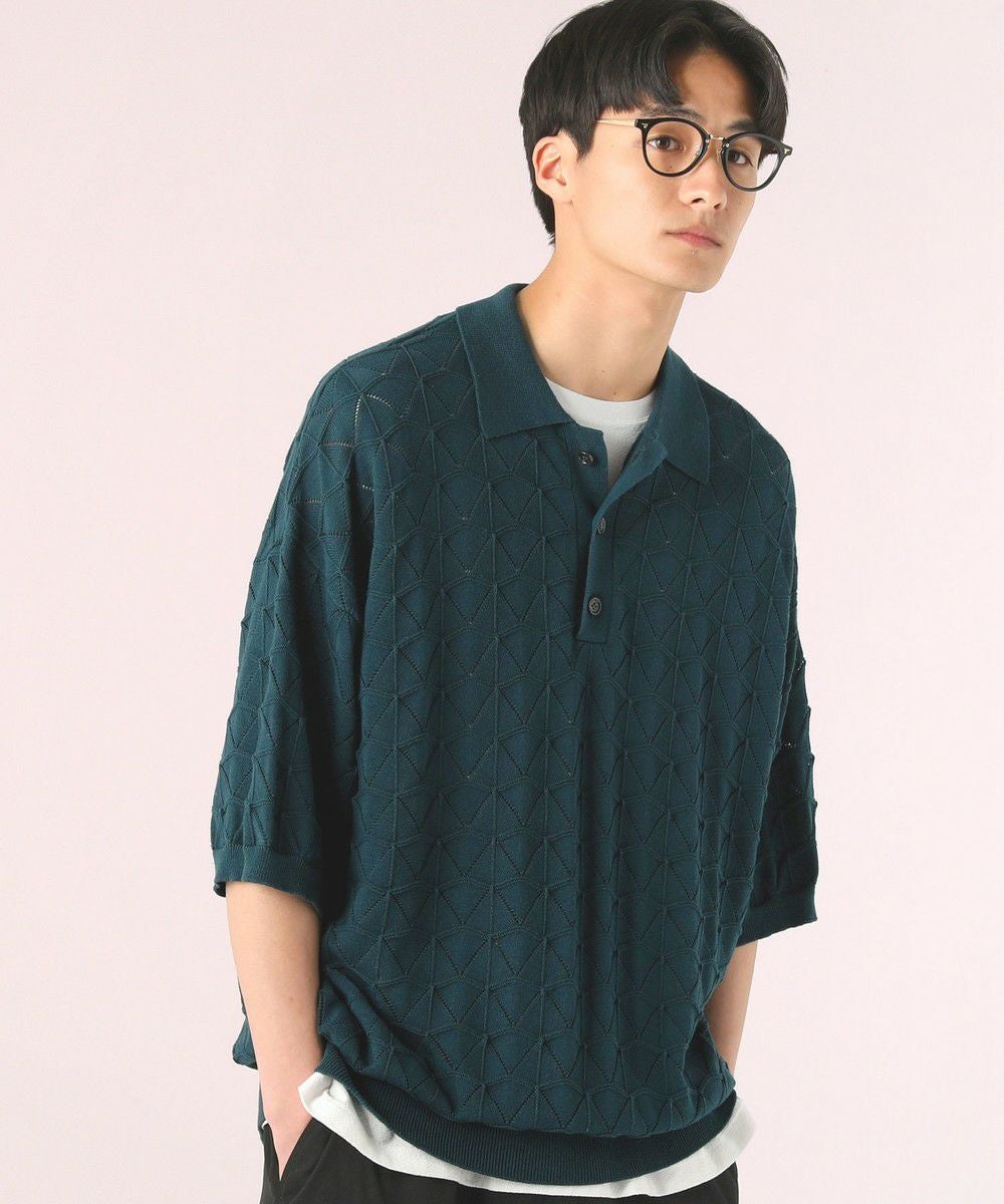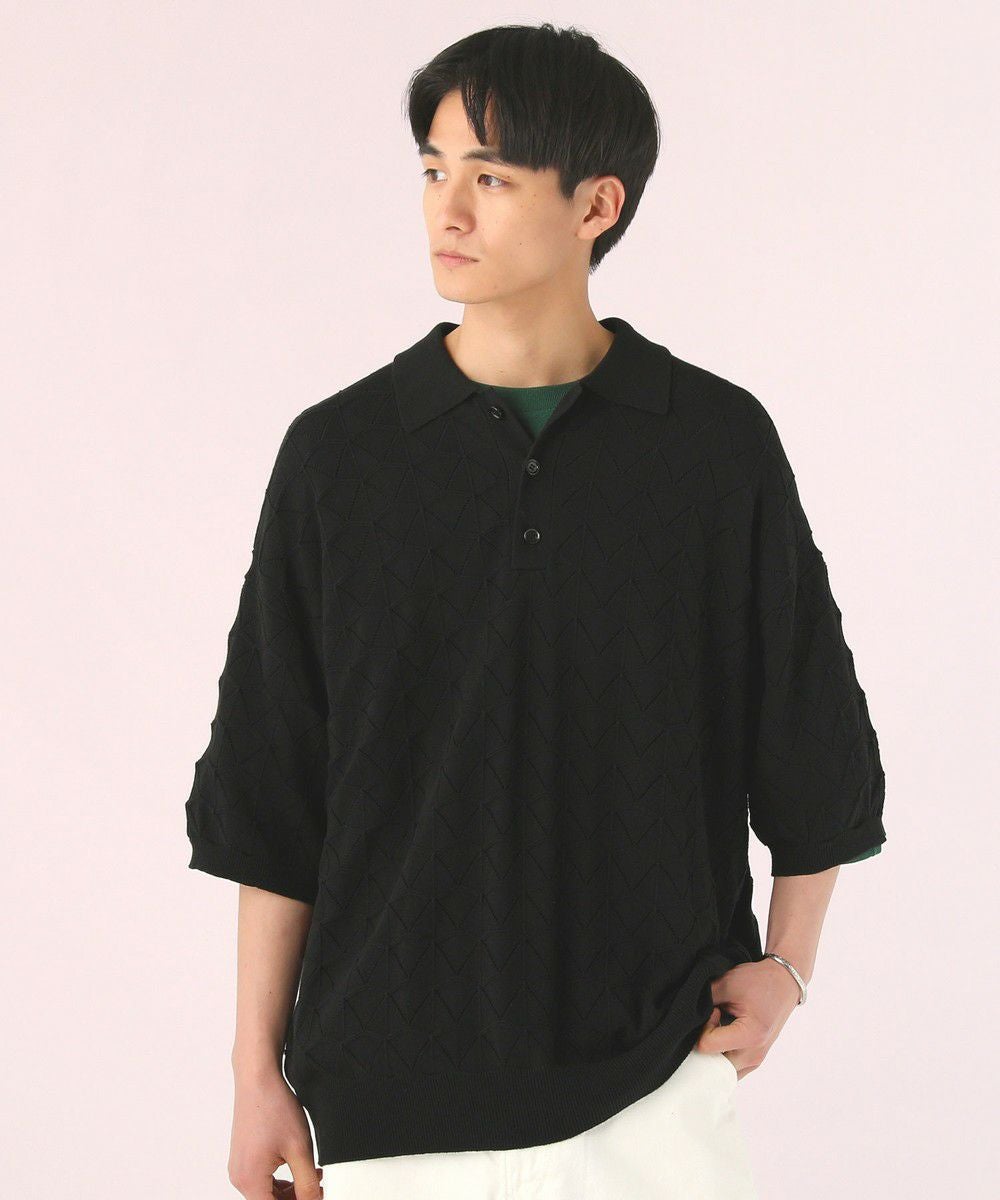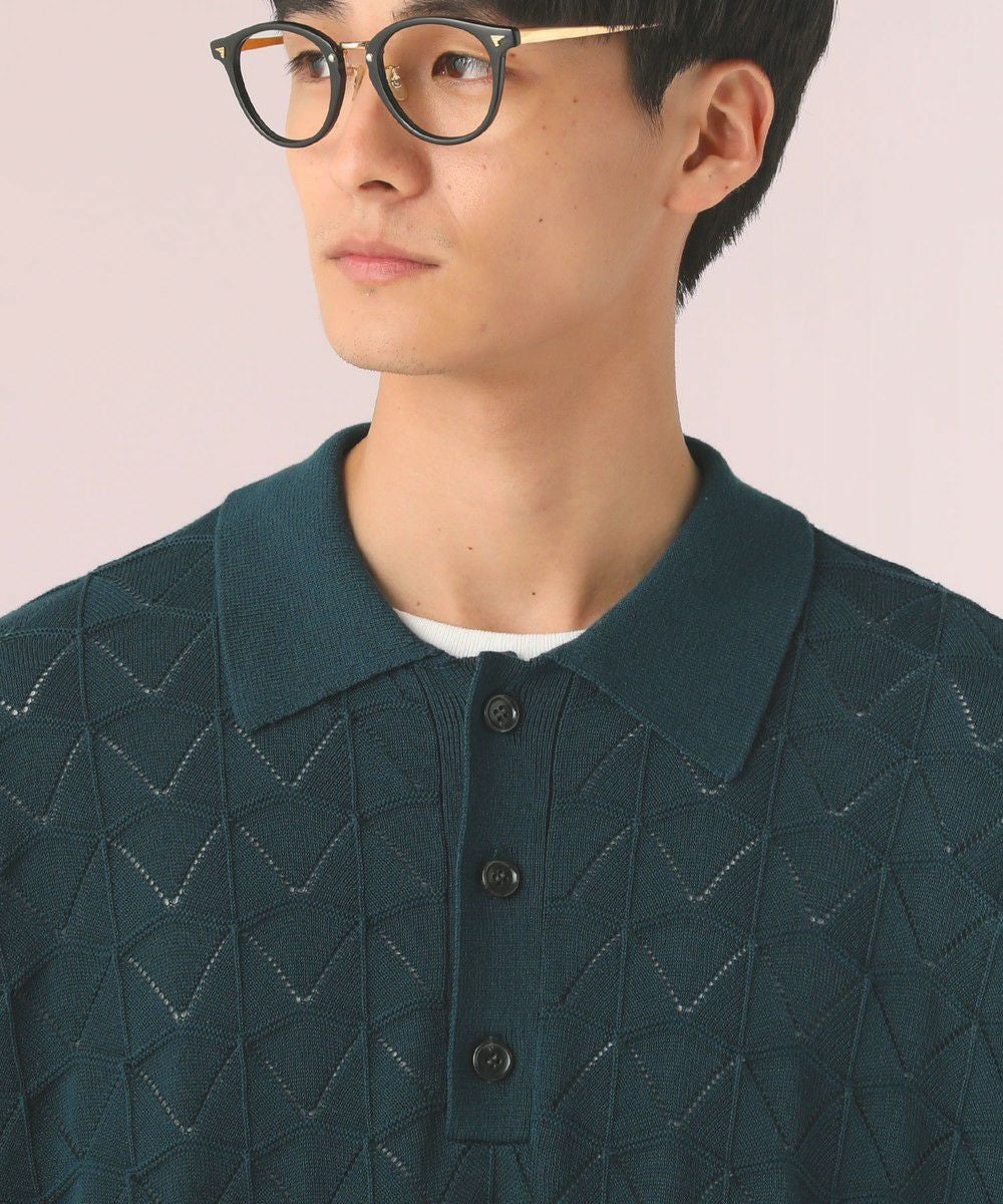 ハイツイスト ジオメトリックレースニットポロシャツ
