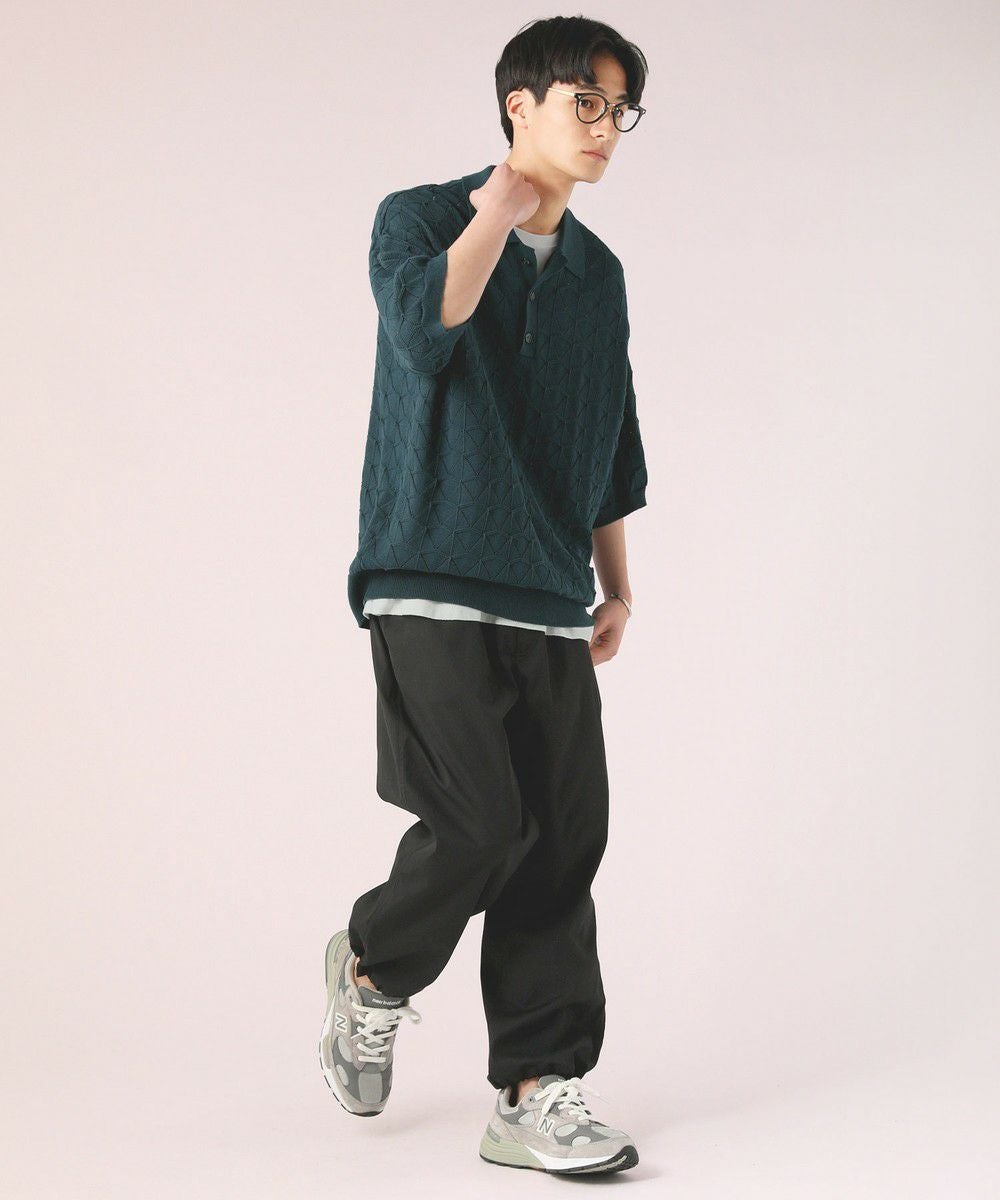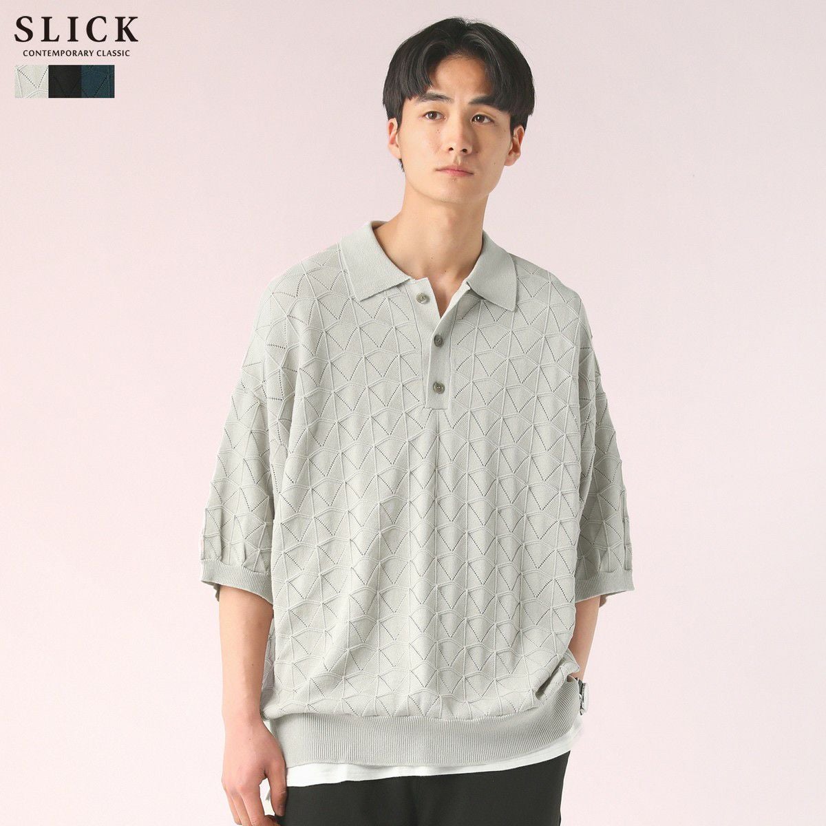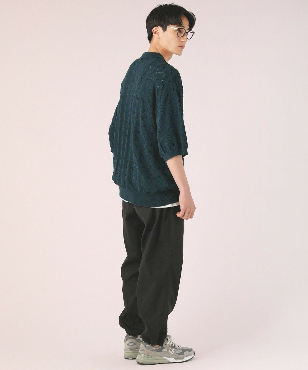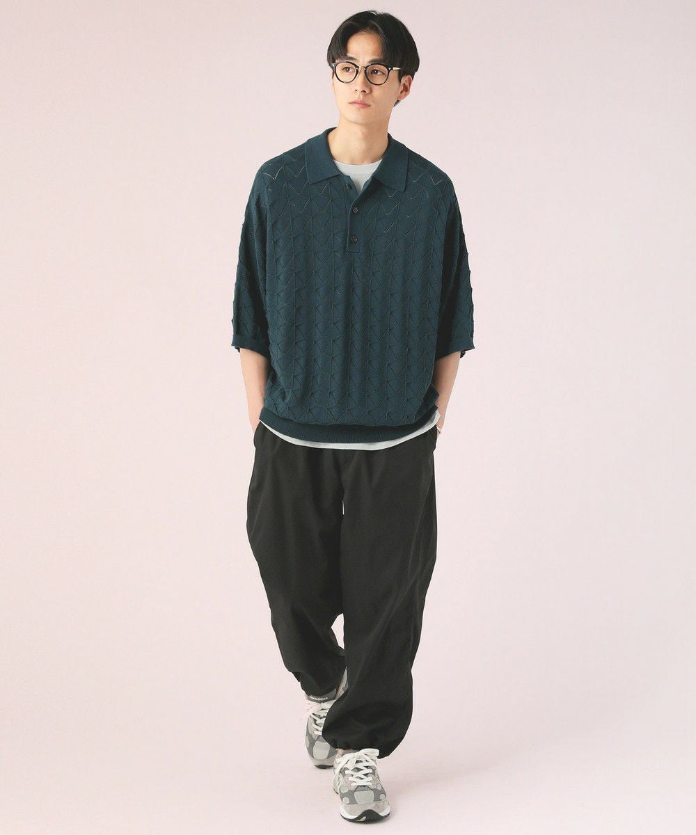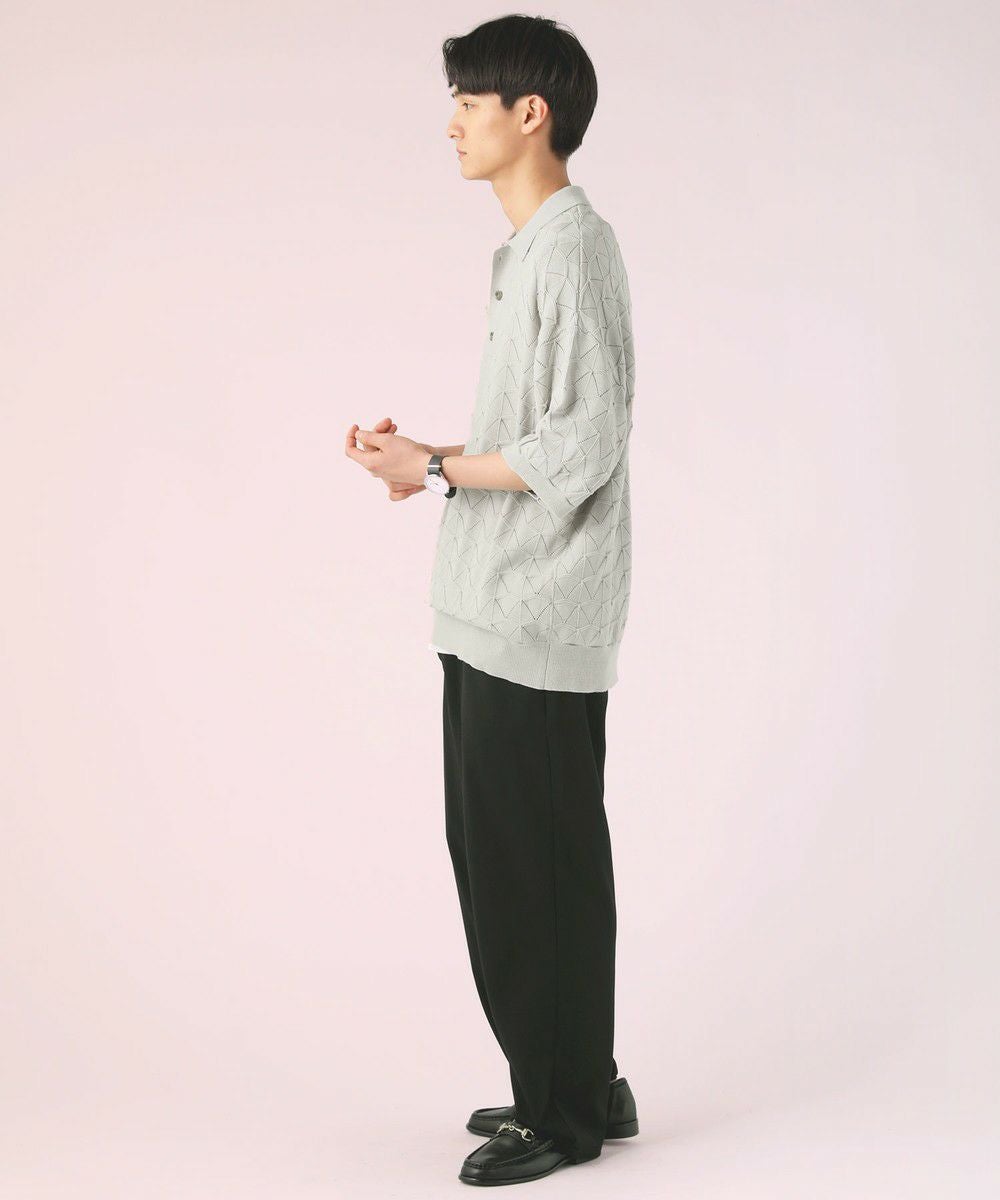 ハイツイスト ジオメトリックレースニットポロシャツ