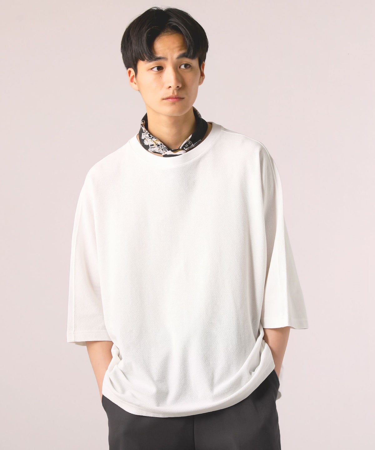 ジャガードリブトリムTシャツ