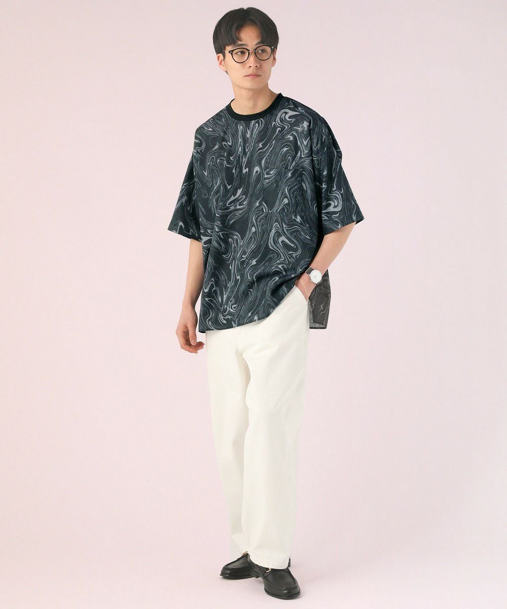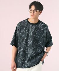 マーブルエフェクトプリント半袖Tシャツ