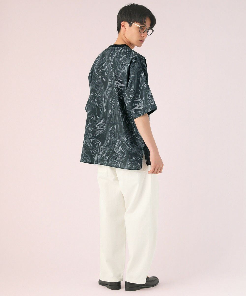 トロピカルドルマンスリーブバンドカラー半袖シャツ