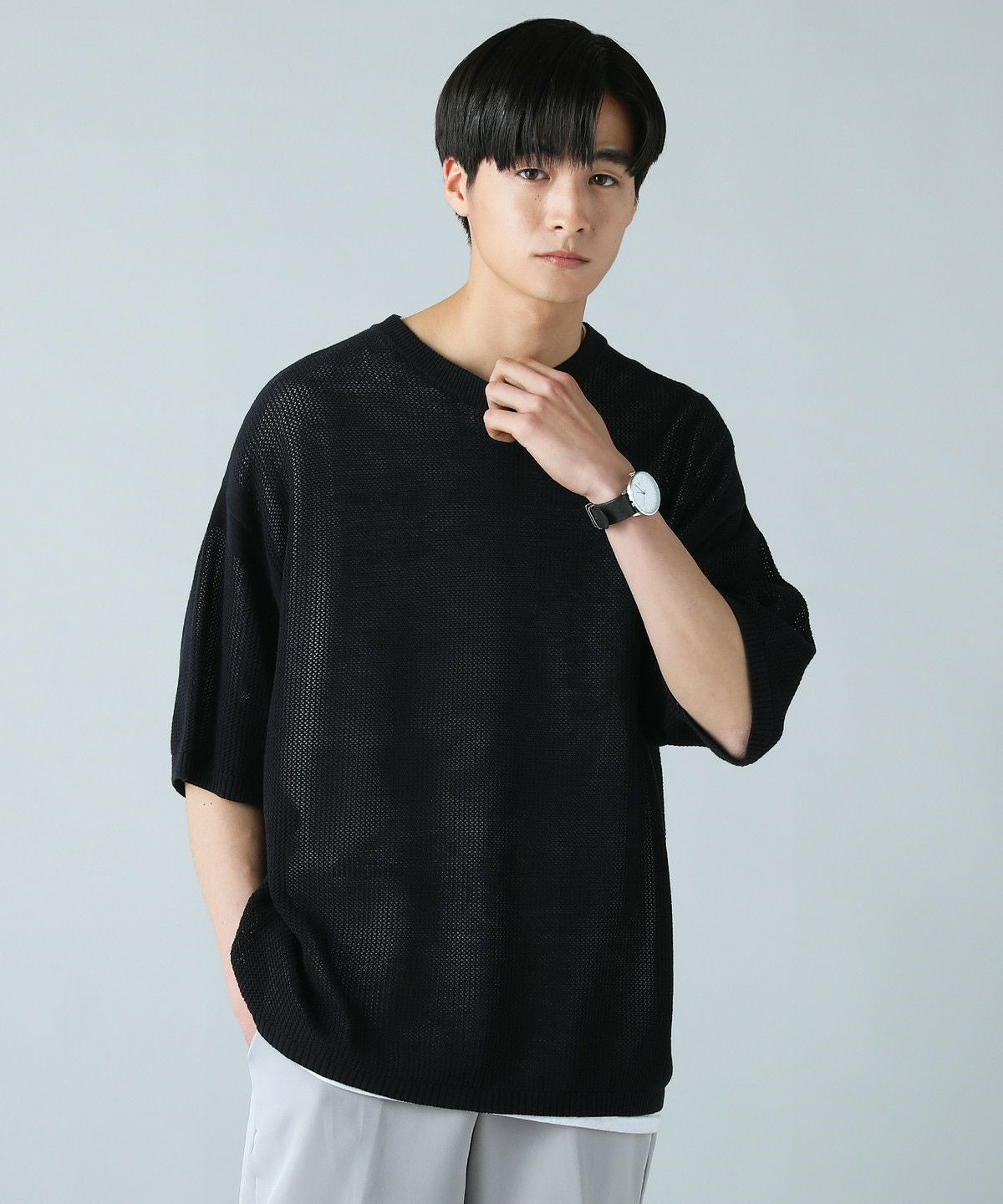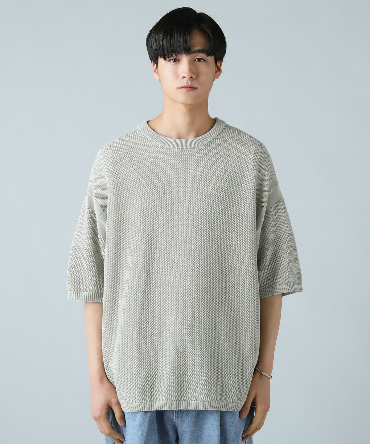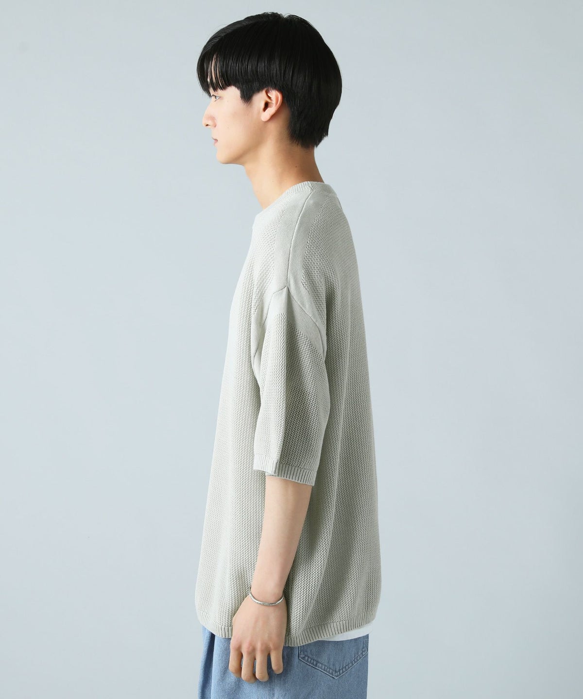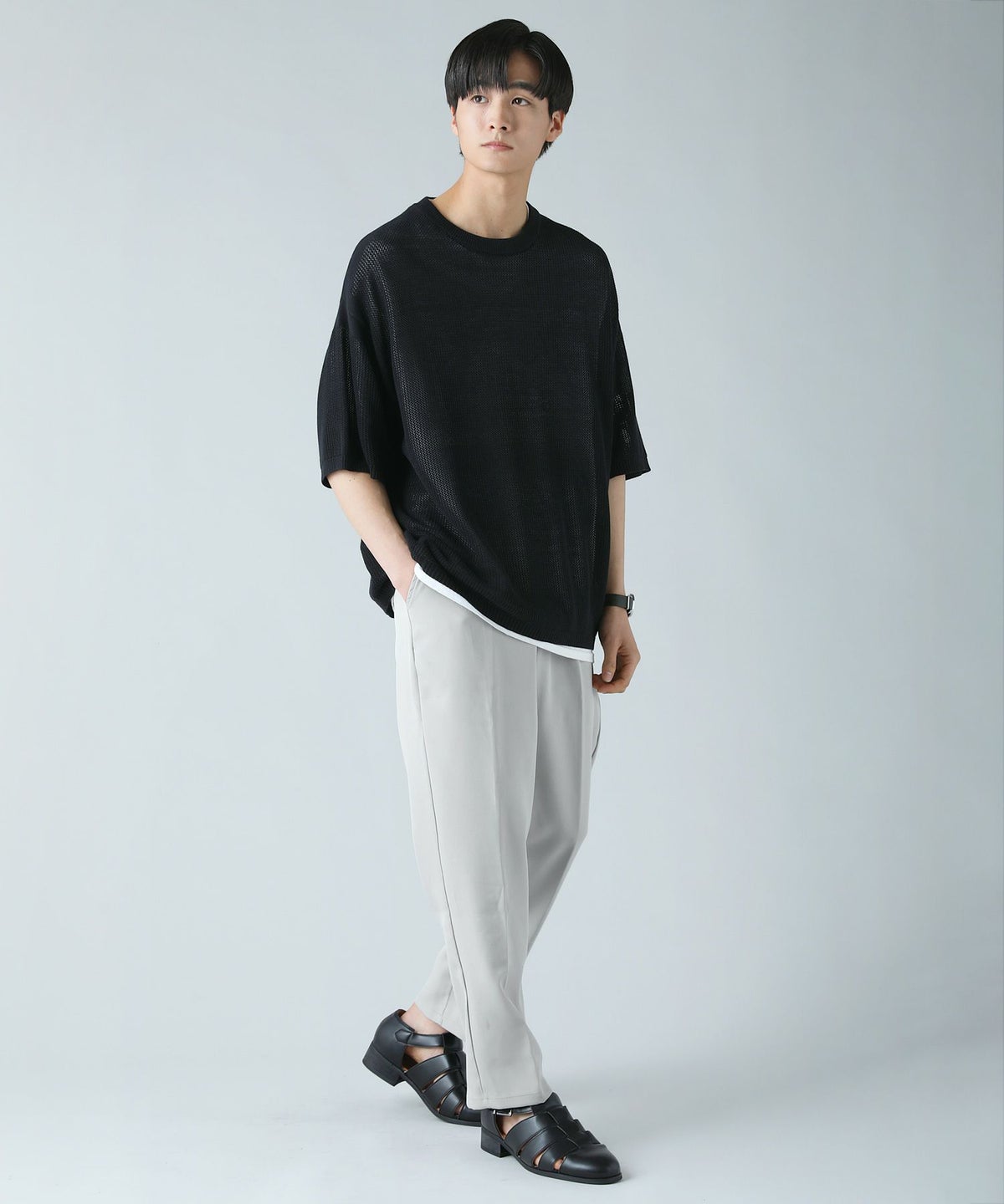 ハイツイストメッシュ半袖ニットTシャツ