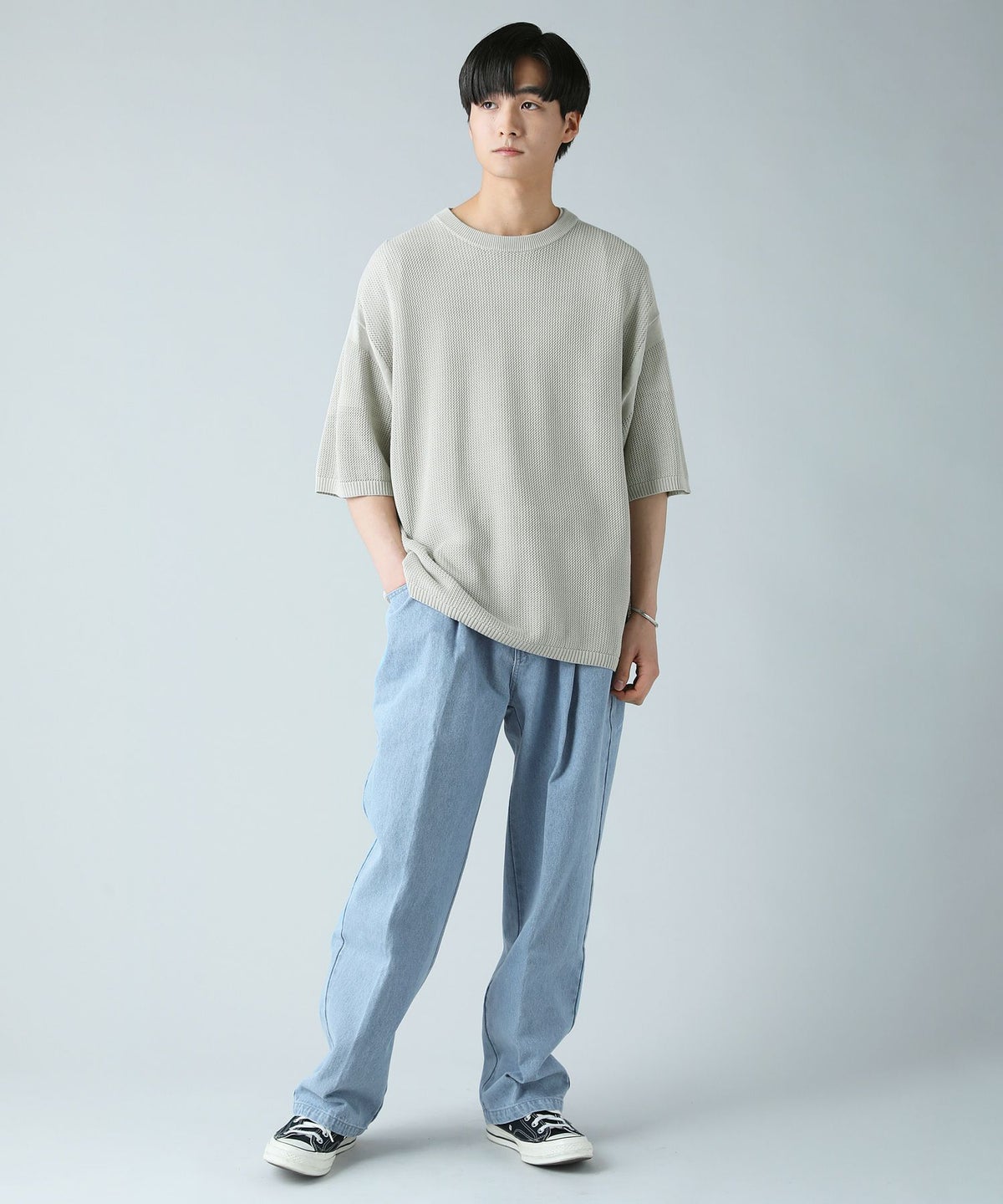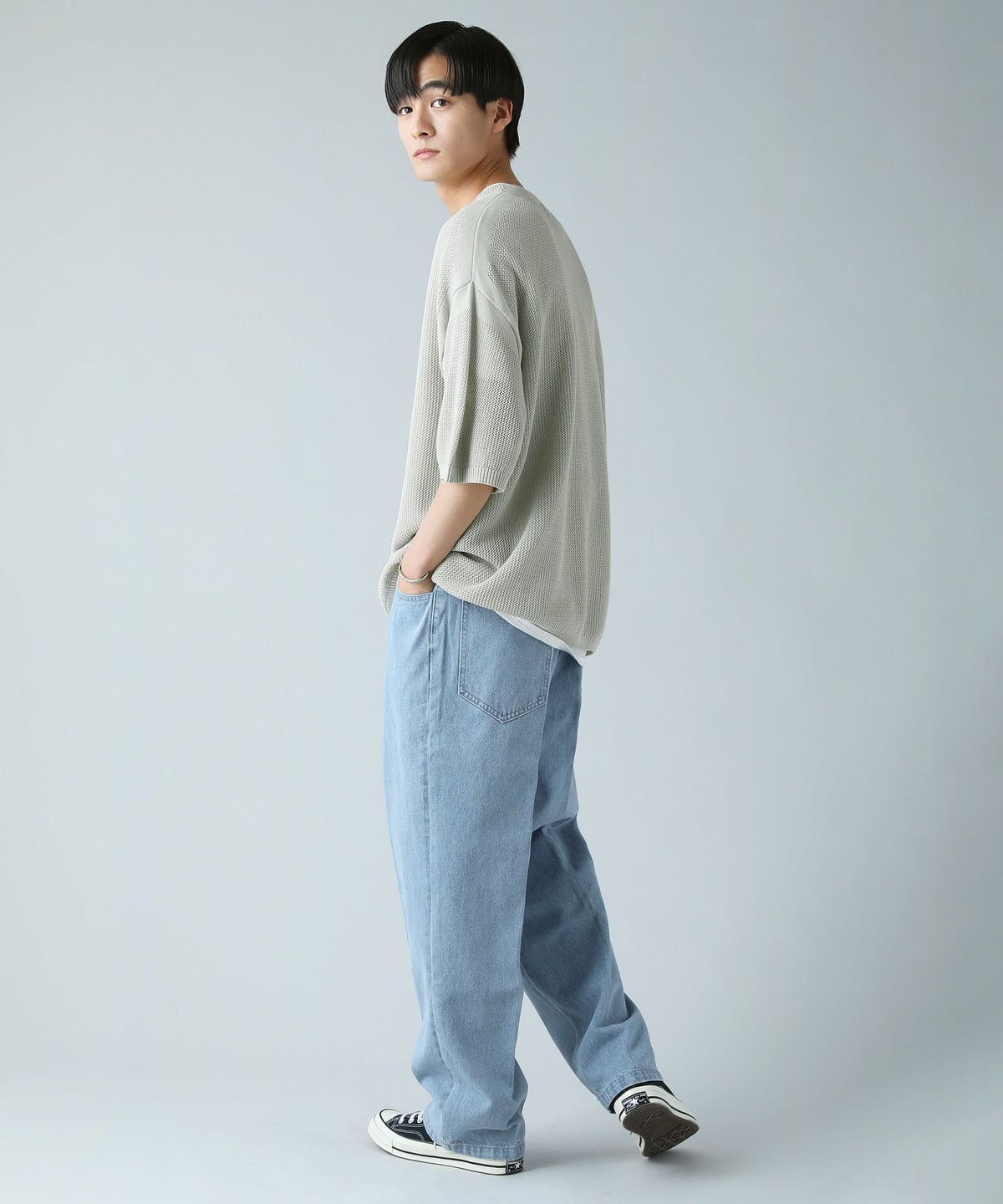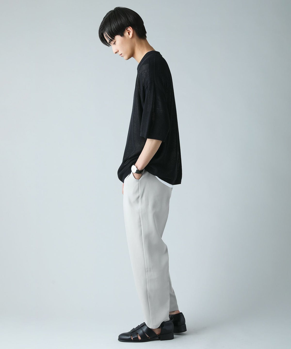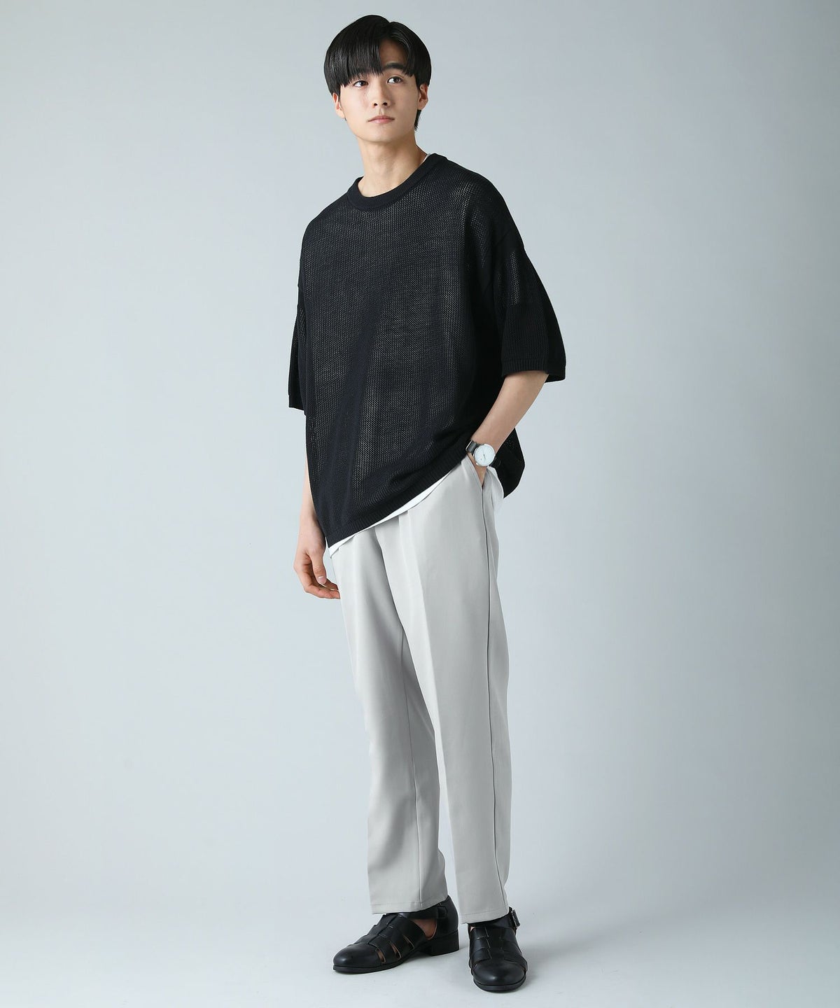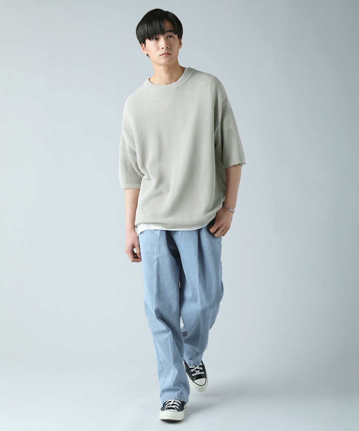 ハイツイストメッシュ半袖ニットTシャツ