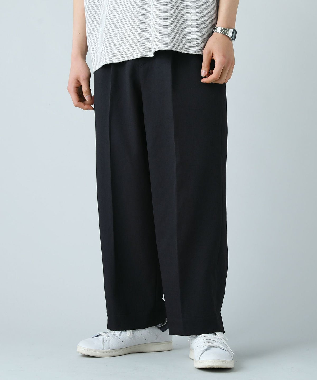 リフラクスストレッチツイル1タックテーパードスラックス