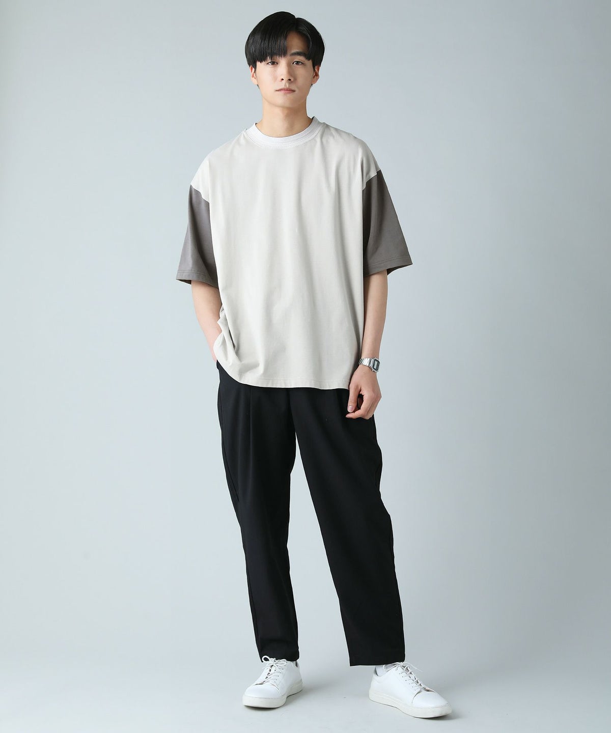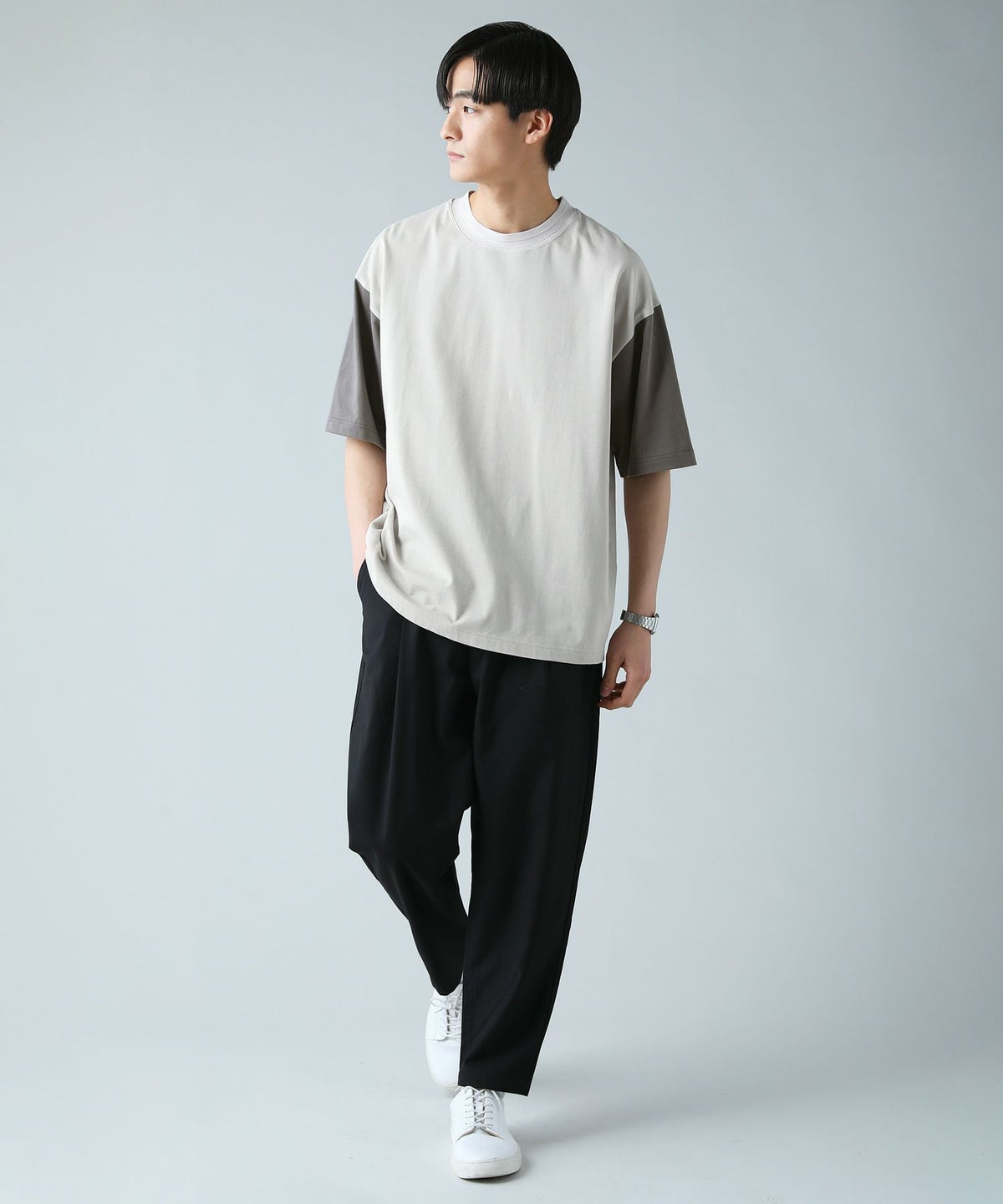 コンビネーションドロップショルダー半袖シャツ