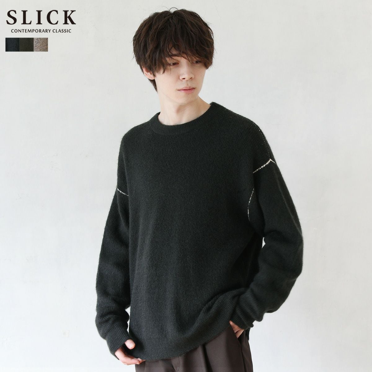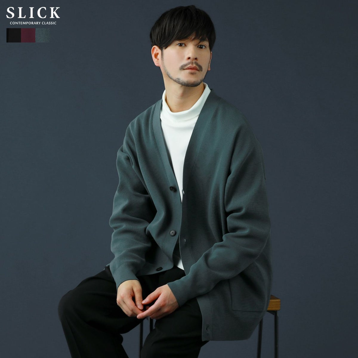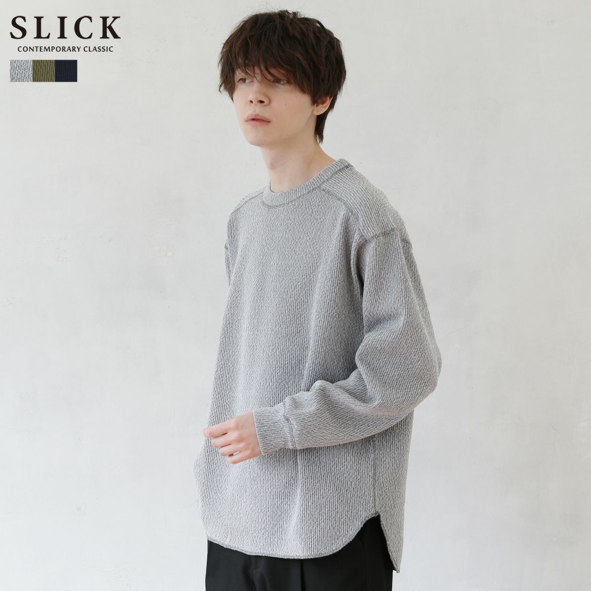 シンプルで洗練された中に確かなセンスを感じさせる高いデザイン性で、雰囲気のある大人の着こなしを作る「SLICK(スリック)」。テイストやスタイルに縛られることなく、ライフスタイルの中から出てくる発想と技術をバランス良く組み合わせることで新しい価値を生み出し、より洗練されたリアルクローズ「実質的な価値のある現実的な服」を提案します。