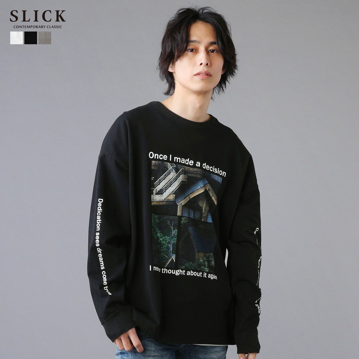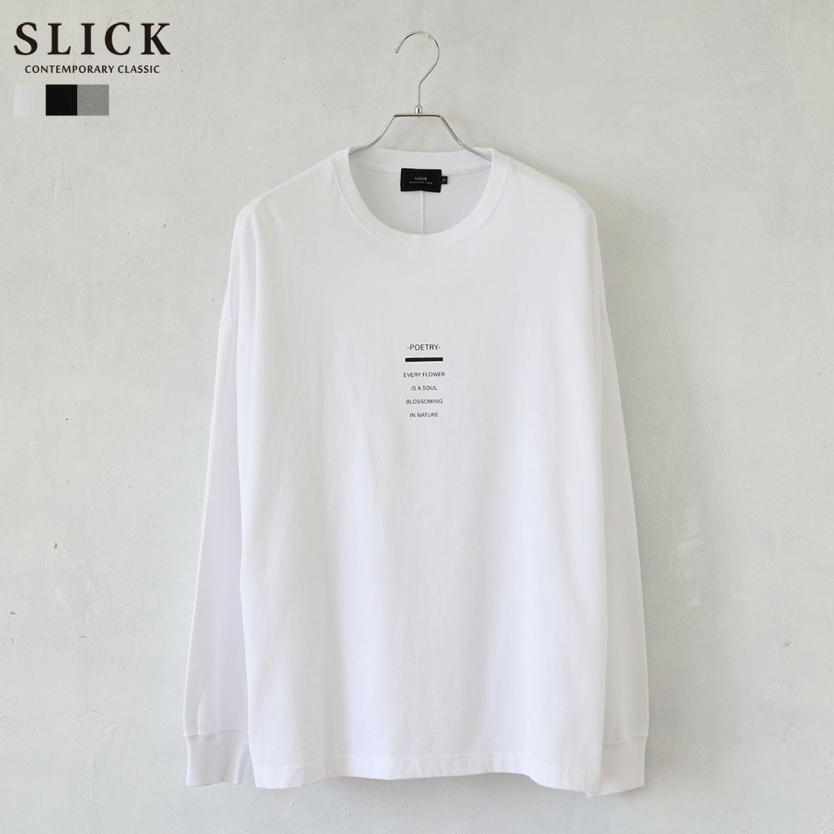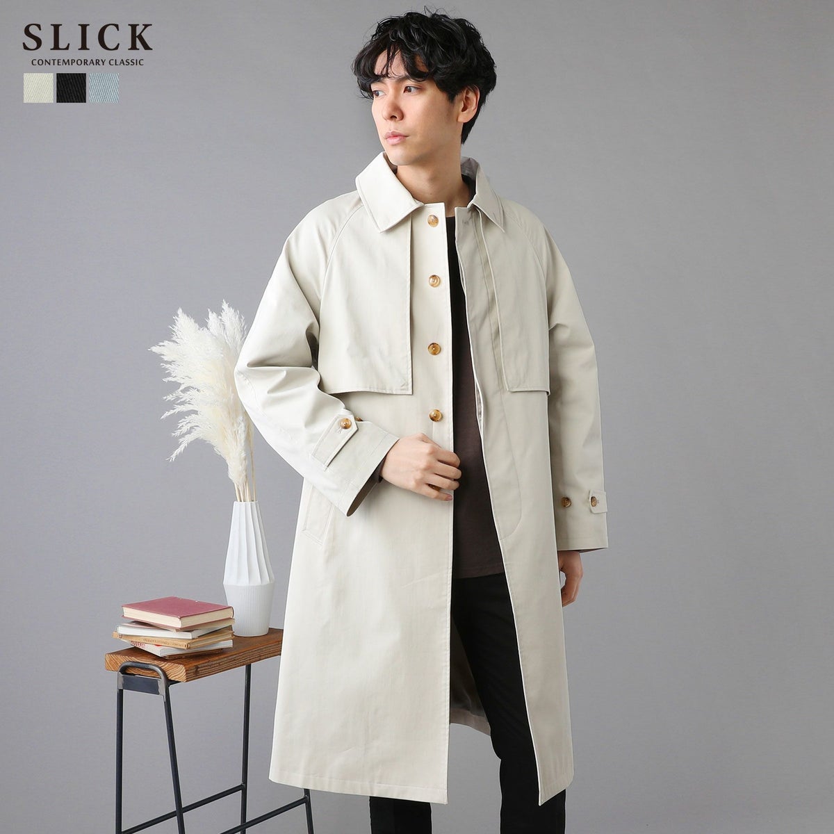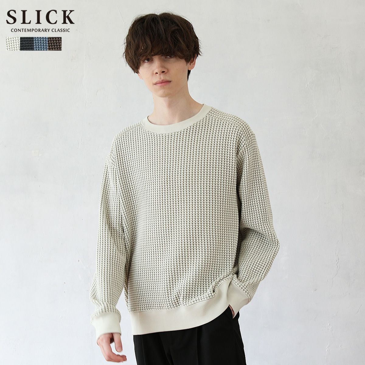 シンプルで洗練された中に確かなセンスを感じさせる高いデザイン性で、雰囲気のある大人の着こなしを作る「SLICK(スリック)」。テイストやスタイルに縛られることなく、ライフスタイルの中から出てくる発想と技術をバランス良く組み合わせることで新しい価値を生み出し、より洗練されたリアルクローズ「実質的な価値のある現実的な服」を提案します。