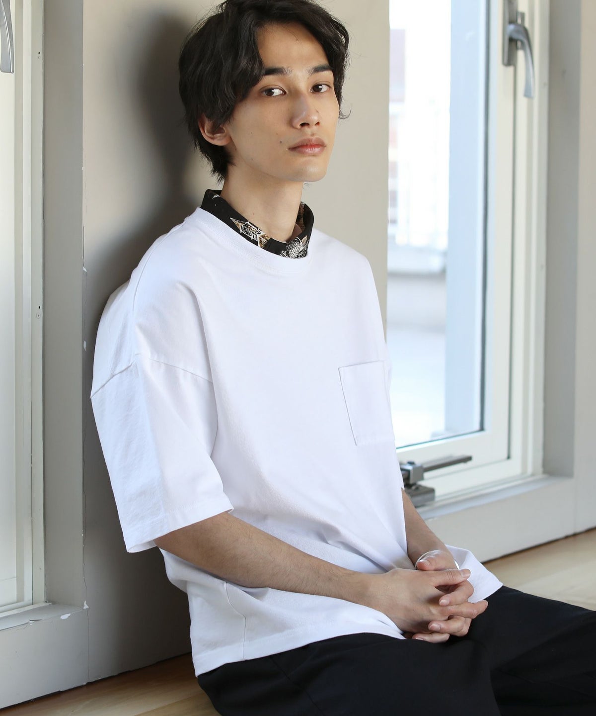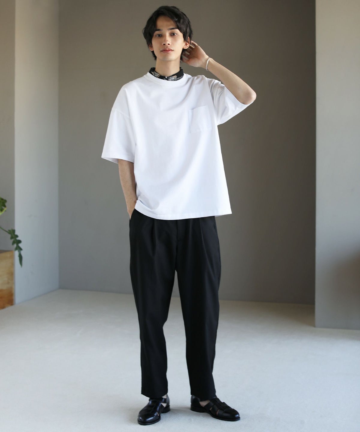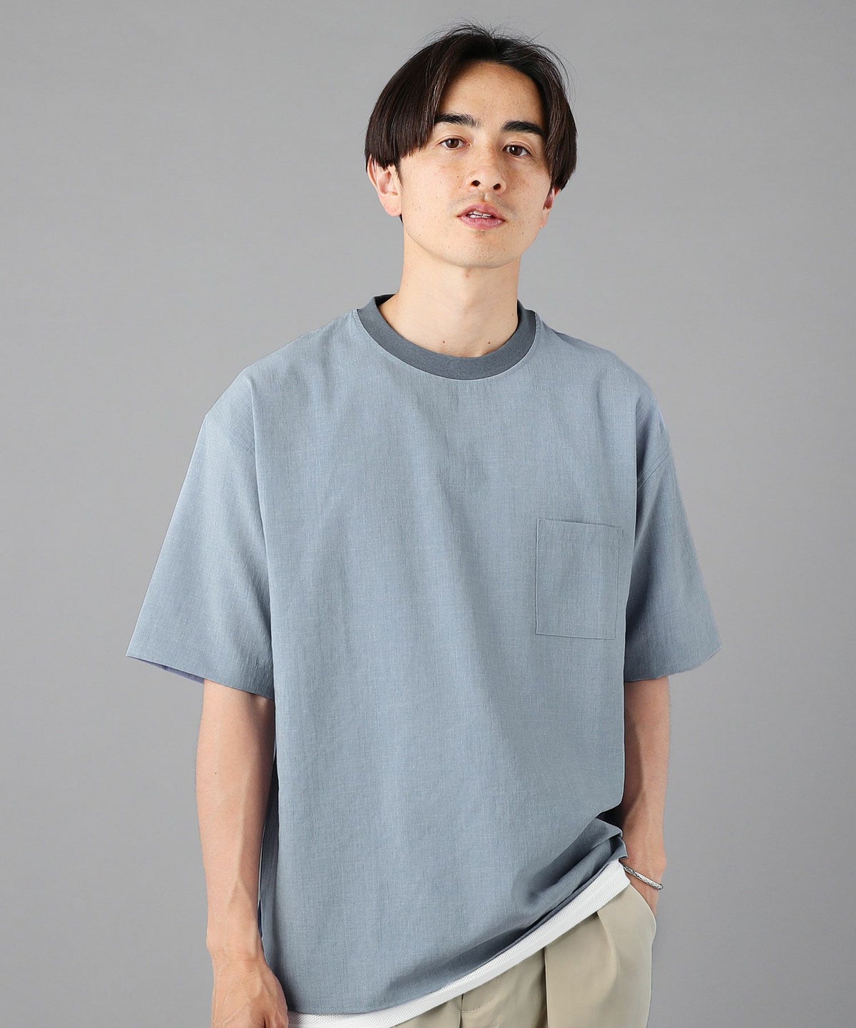 T/Rツイルクレリックバンドカラードロップショルダーシャツ