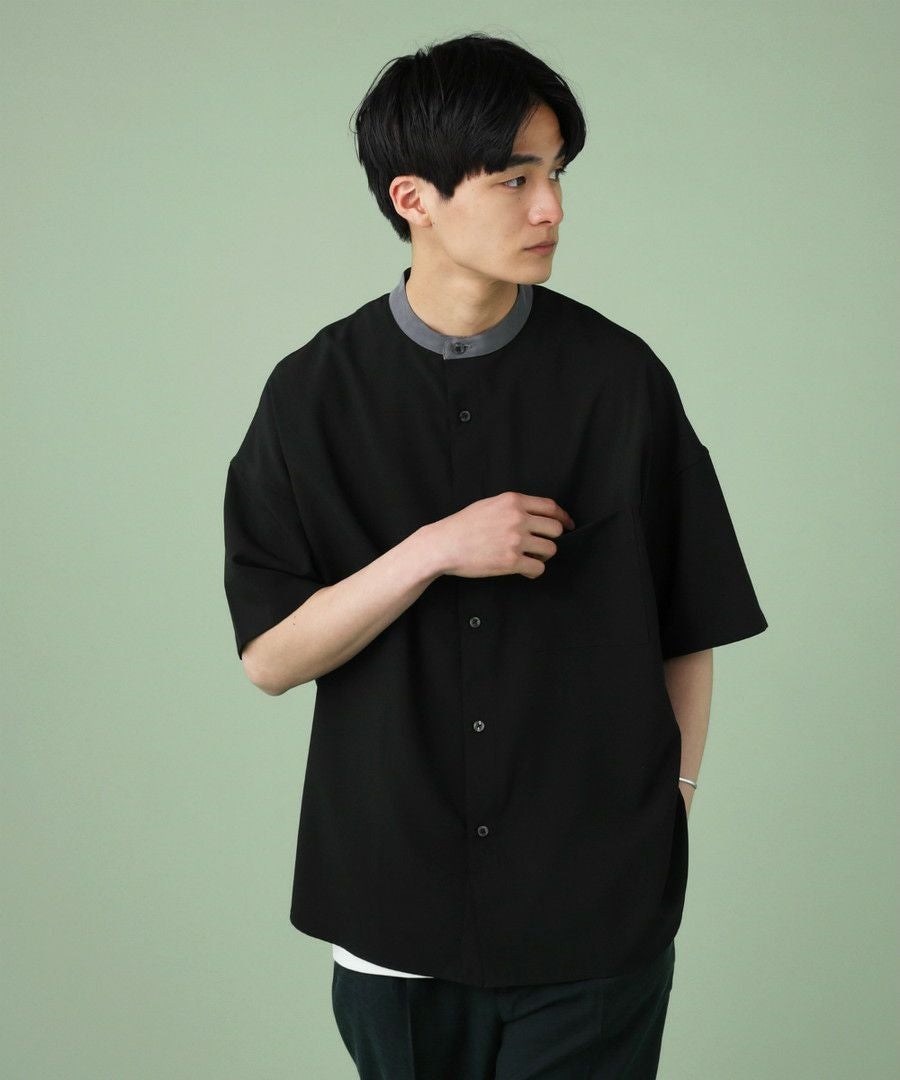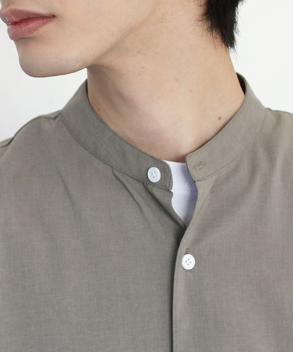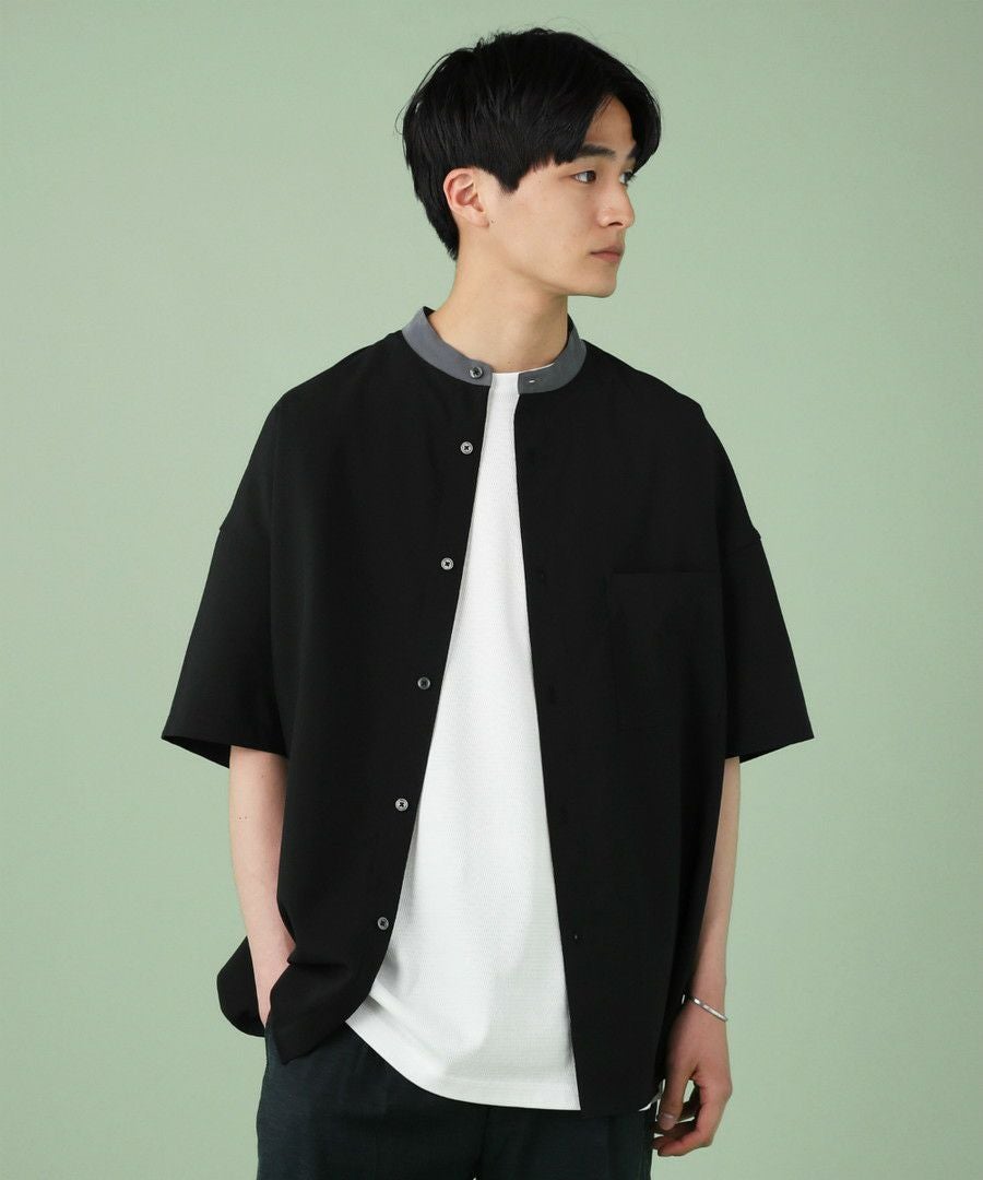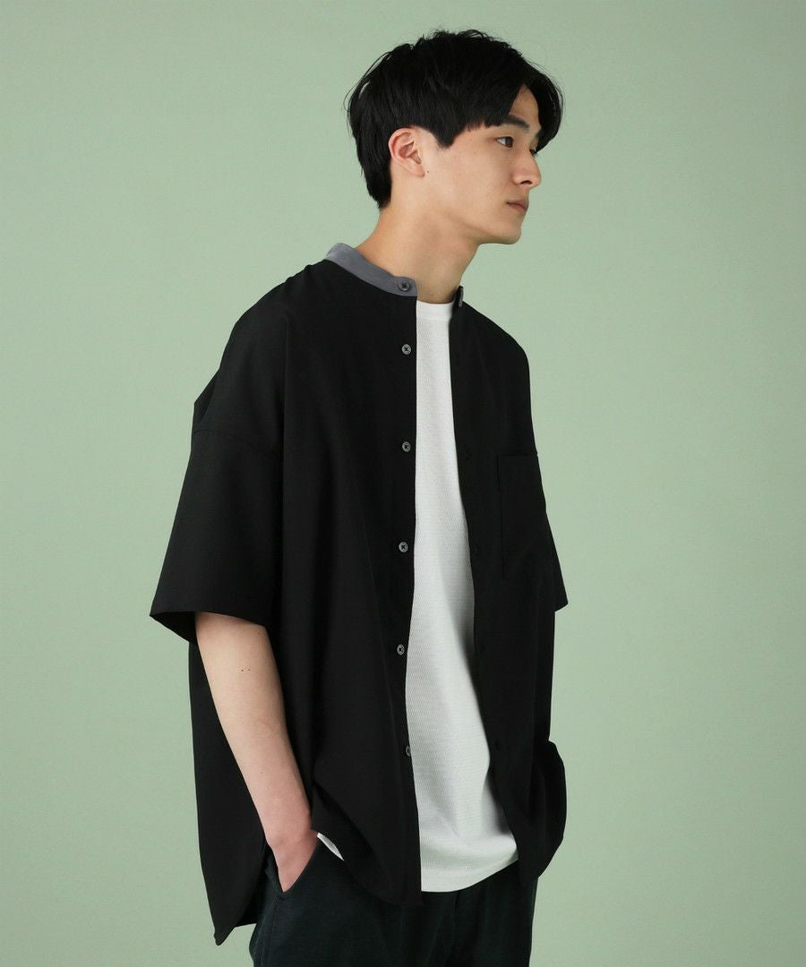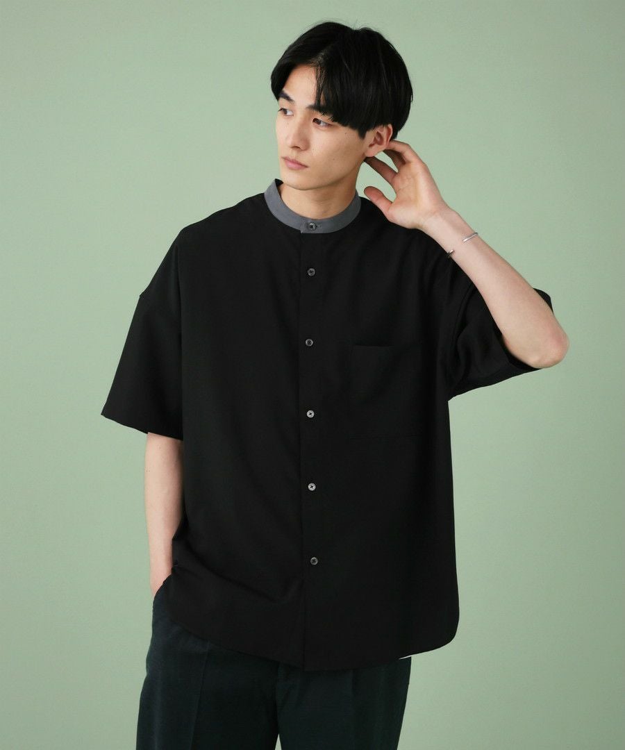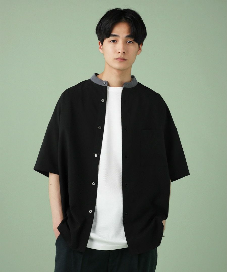 ウォッシャーとろみドルマンスリーブバンドカラー半袖シャツ