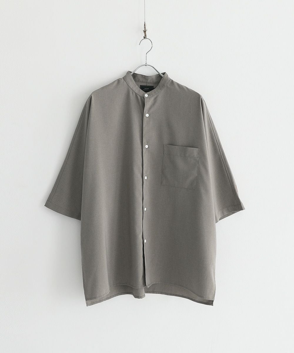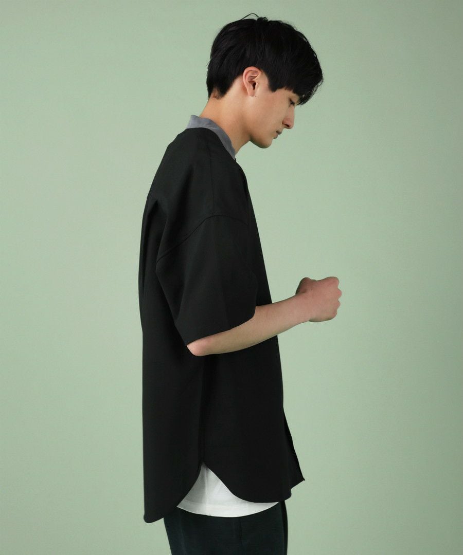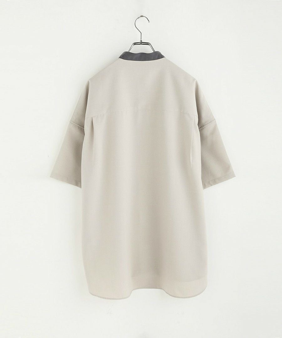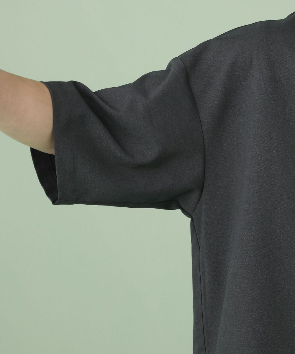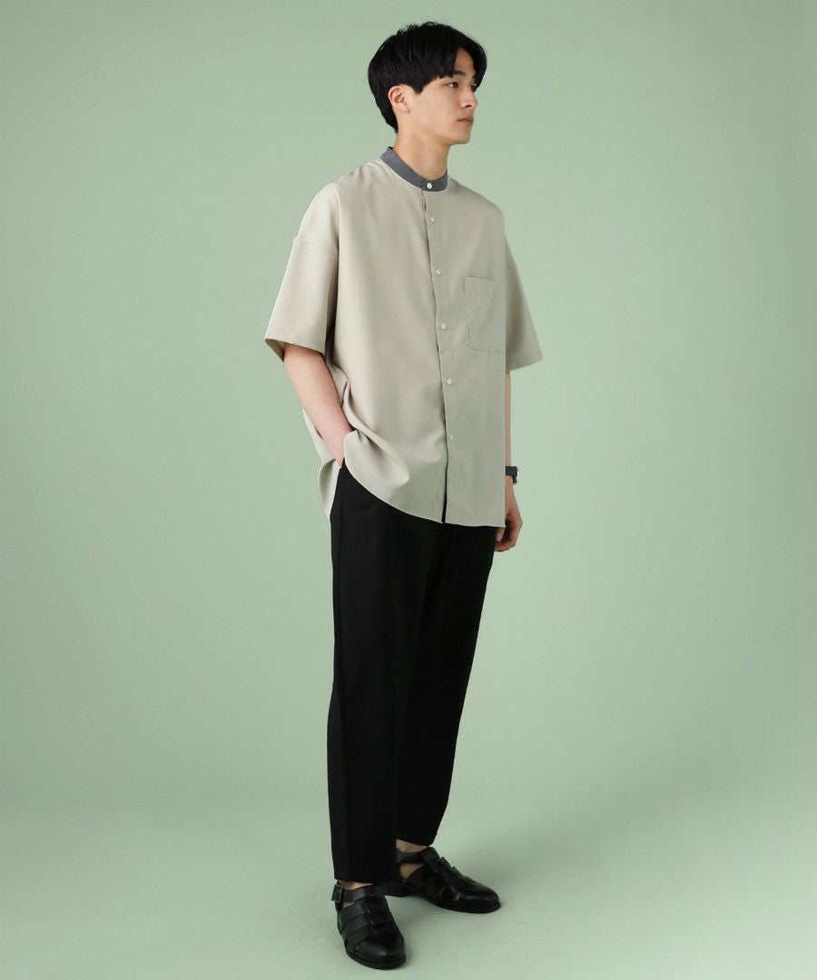 ウォッシャーとろみドルマンスリーブバンドカラー半袖シャツ