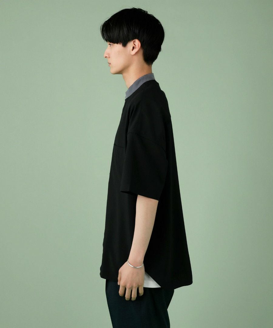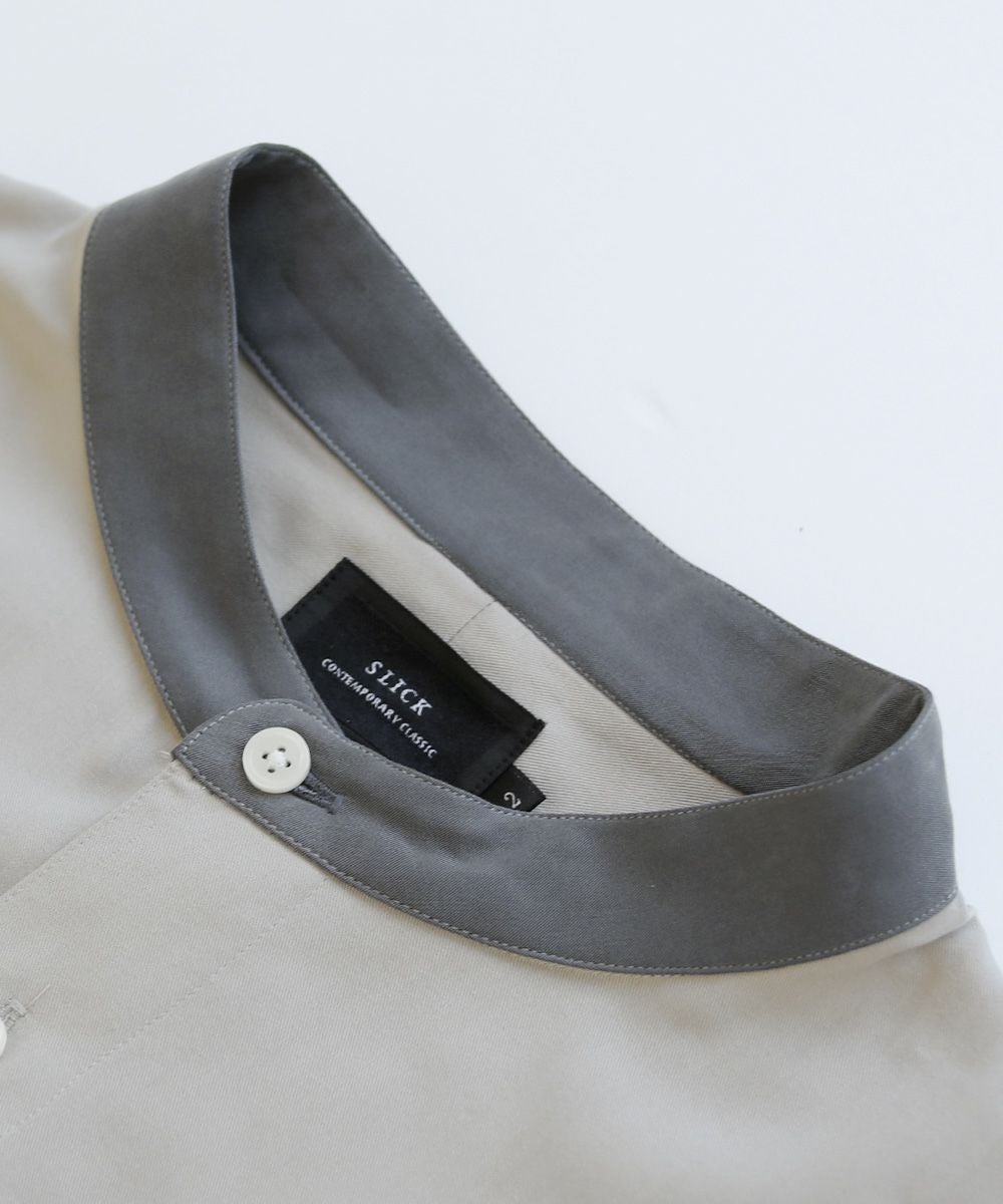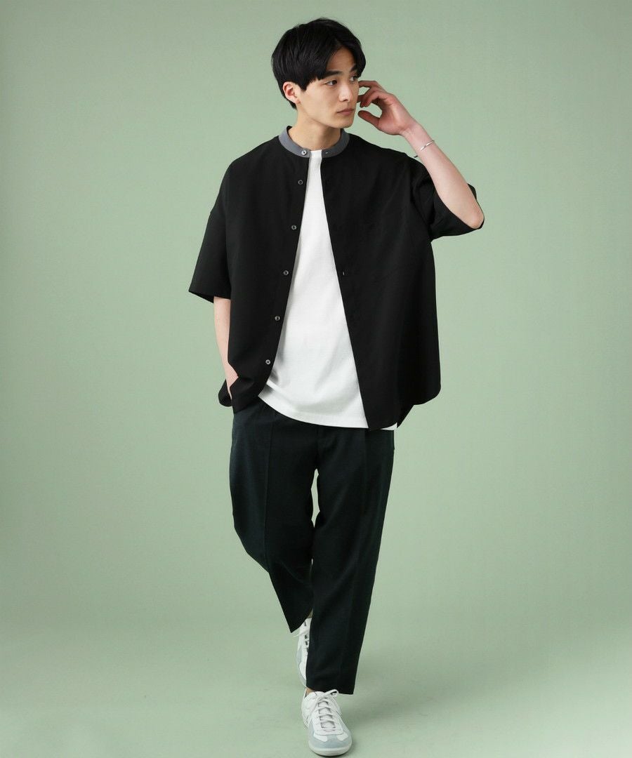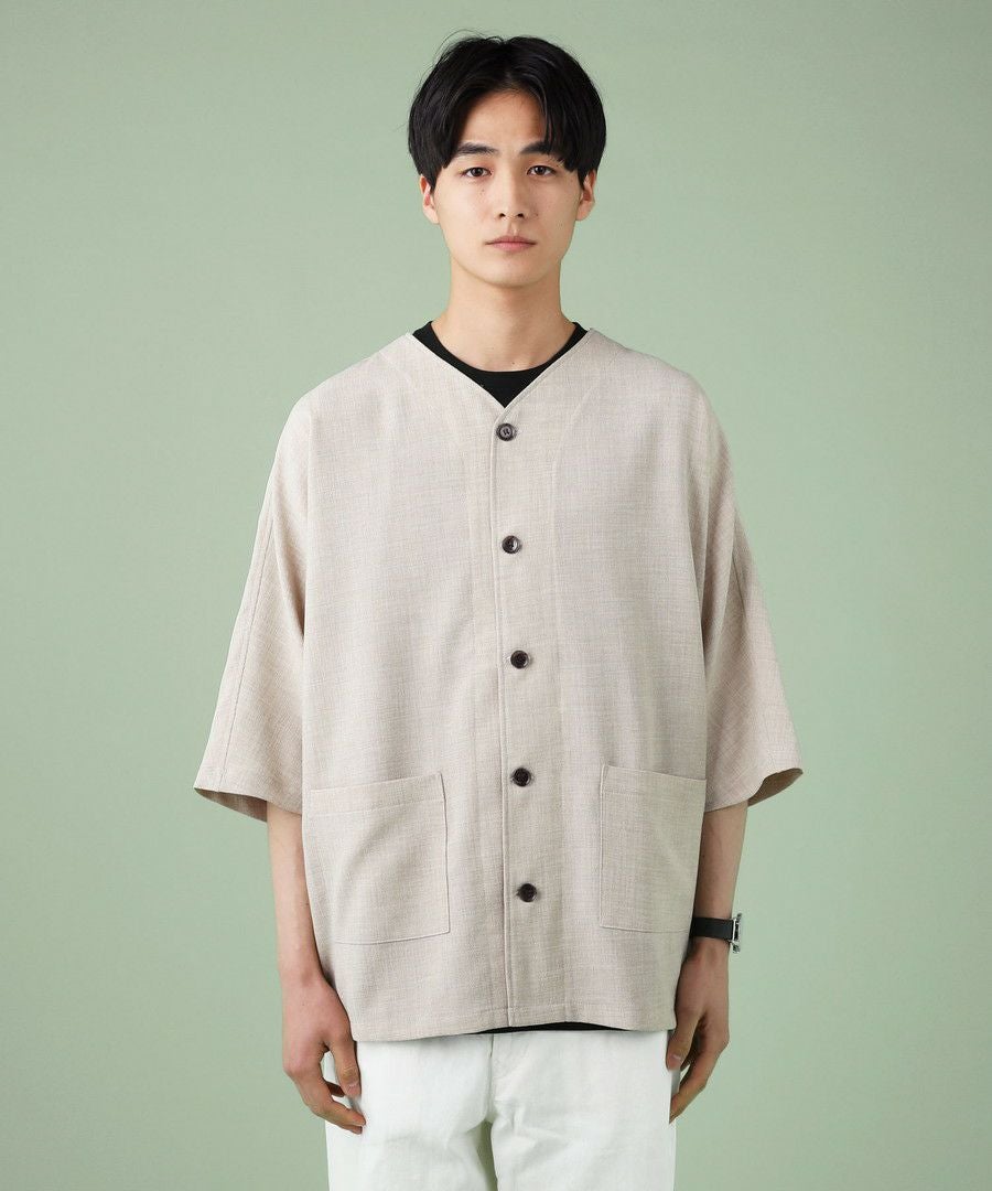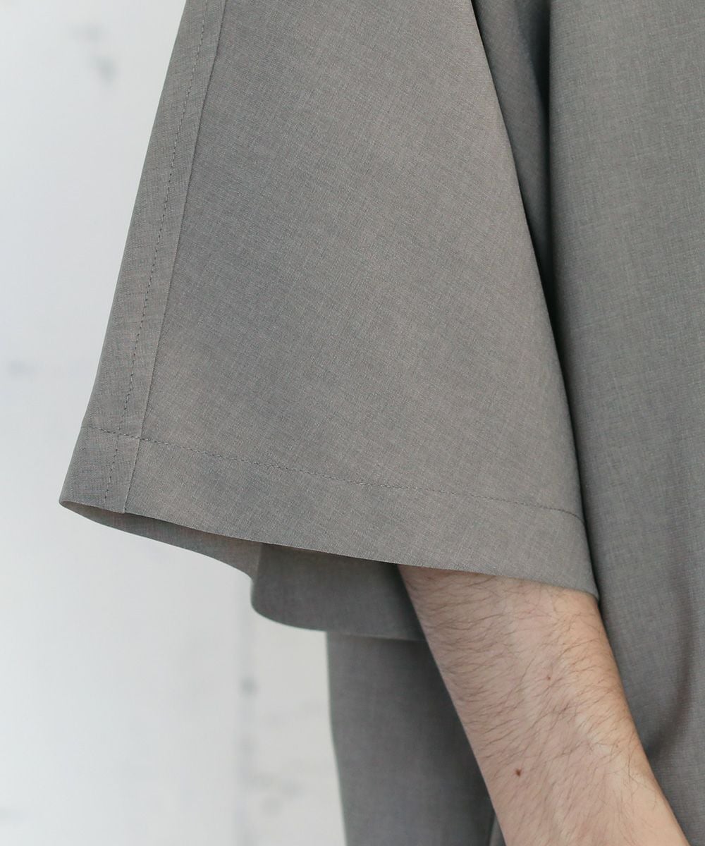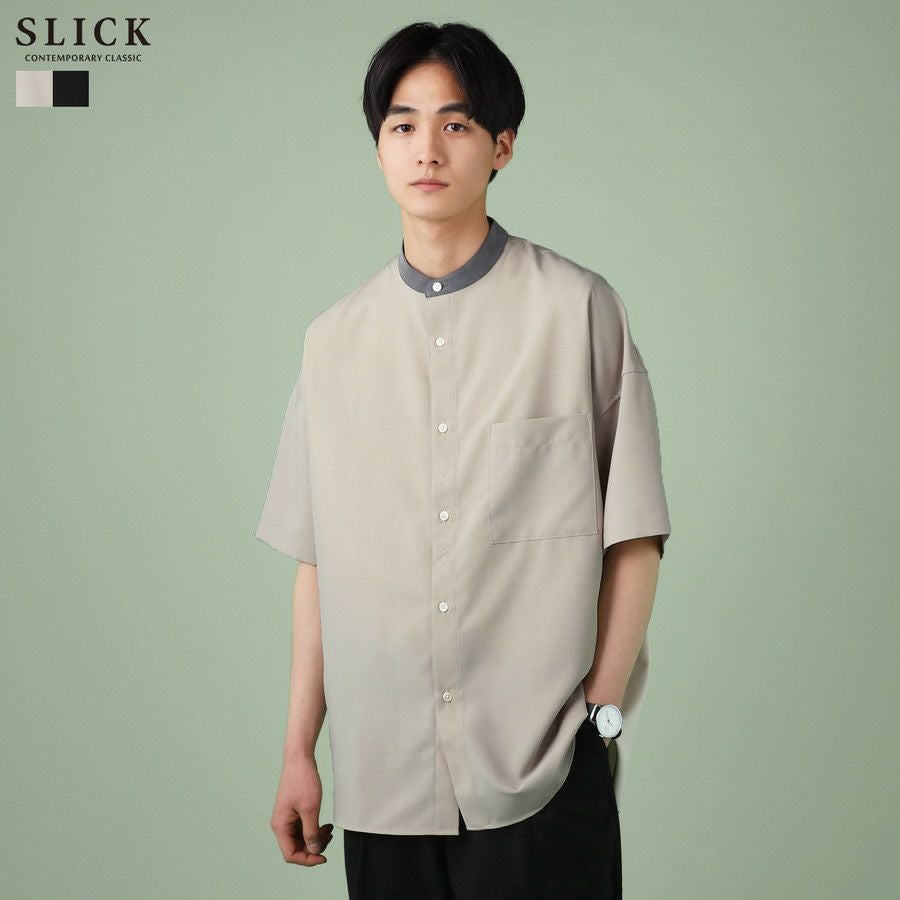 ウォッシャーとろみドルマンスリーブバンドカラー半袖シャツ