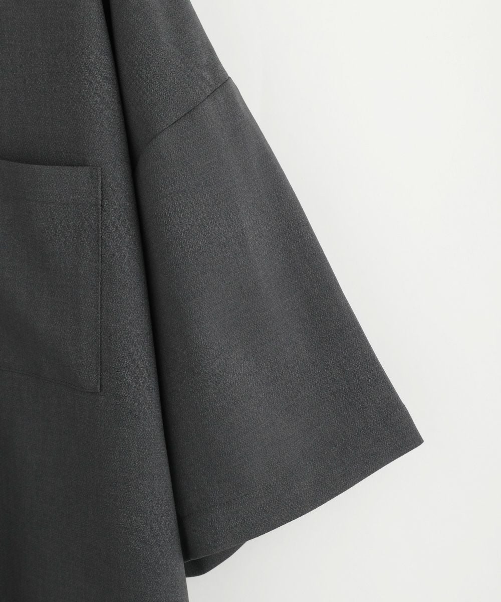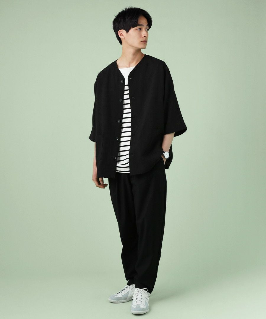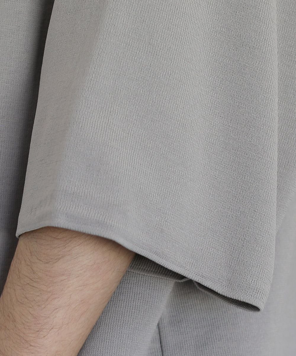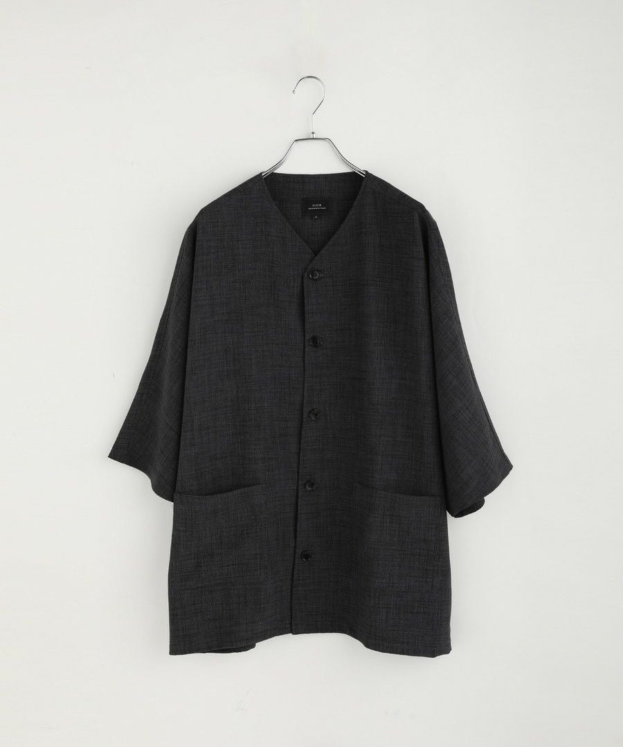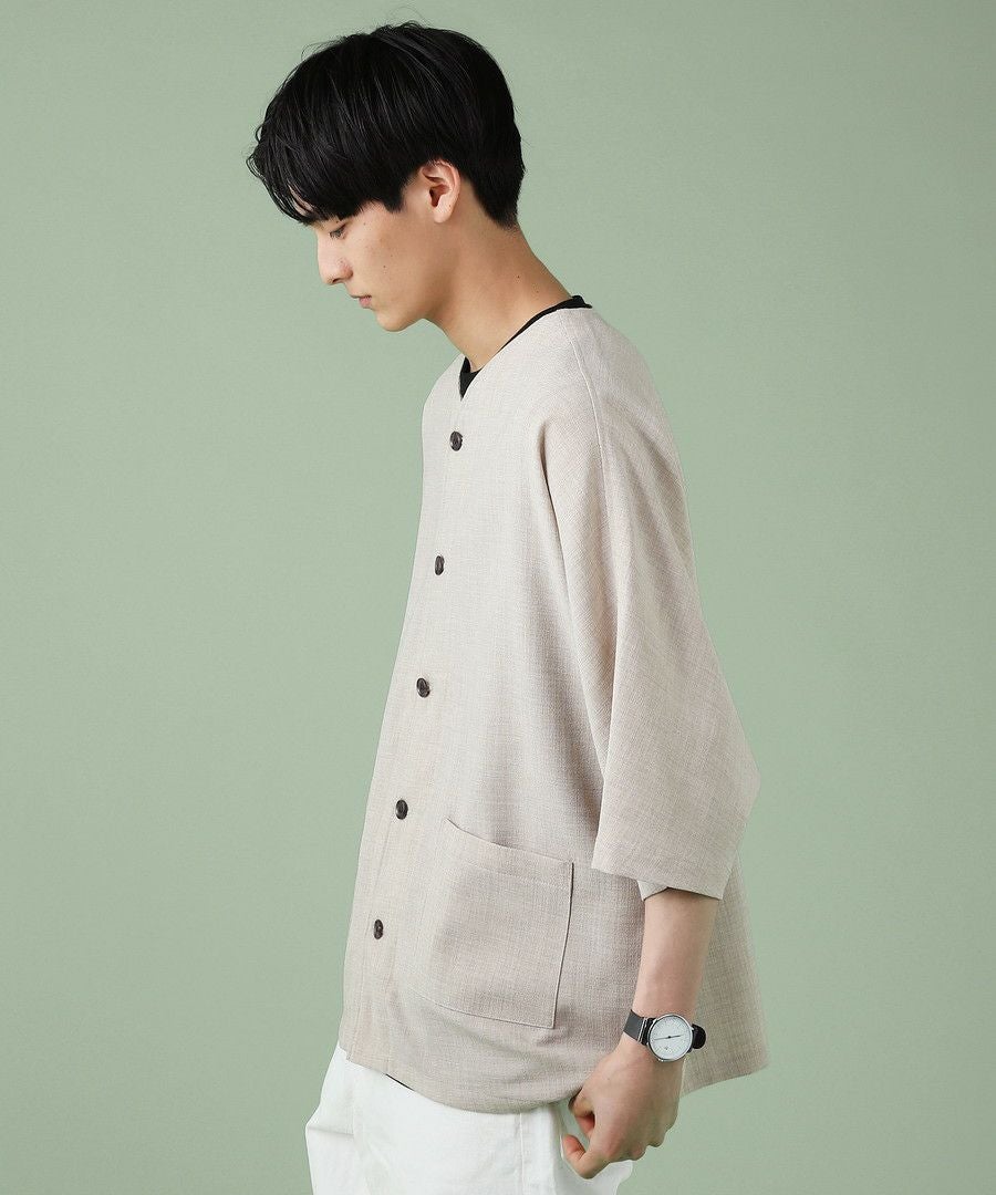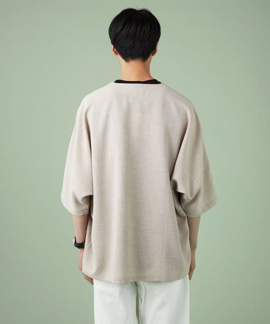 ウォッシャーとろみドルマンスリーブバンドカラー半袖シャツ