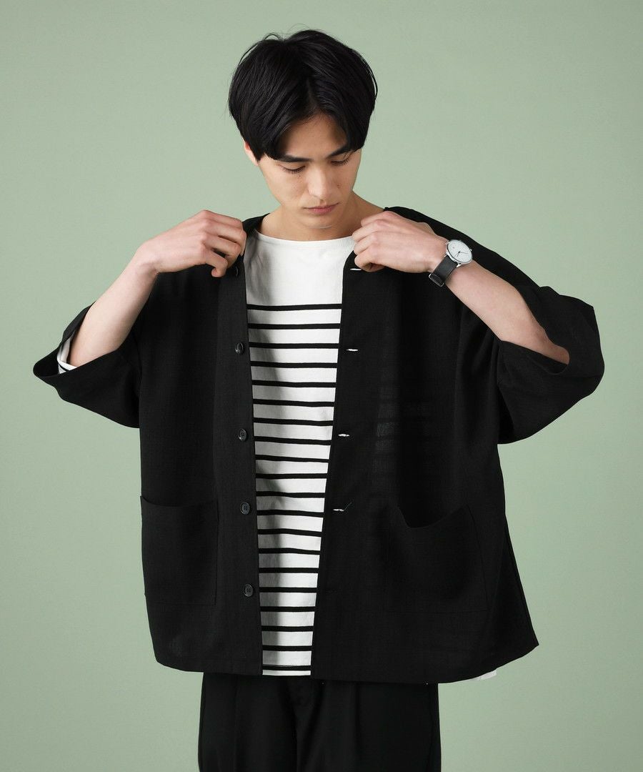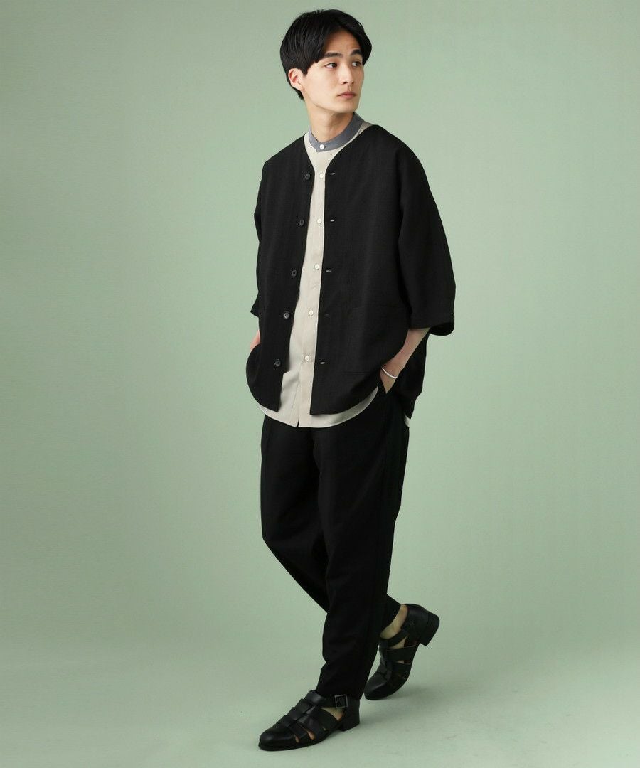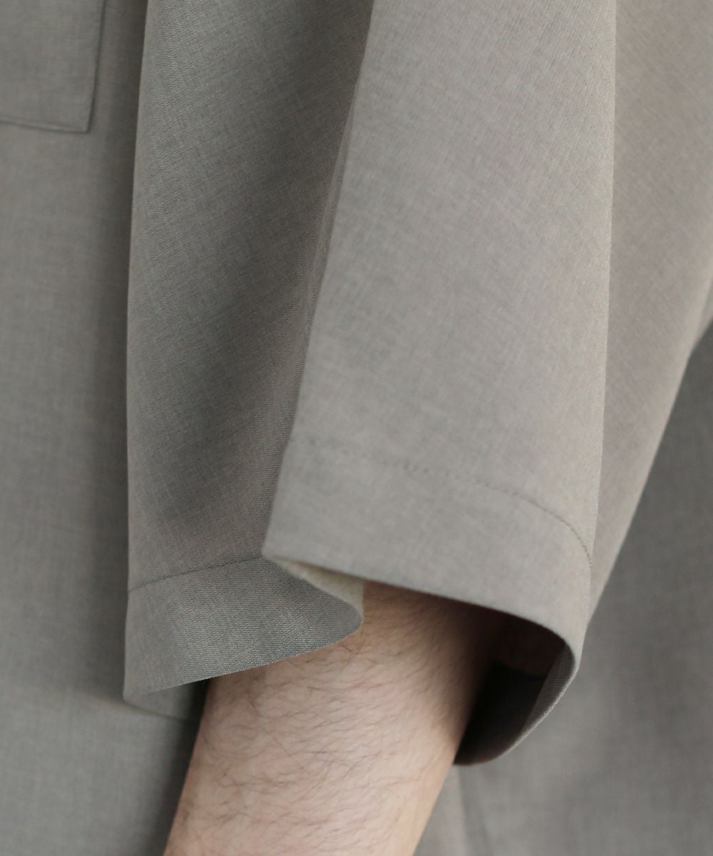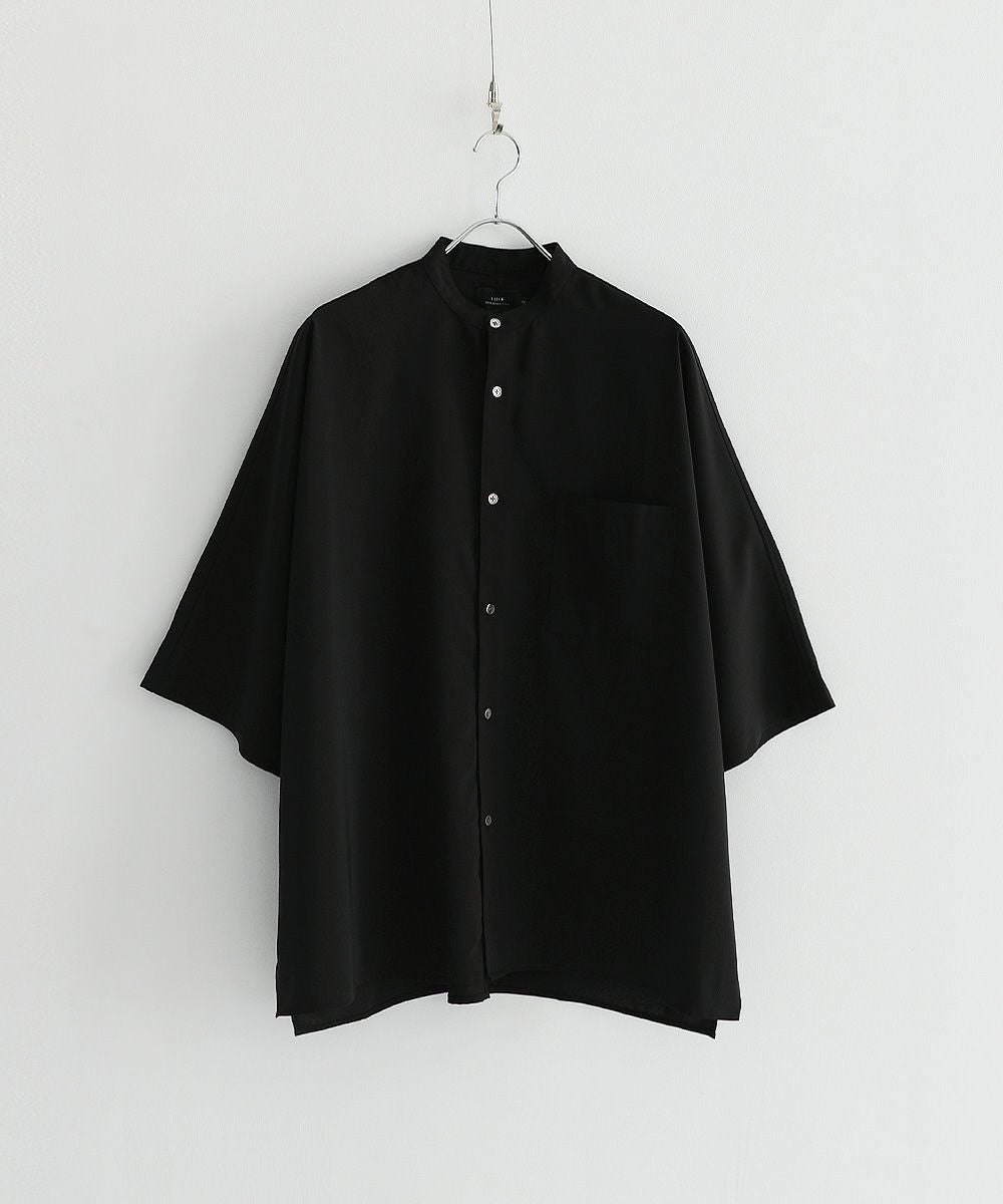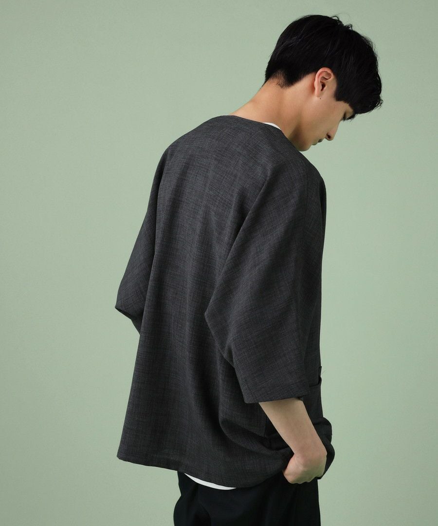 ウォッシャーとろみドルマンスリーブバンドカラー半袖シャツ