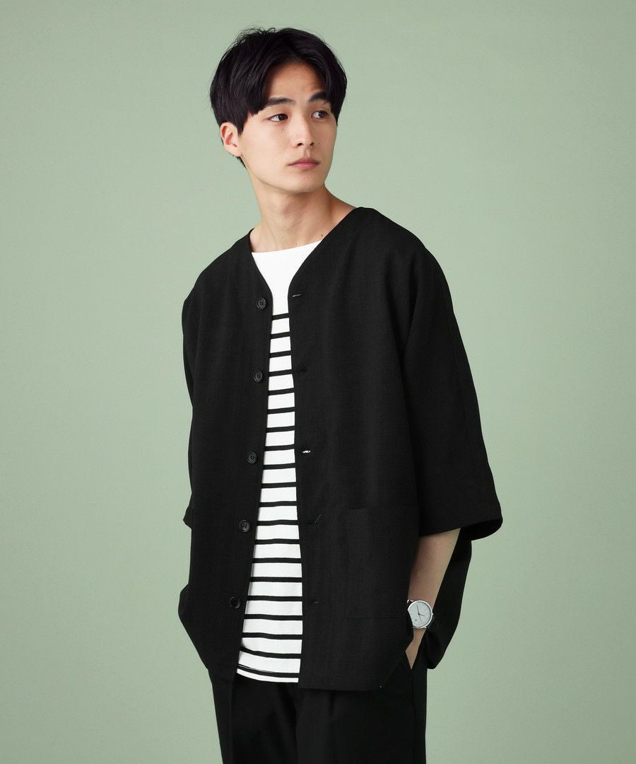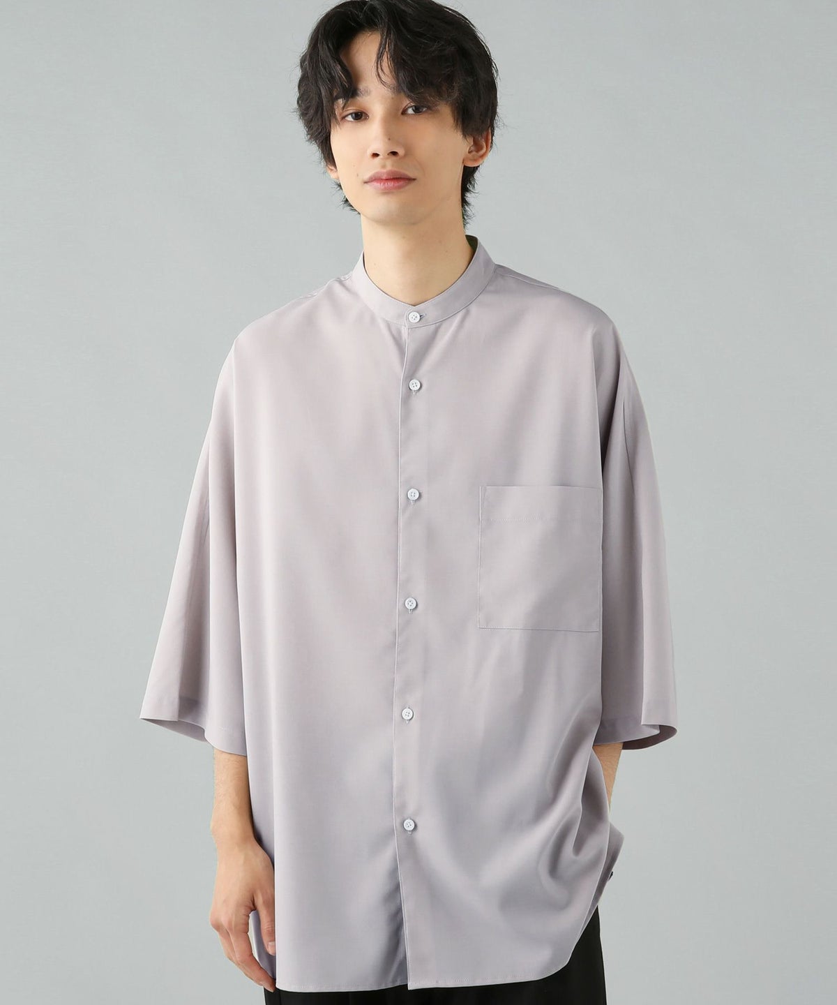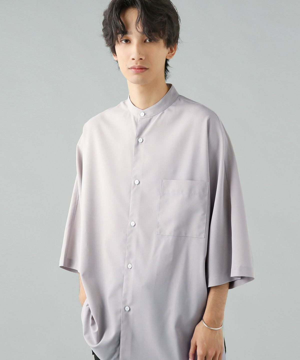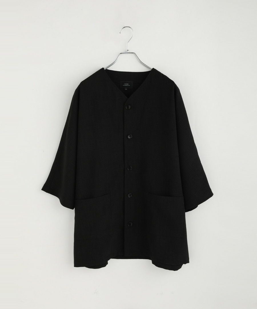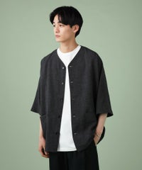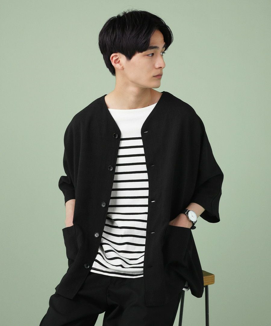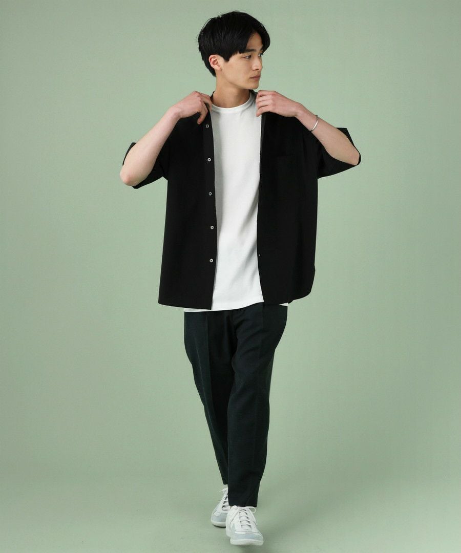 ウォッシャーとろみドルマンスリーブバンドカラー半袖シャツ