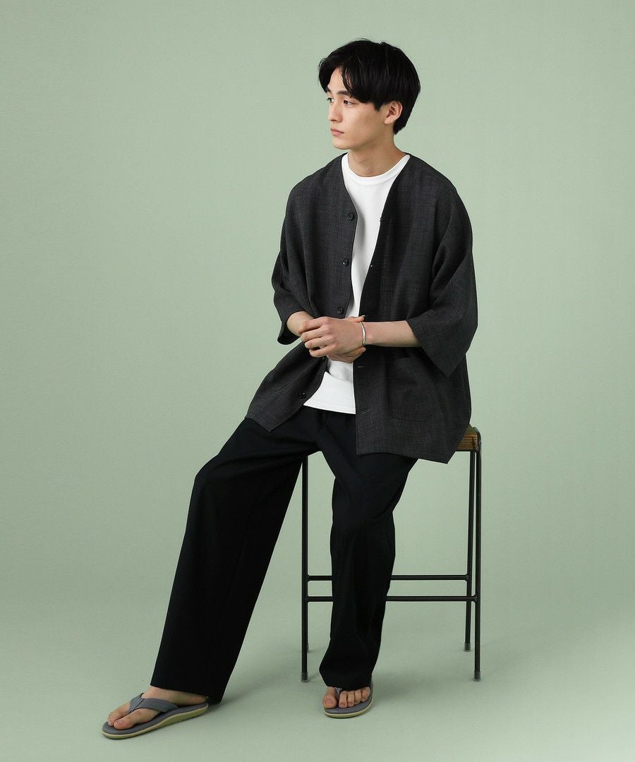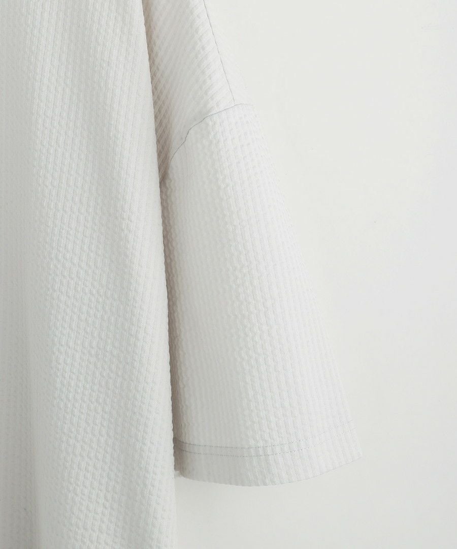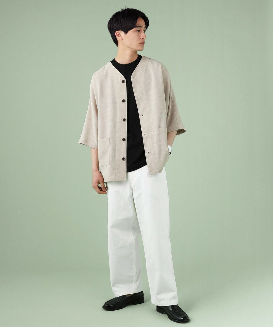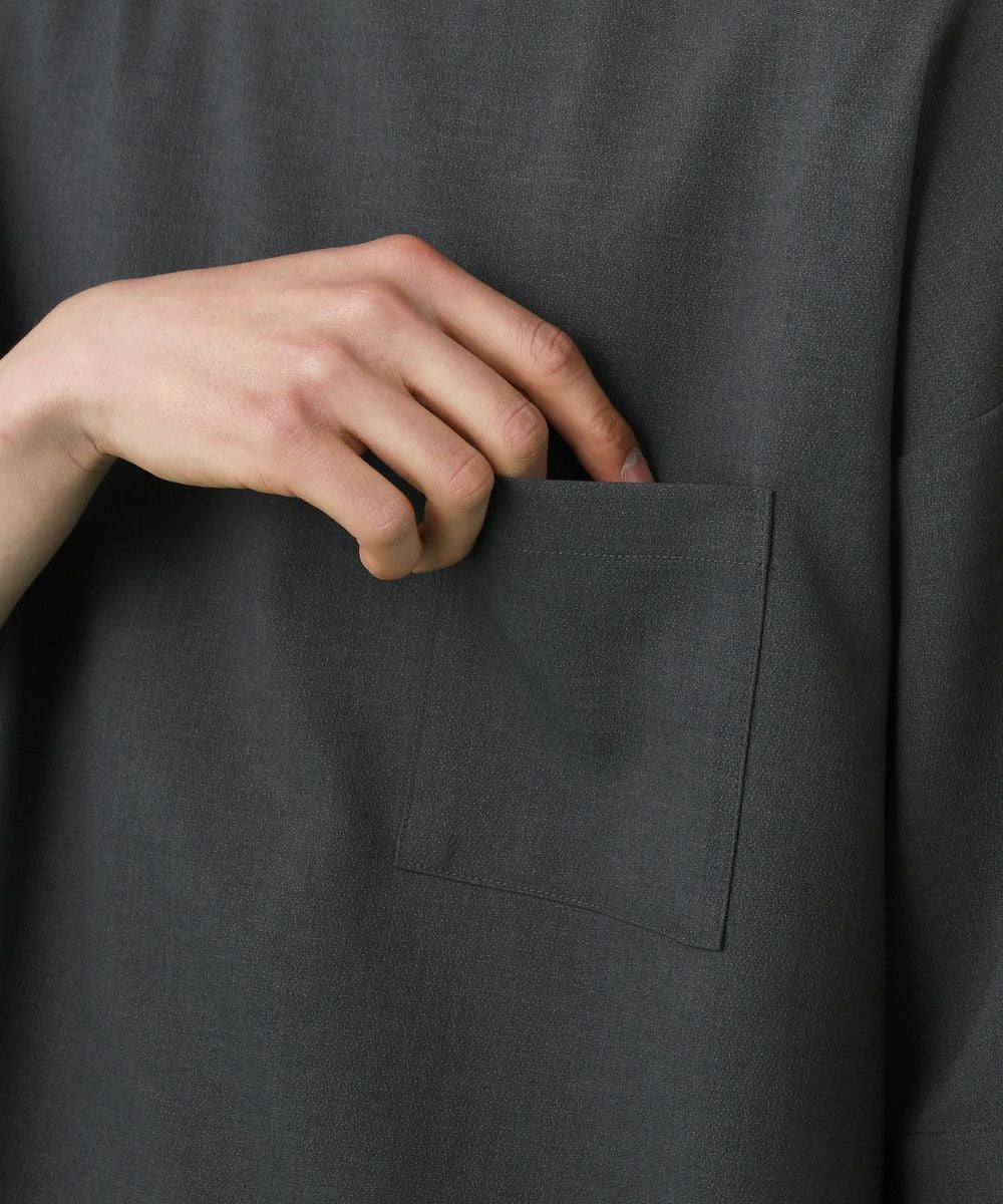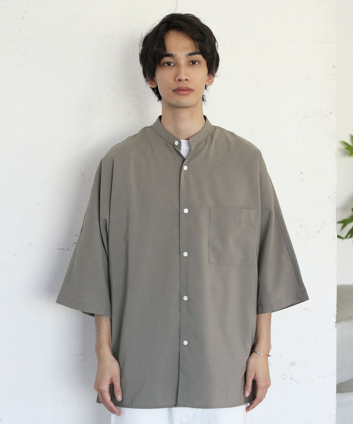 ウォッシャーとろみドルマンスリーブバンドカラー半袖シャツ