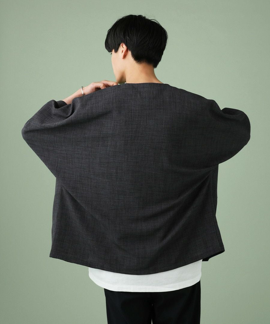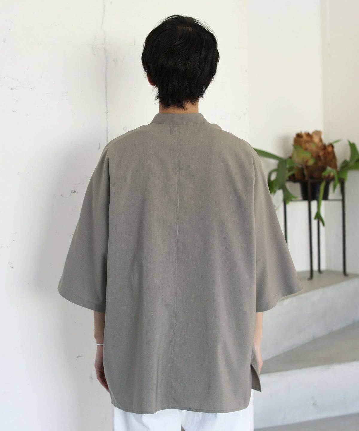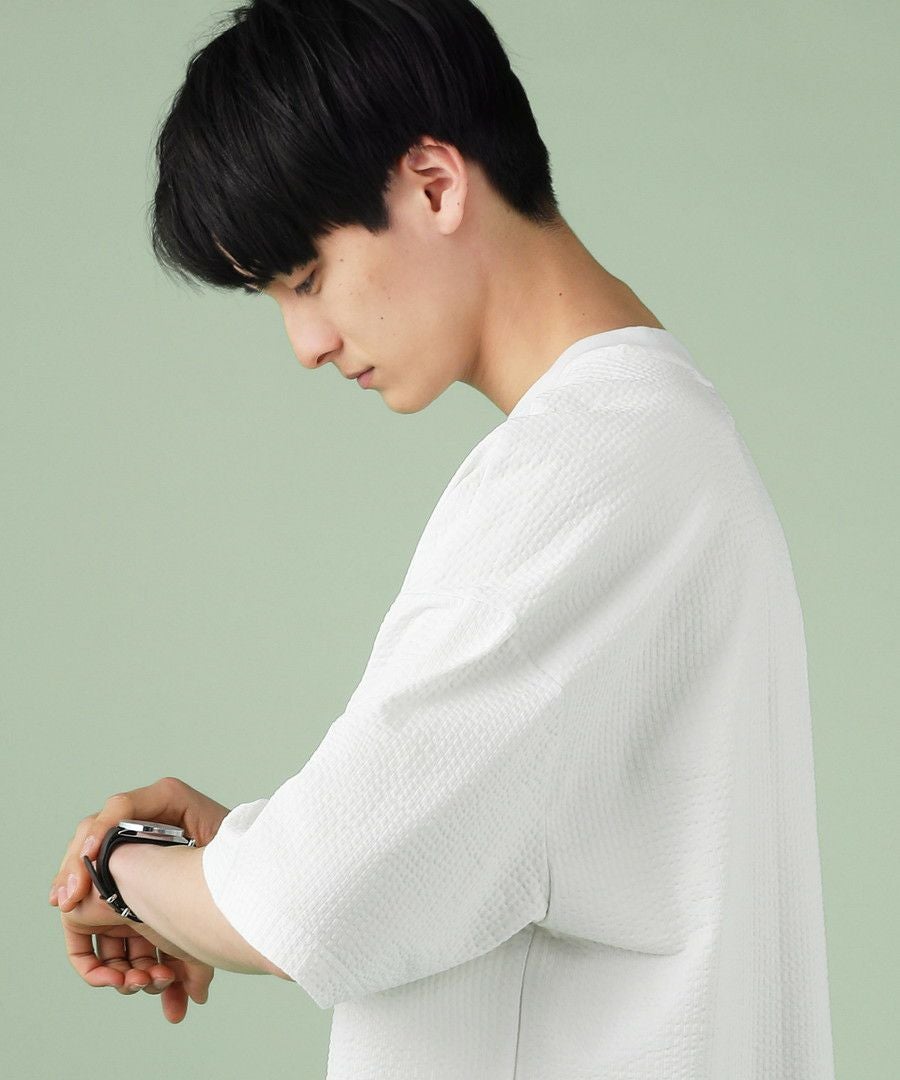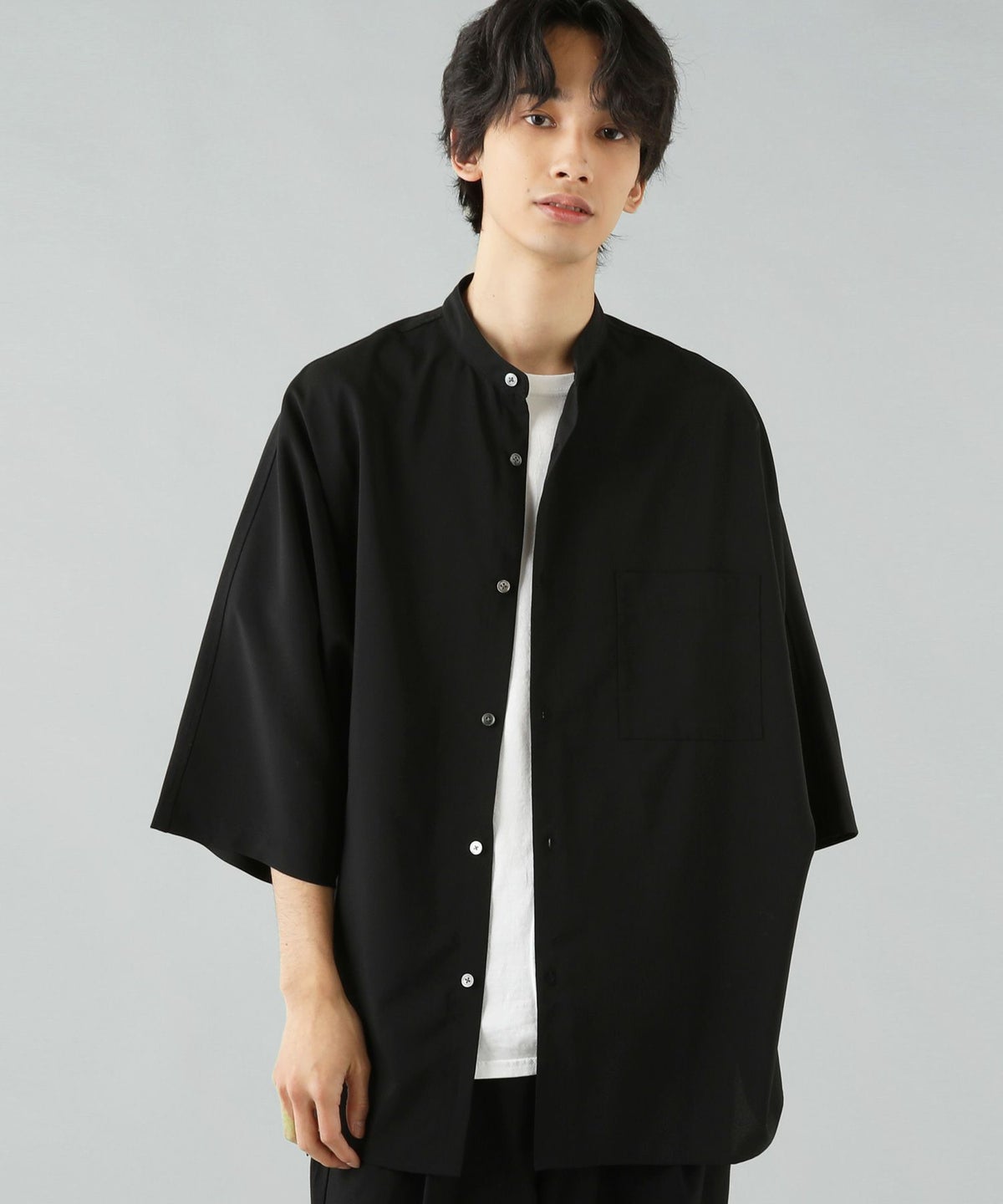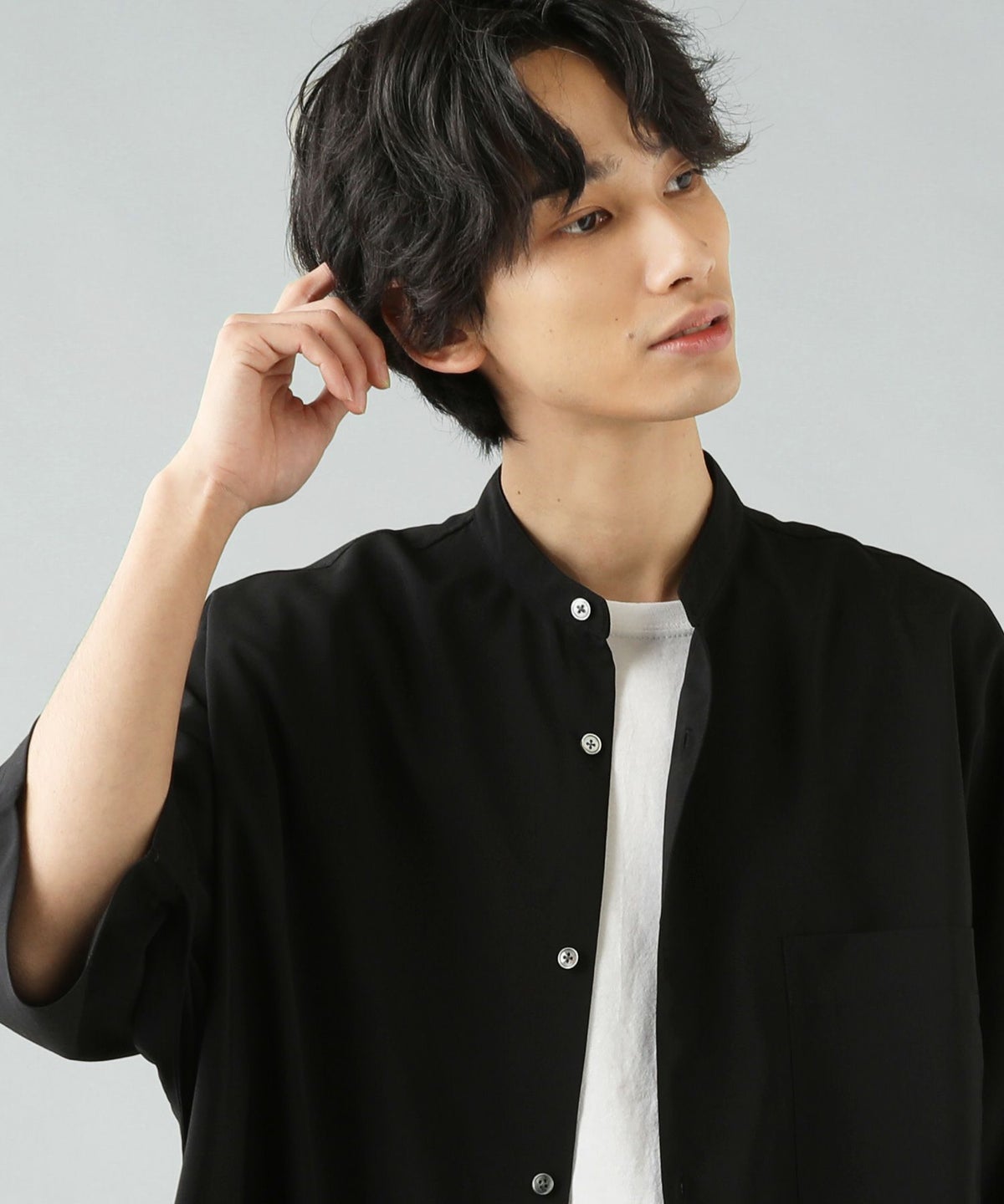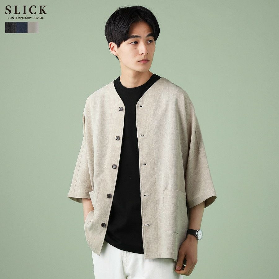 ウォッシャーとろみドルマンスリーブバンドカラー半袖シャツ