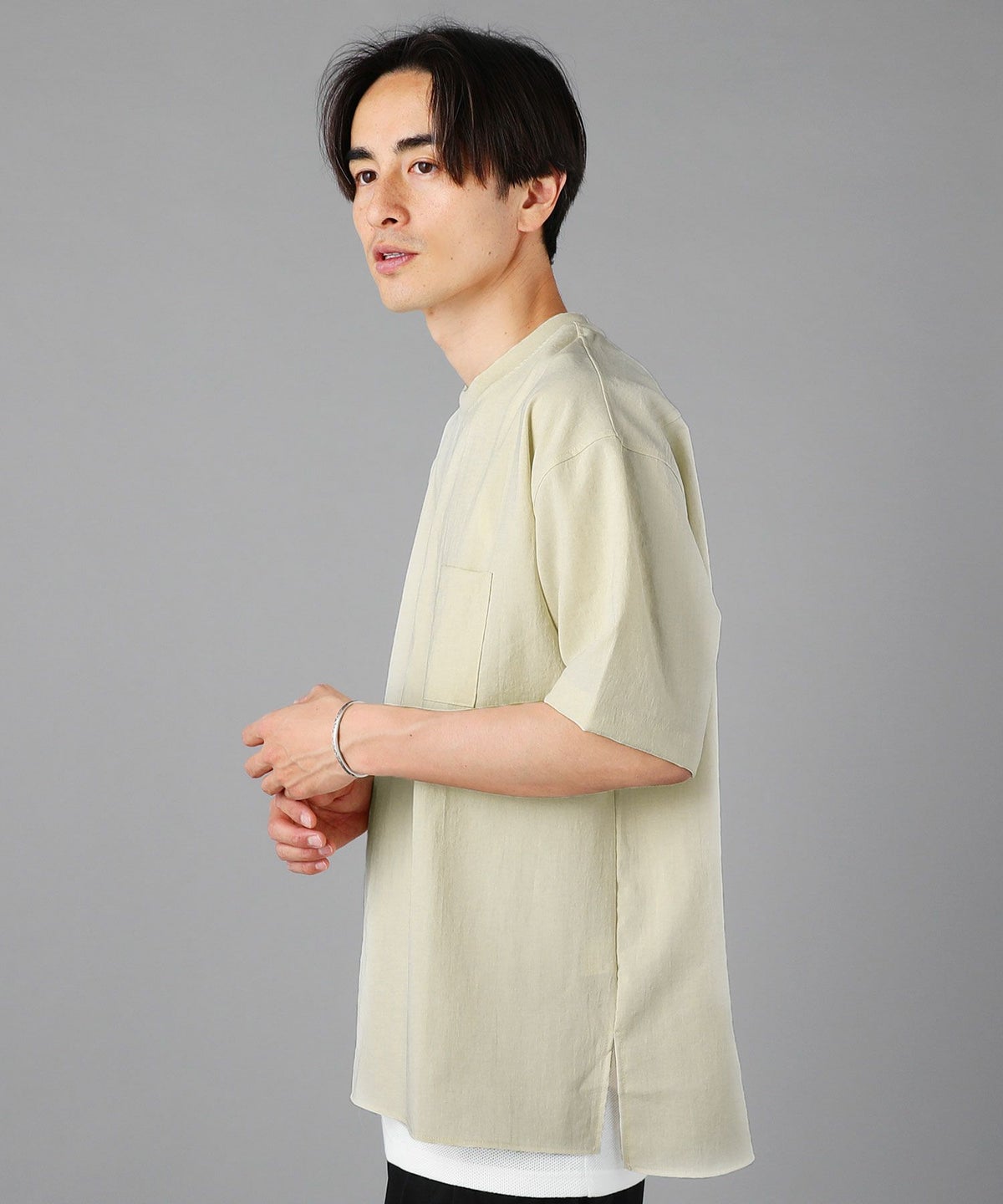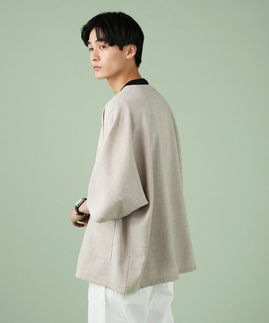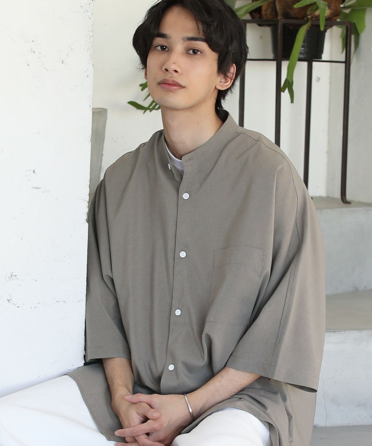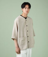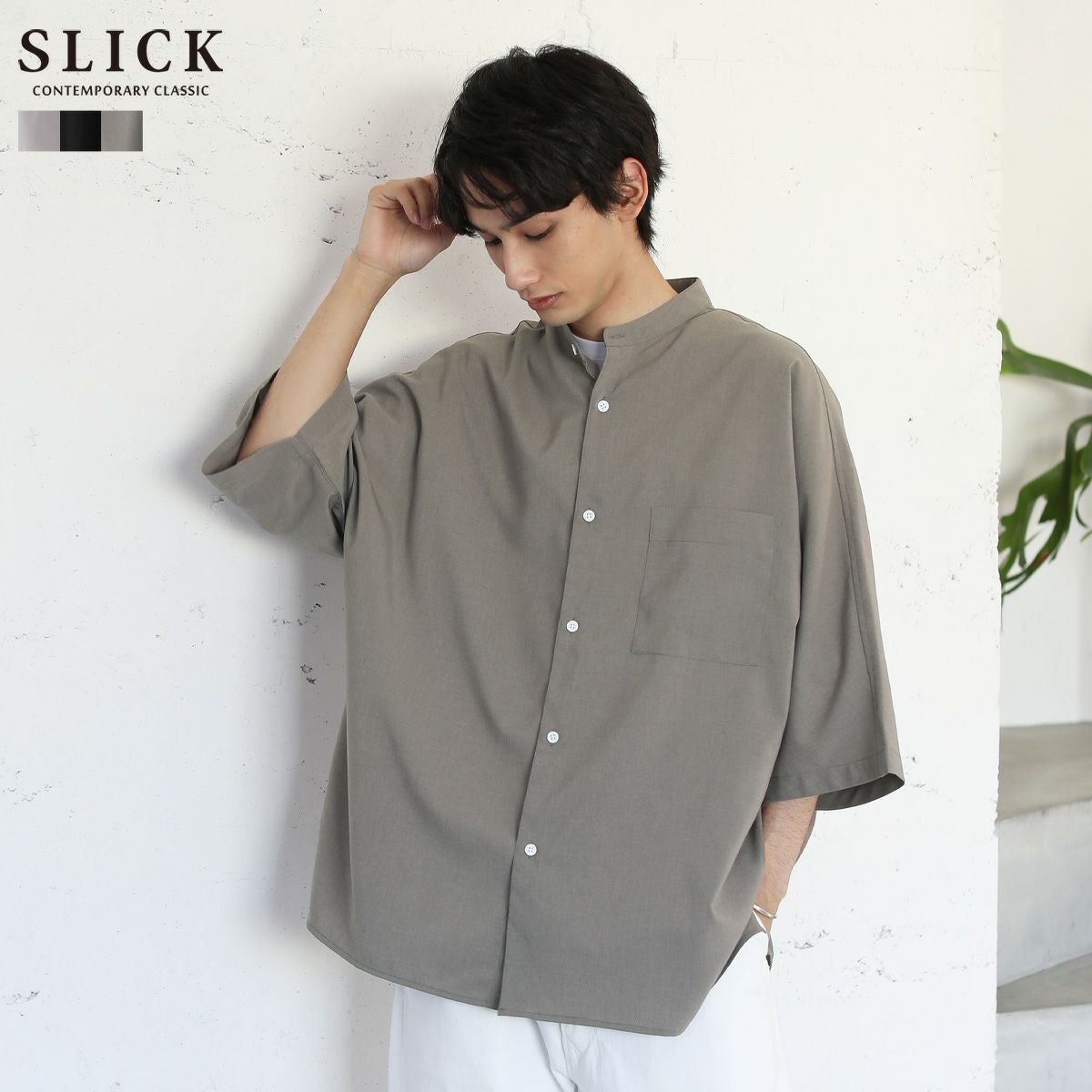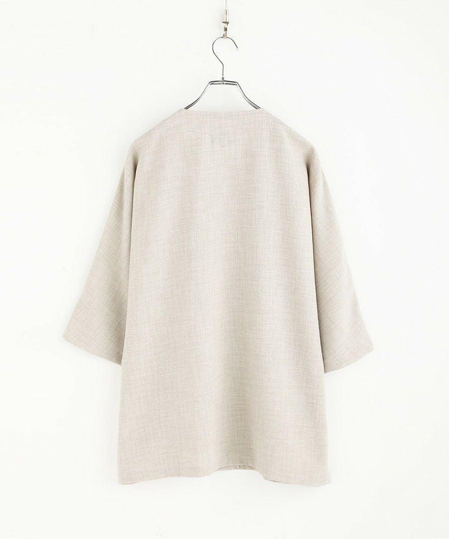 ウォッシャーとろみドルマンスリーブバンドカラー半袖シャツ