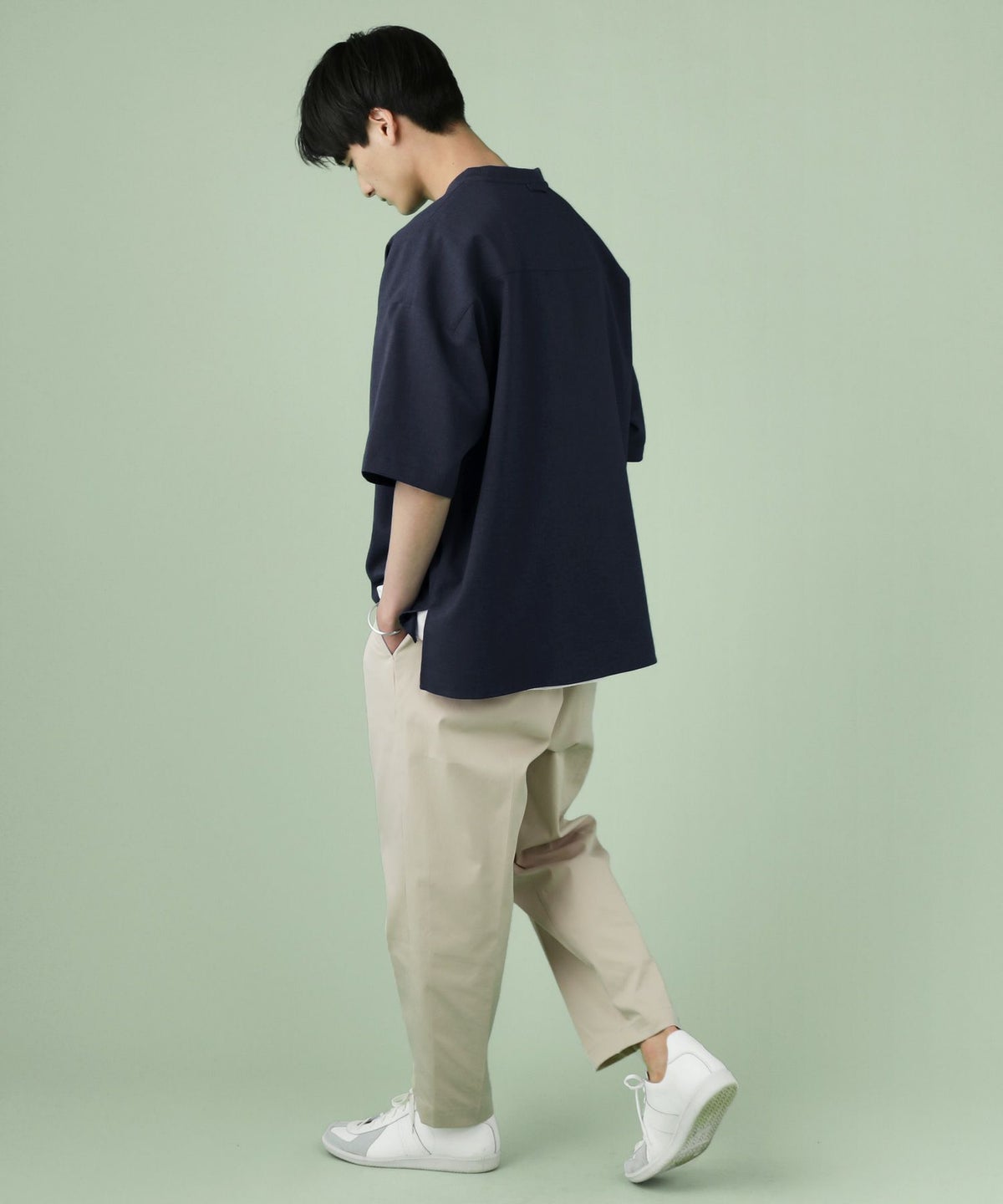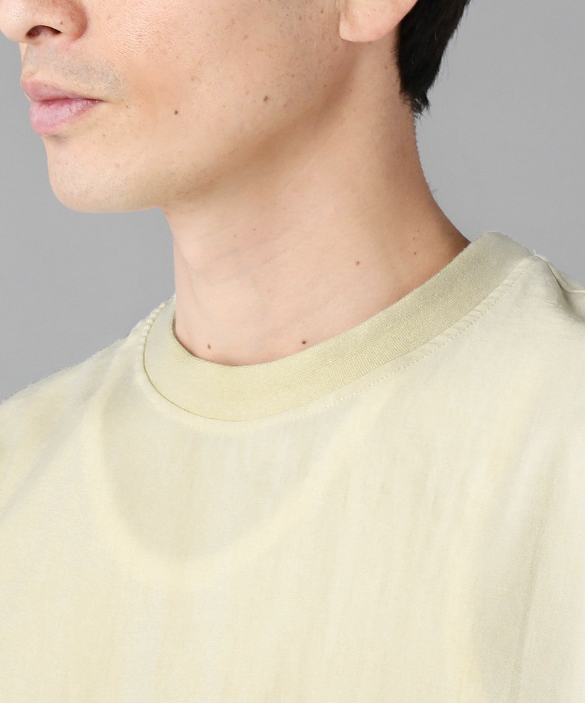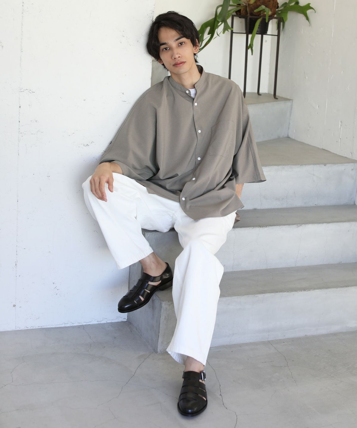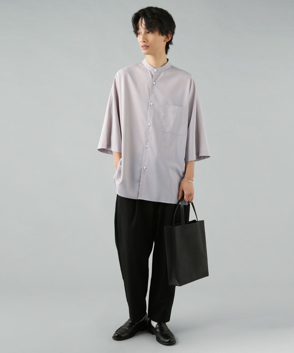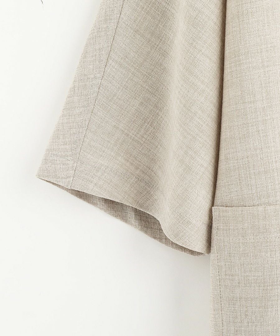 ウォッシャーとろみドルマンスリーブバンドカラー半袖シャツ