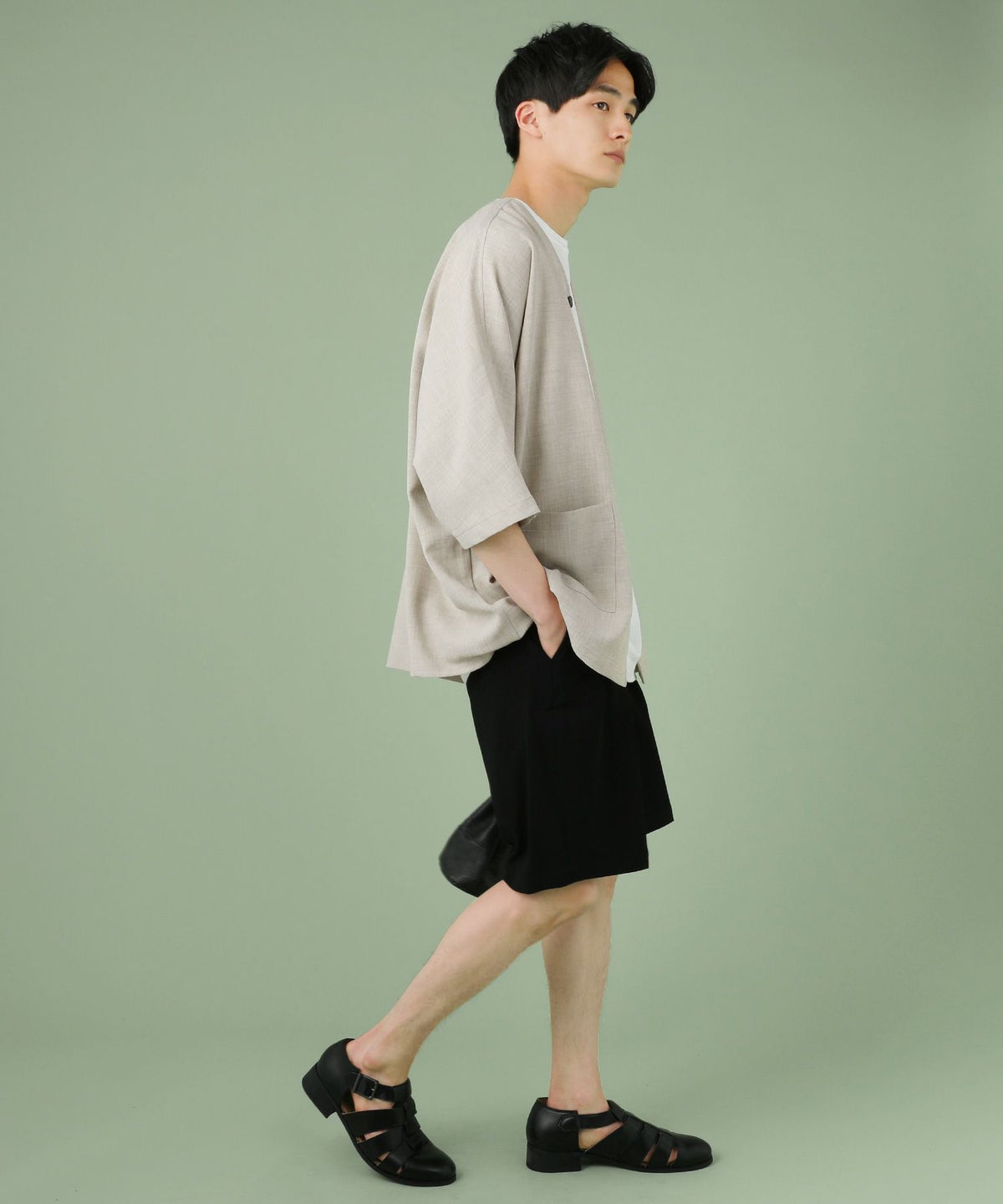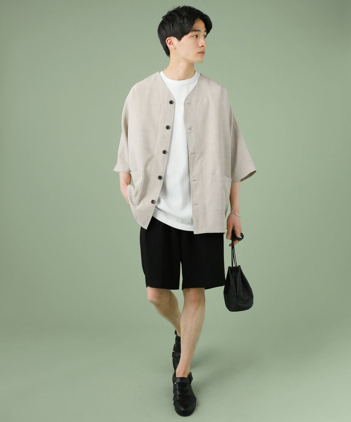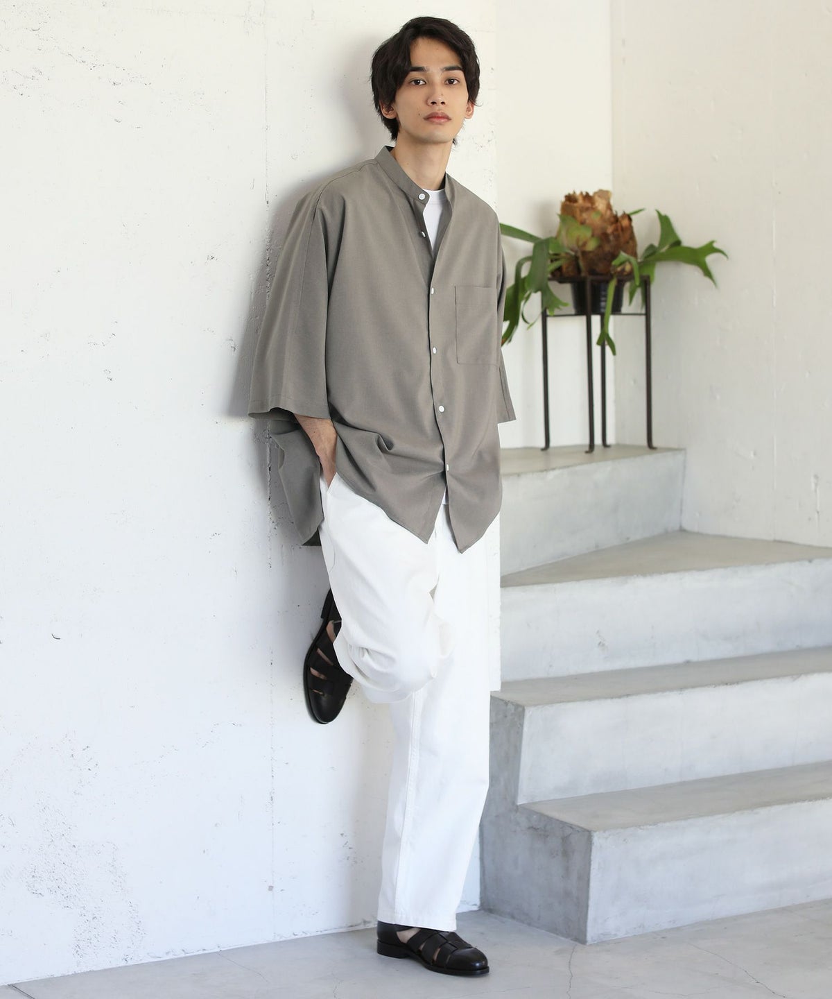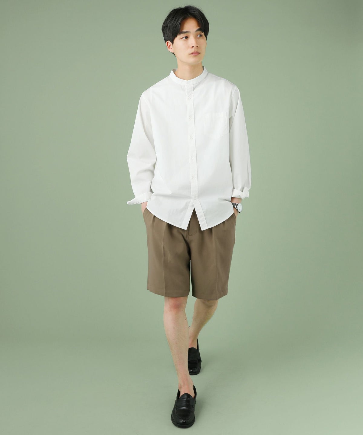 クレリックバンドカラー半袖シャツ