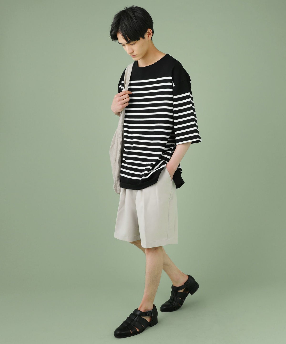パネルボーダーオーバーサイズバスクTシャツ