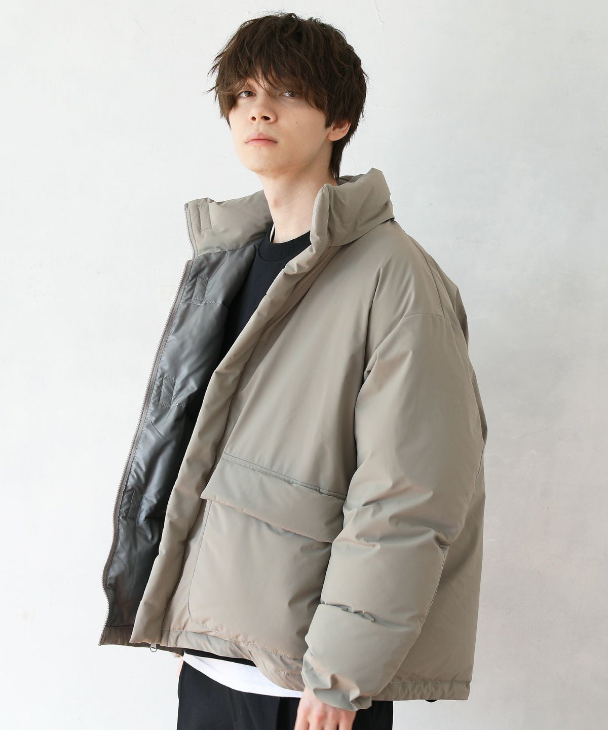 撥水ナイロンストレッチ2レイヤーシェルボリュームダウンジャケット