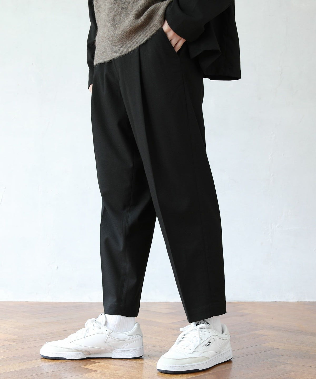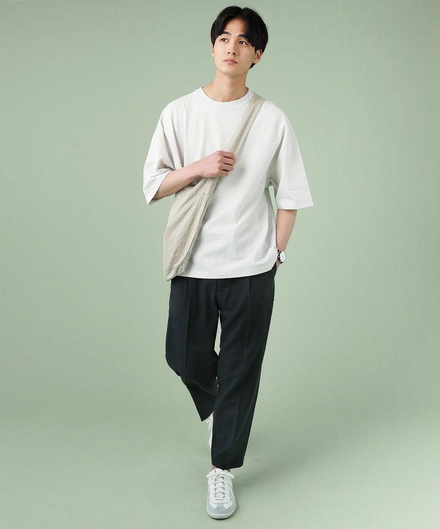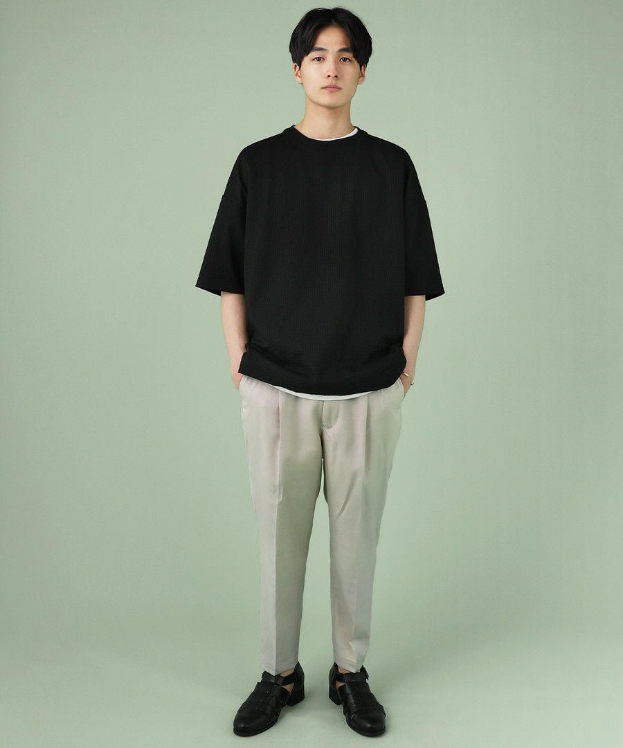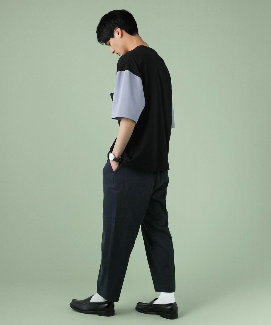 TRギャバストレッチツイルワイドテーパードアンクルカットスラックス
