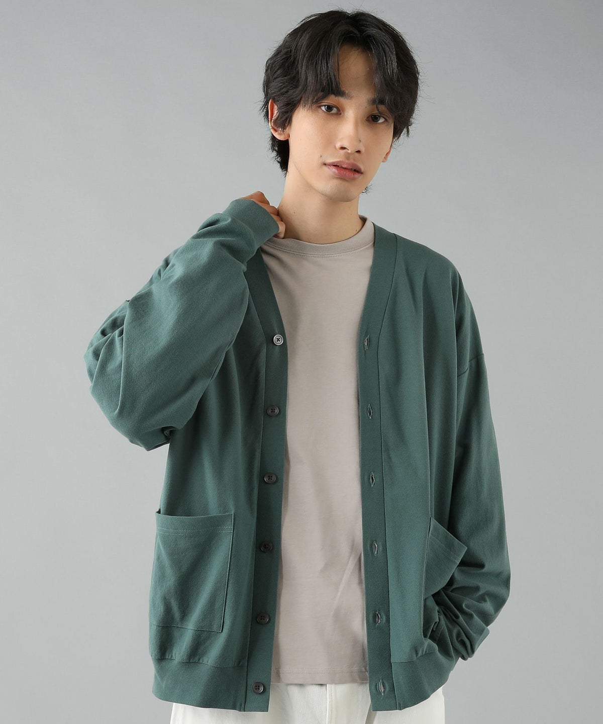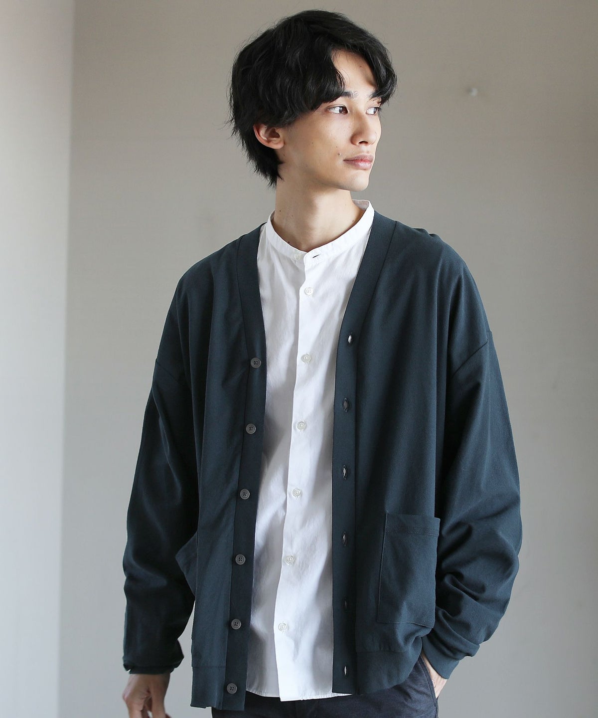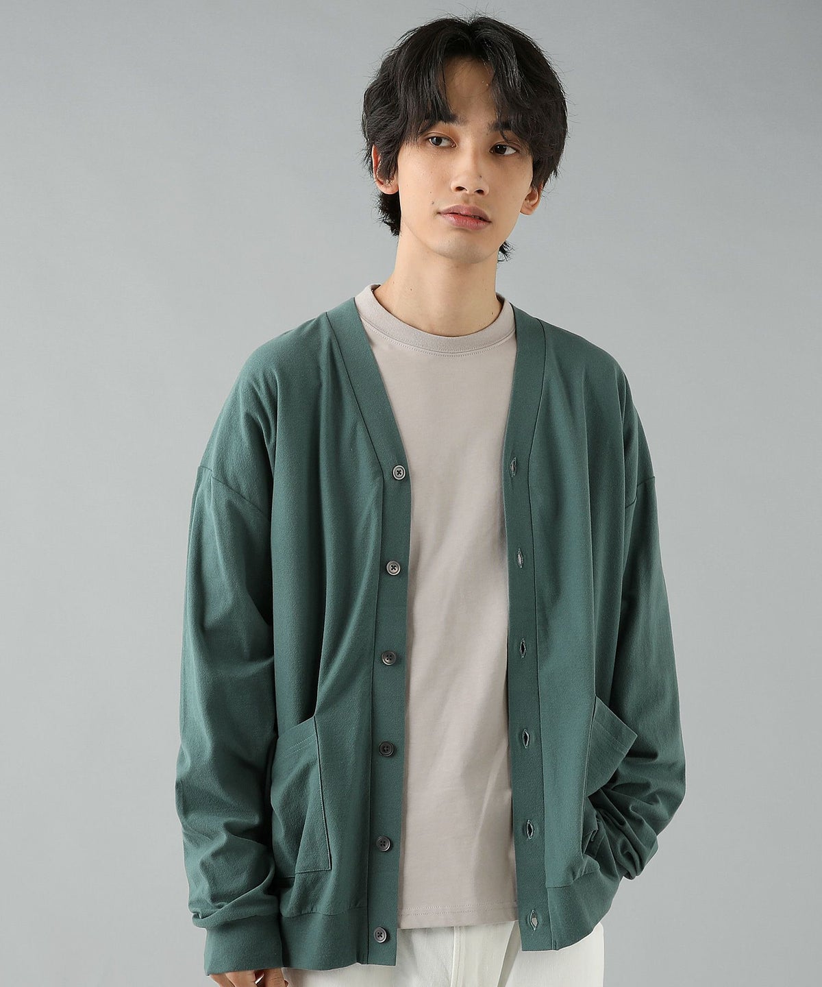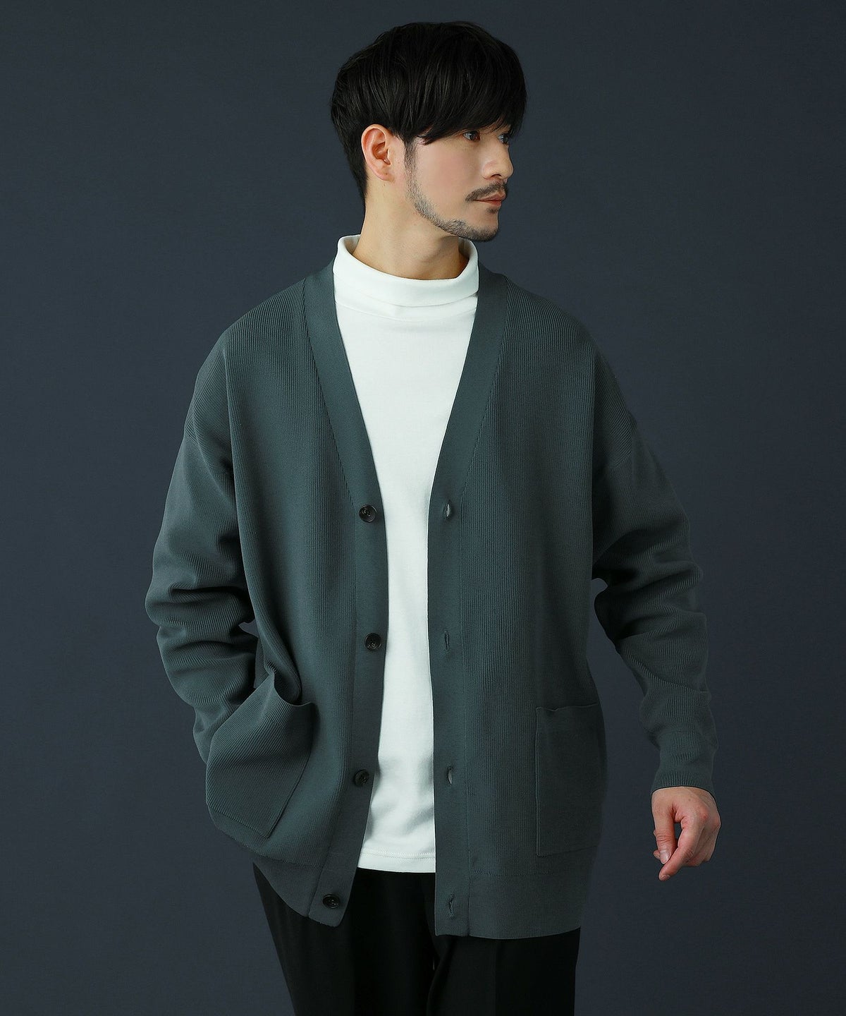 日本製フラッカーサボタンレスカーディガン
