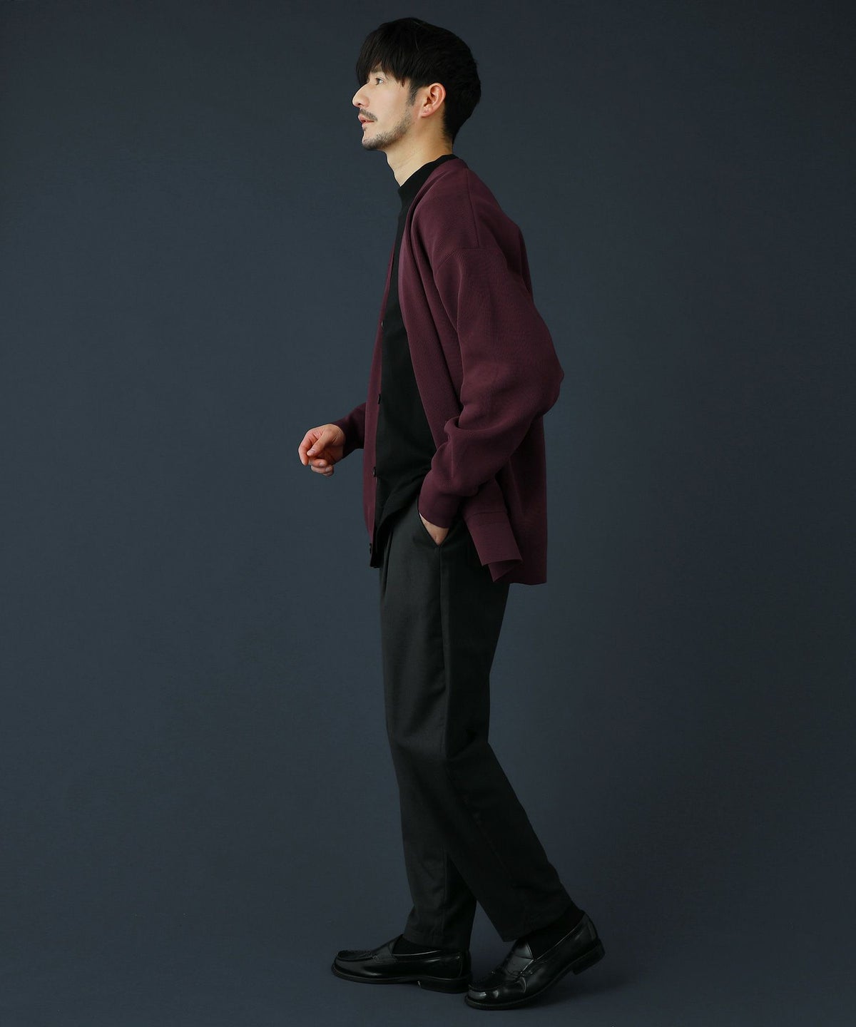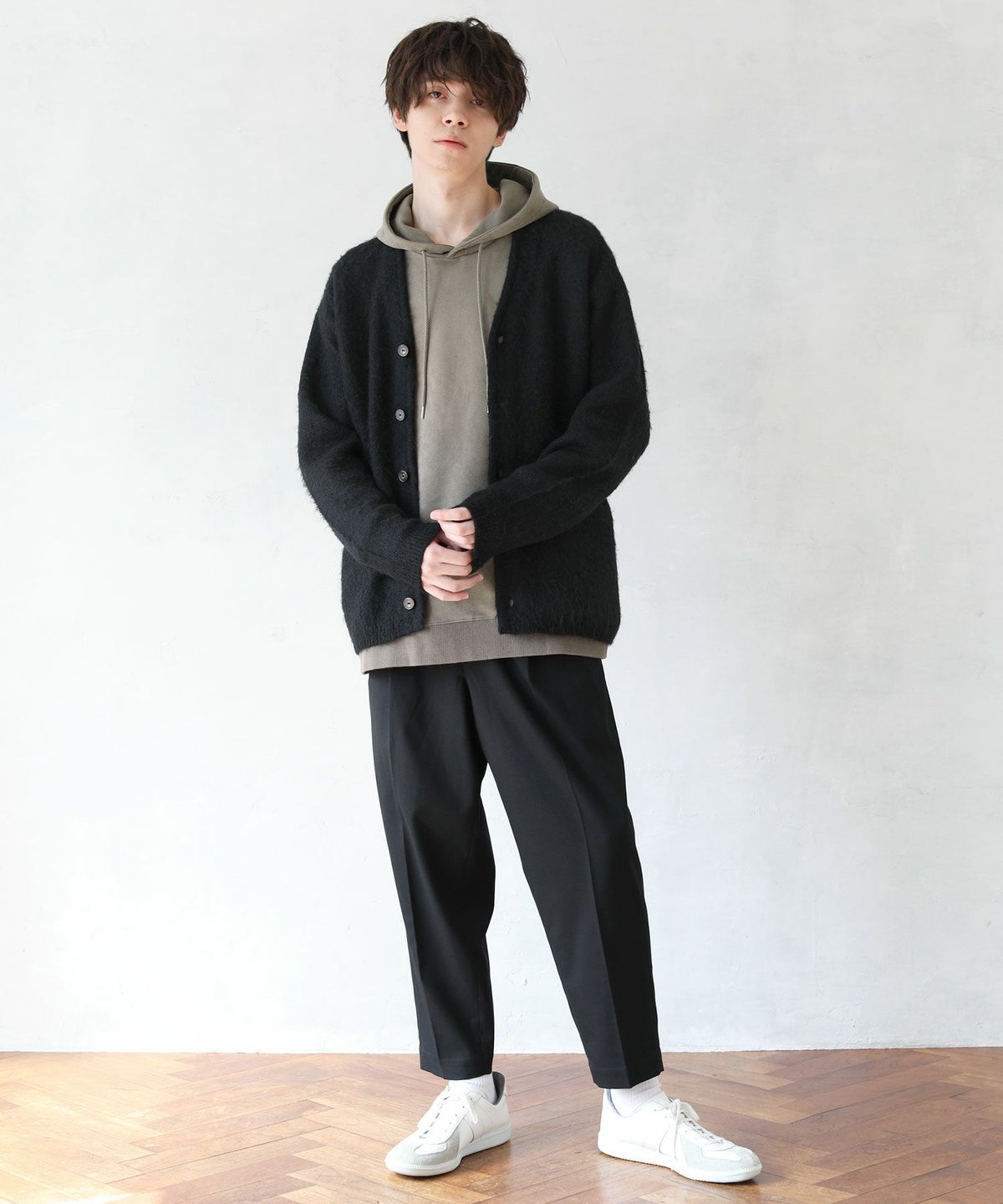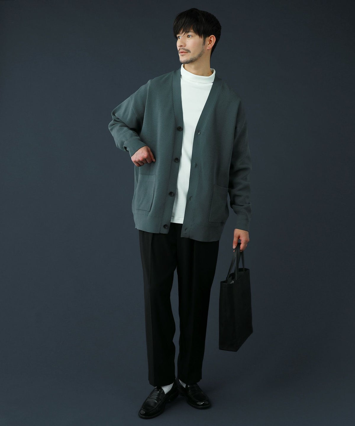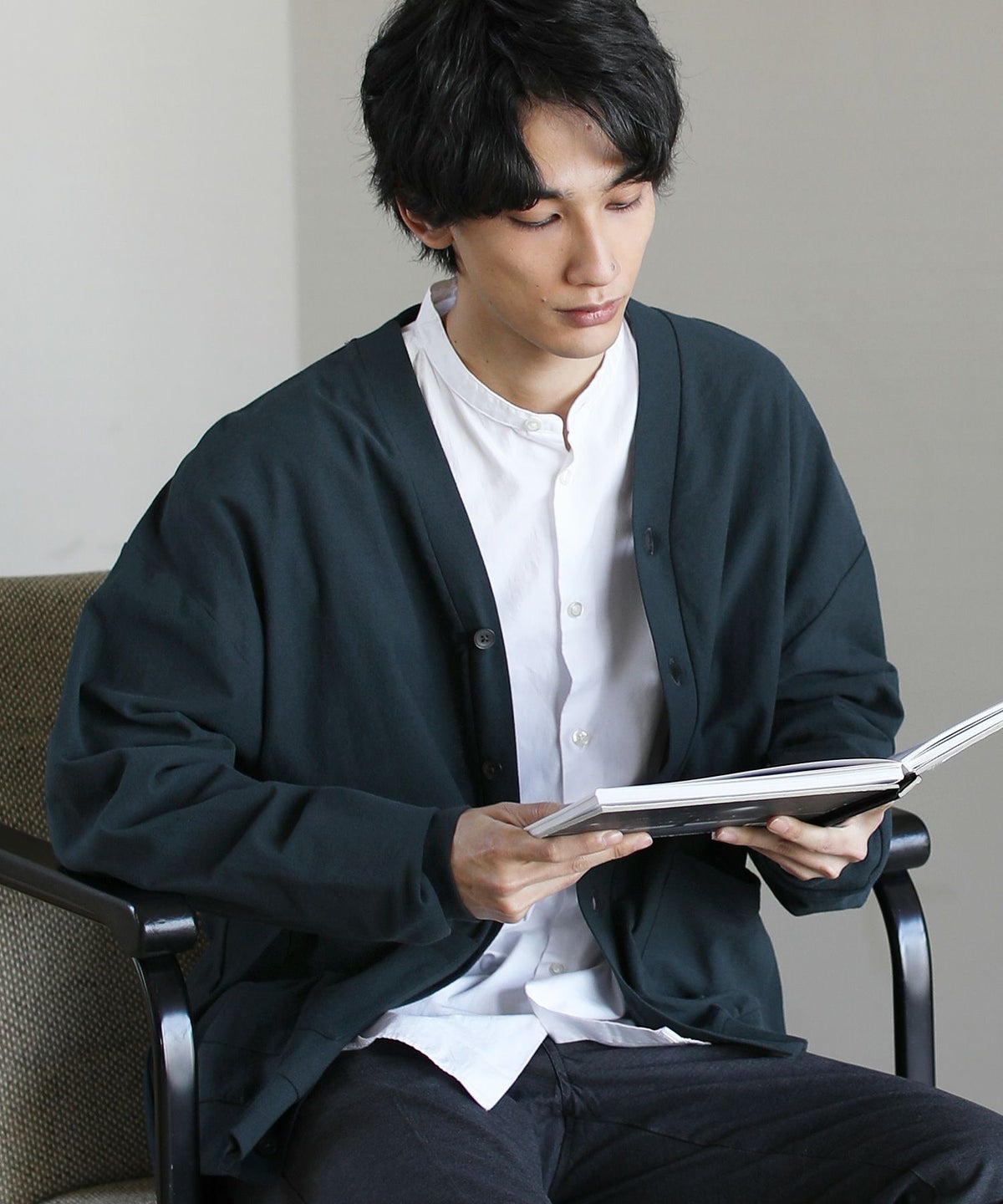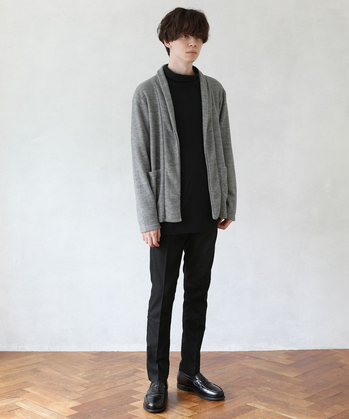 日本製フラッカーサボタンレスカーディガン