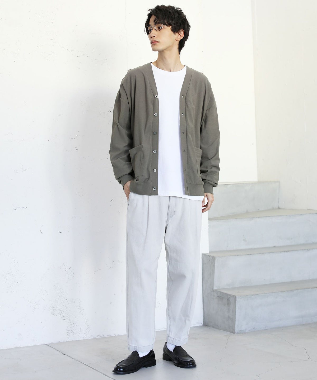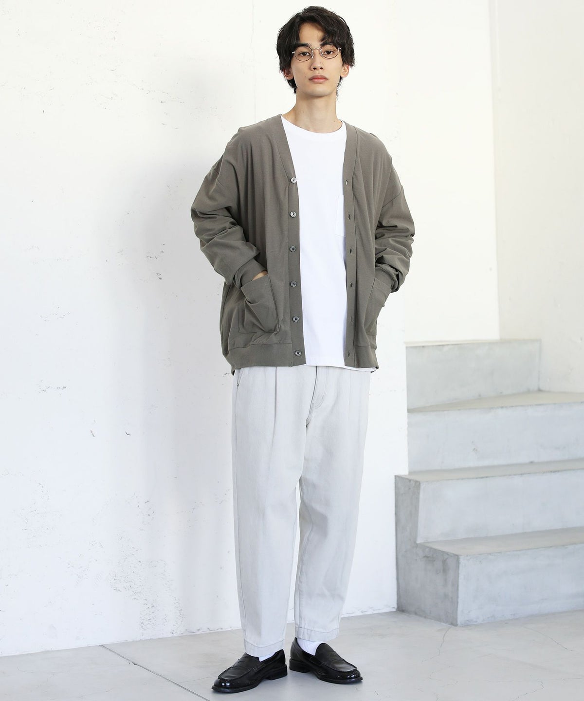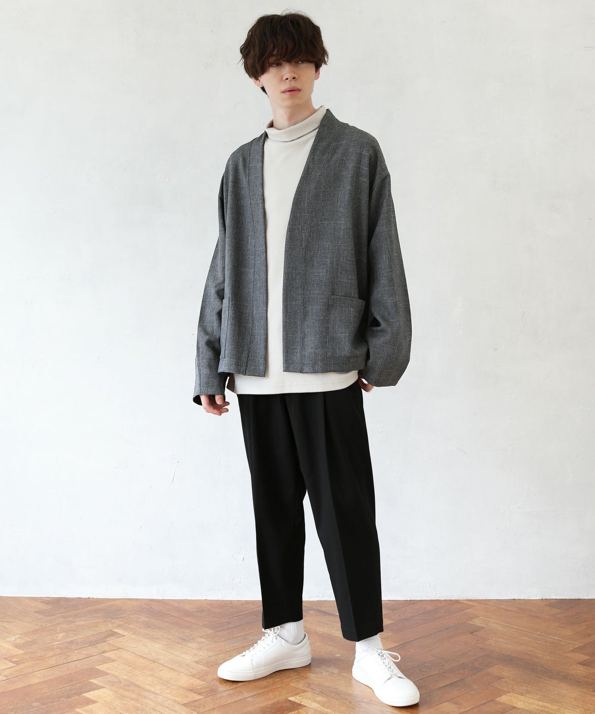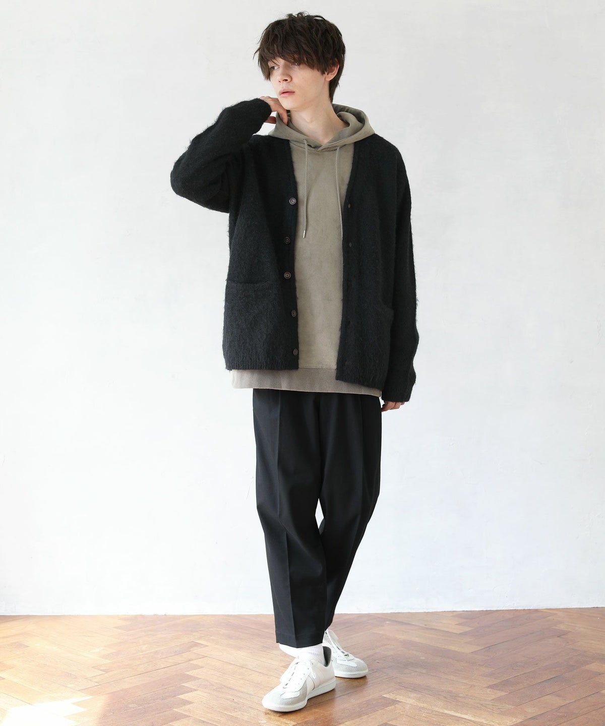 日本製フラッカーサボタンレスカーディガン
