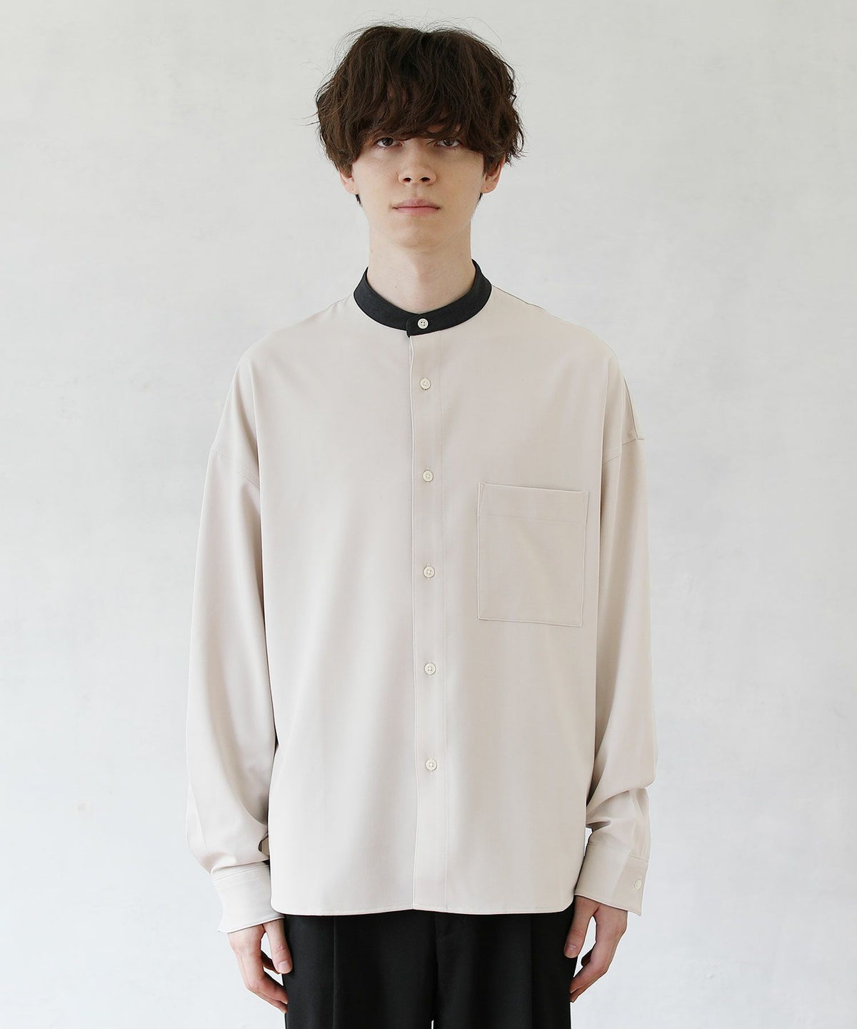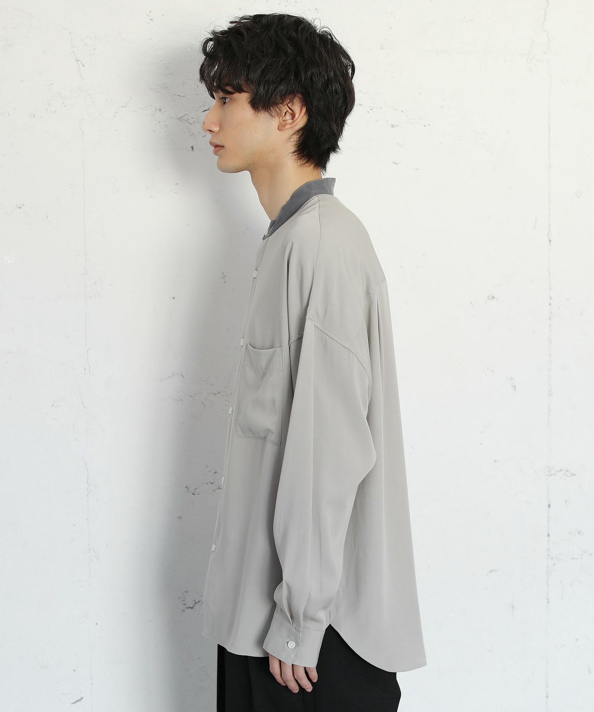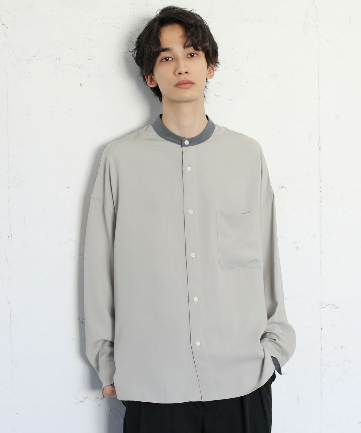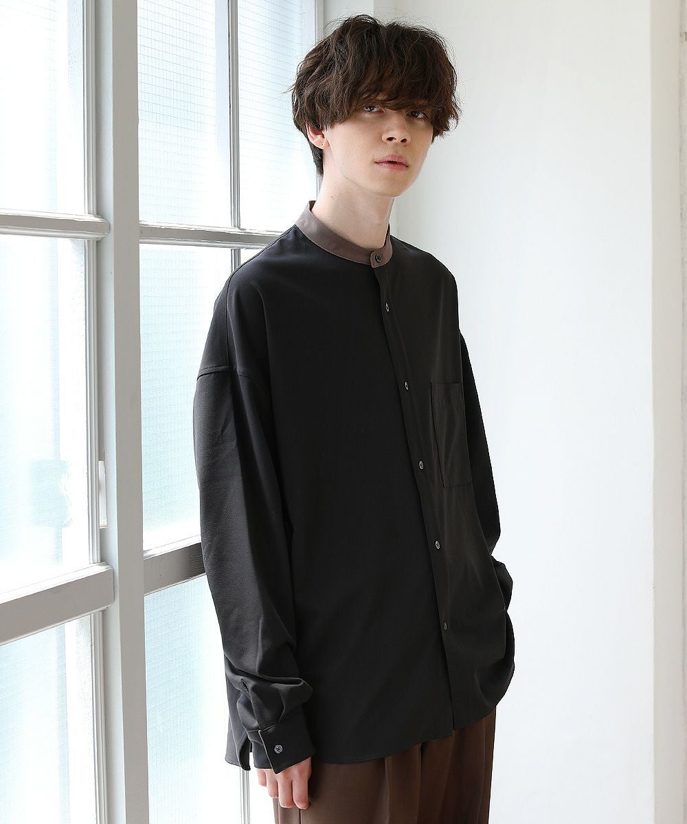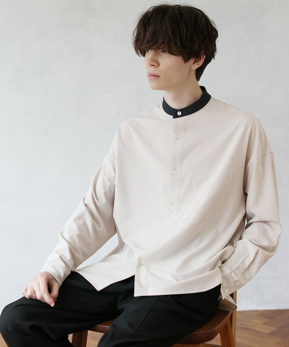 TRツイルクレリックバンドカラードロップショルダーシャツ
